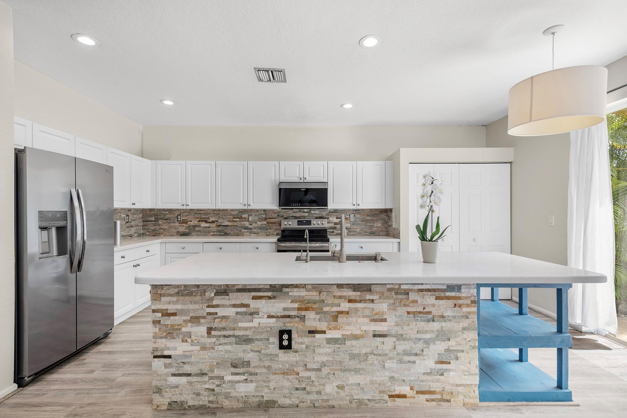 A TRUE HOME! | 5 BEDROOMS AND 2.5 BATHROOMS | THE RECENTLY REMODELED CONTEMPORARY FARMHOUSE STYLE INTERIOR FEELS BOTH WARM AND INVITING. KITCHEN FEATURES A EXTRA LARGE ISLAND, HUGE PANTRY, AND TONS OF NATURAL LIGHT. CLEAN AND SPACIOUS INTERIOR. TILE FLOORS IN GARAGE. LARGE WALK-IN CLOSET AND DUAL SINKS IN PRIMARY. BONUS FEATURE: BUILT-IN WORK STATION ON 2ND LEVEL! *ALL APPLIANCES INCLUDED WITH SALE.* NEIGHBORHOOD FEATURES: GATED COMMUNITY ENTRANCE, SWIMMING POOL, PLAYGROUND, FITNESS CENTER W/ SAUNA, WALKING TRAILS, BASKETBALL COURT, SOCCER FIELD, AND CLUBHOUSE. CONVENIENTLY LOCATED WITHIN WALKING DISTANCE TO THE ELEMENTARY SCHOOL, PUBLIX SUPERMARKET, BANK, SALON, AND MANY OTHER SHOPS.