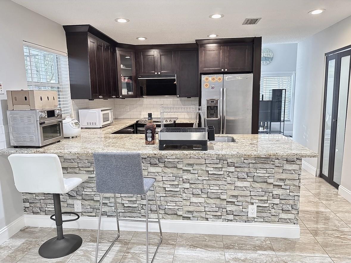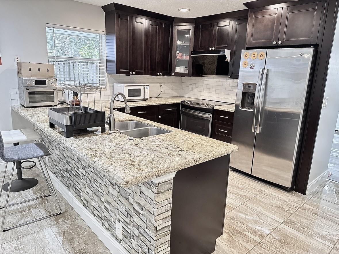 This lovely corner home has 3 beds/2.5 baths in a guard gated sought after community of Embassy Lakes in Cooper City. The kitchen features wood cabinet w. granite countertop, SS appliances & breakfast bar. Living room has a fireplace. Master suite has a walk-in closet, dual sink vanity, separate shower & soaking tub. Screened patio is perfect for relaxation or entertaining. Hurricane protection of accordion shutters & panels. HVAC in 2020, Roof in 2016, water heater & impact garage door in 2022. Embrace a life of comfort and convenience in this exceptional, amenity-rich community. Embassy Lakes amenities include gym, pool, kiddie pool, tennis/volleyball/basketball courts, playgrounds, fishing lakes & more. Centrally located to "A" rated schools, shops, restaurants, sport complex, park etc.