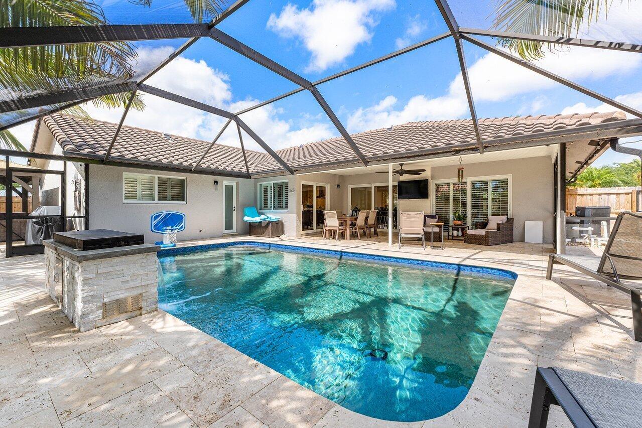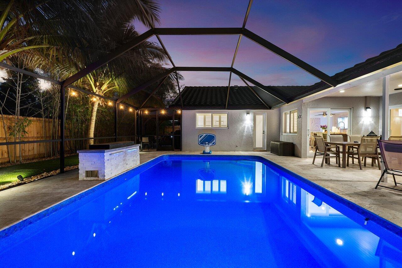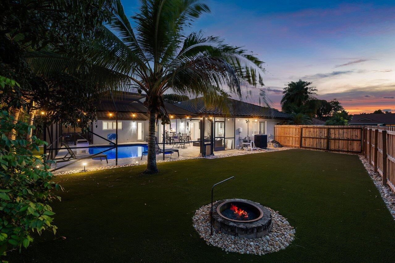 Welcome to 21786 Banyanwood Rd, a beautifully upgraded one-story home in the highly sought-after community of The Pines at Boca Del Mar. Offering 4 bedrooms, 2.5 baths, and 1,989 square feet of thoughtfully designed living space, this home blends comfort, style, and functionality. Step into your private backyard oasis, perfect for entertaining or unwinding. Enjoy the screened-in saltwater pool, a separate hot tub, a cozy fire pit area, and an expansive, yard with seamless turf all enclosed by a brand-new privacy fence for total seclusion. Inside, you'll find numerous upgrades, including hurricane-impact windows, new kitchen appliances, and a newly renovated primary bathroom featuring a double vanity. The split floor plan offers ideal privacy for families and guests.