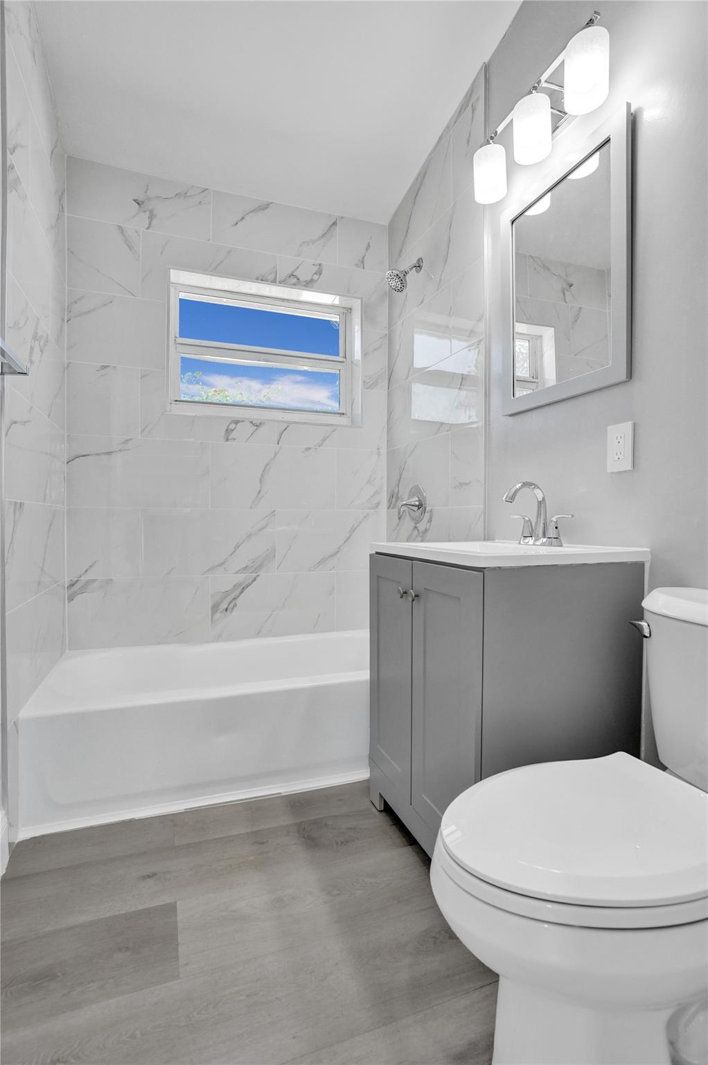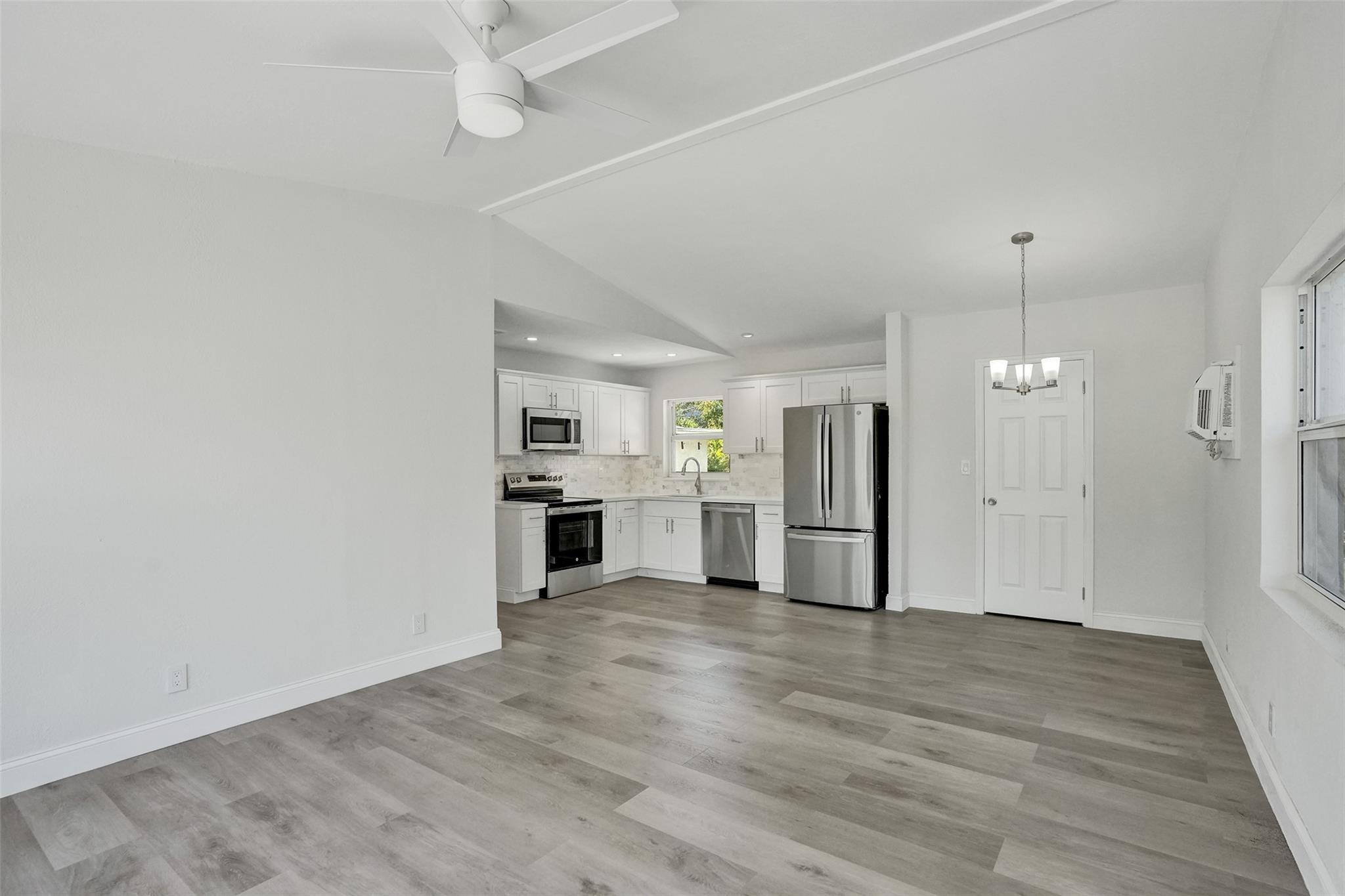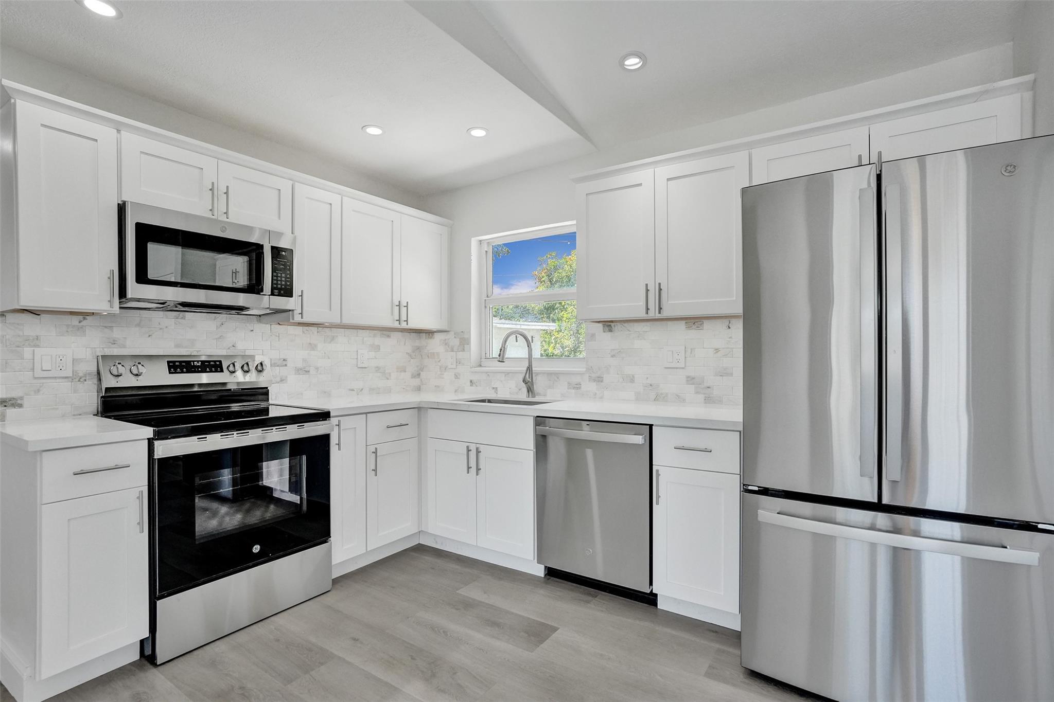 Price Improvement! Completely Remodeled w/ Modern Upgrades. Beautifully renovated home featuring bright & open layout w/ large combined kitchen, dining & living area—perfect for entertaining or relaxing w/ family. Brand new roof (March 2025) with transferable warranty for peace of mind. Impact windows & solid doors for added security and energy efficiency. Stunning new kitchen complete with quartz countertops, under-cabinet lighting, garbage disposal, brand-new SS appliances, custom cabinetry & stylish tile finishes. Luxury Vinyl Plank flooring throughout home for a modern & durable touch & new ceiling fans w/ remotes. Spacious backyard is a tropical retreat w/ mature mango tree, ideal for outdoor gatherings. Additional upgrades include new hot water heater & outdoor tiles. Move in ready!