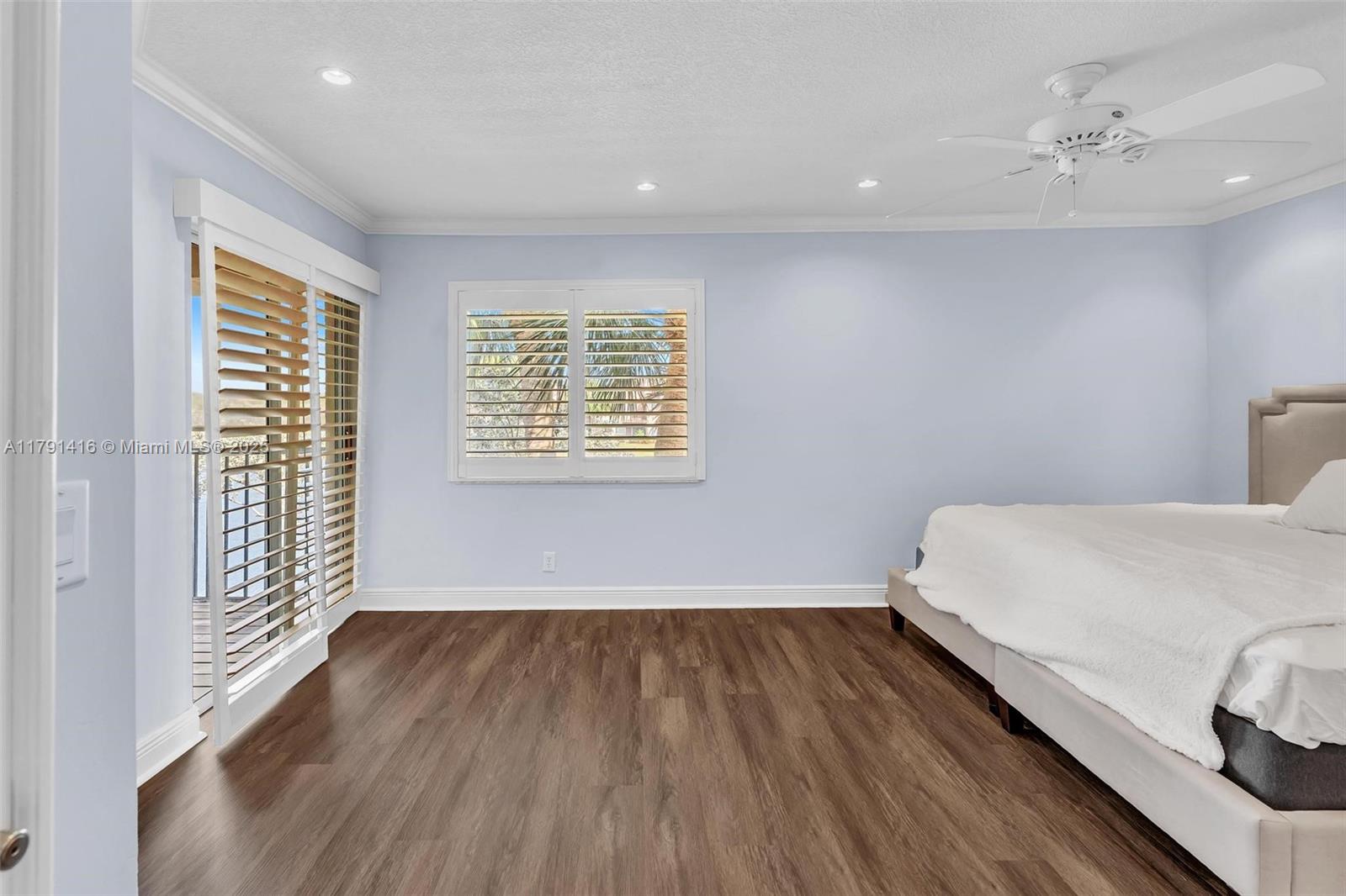 Welcome to this massive 2 story 3 bed +den (4th bedroom/office/den) 2.5 bath totally renovated incl NEW 2025 roof being done now and NEW 2025 exterior white paint. This home looks and feels like a single family home with the master bedroom down! Almost everything new new new in this house incl: new hardwood floors throughout, quartz countertops, new paint throughout, custom blinds, and more! Super sleek clean feel with the 2 master suites and both master baths up and down offering dual vanity sinks, tub and standup shower down; 2 outdoor spaces incl screened in porch down, patio up on the quiet water! Low hoa incl almost everything: exterior insurance, roof, lawn, alarm, water, cable and pool/spa, gym; Attached 2 car extra large new garage interior w/ new tile+paint!