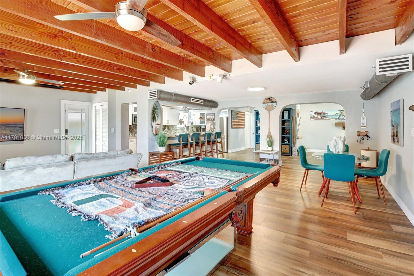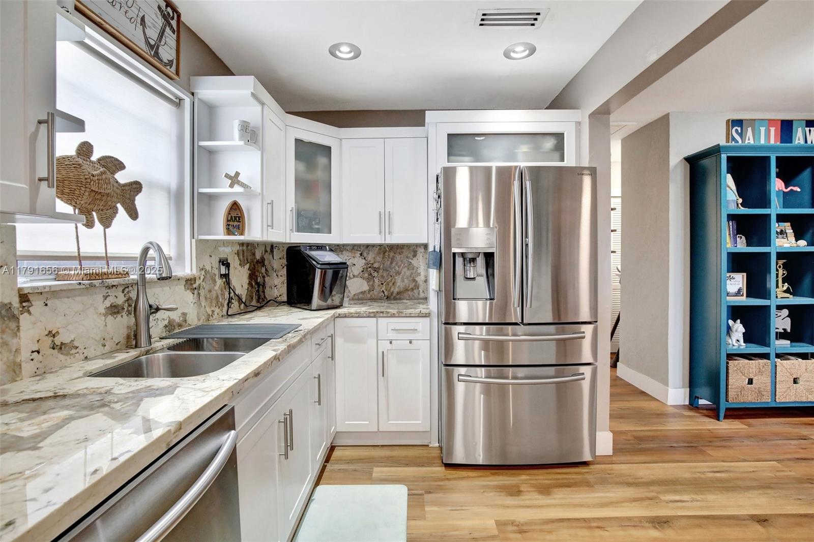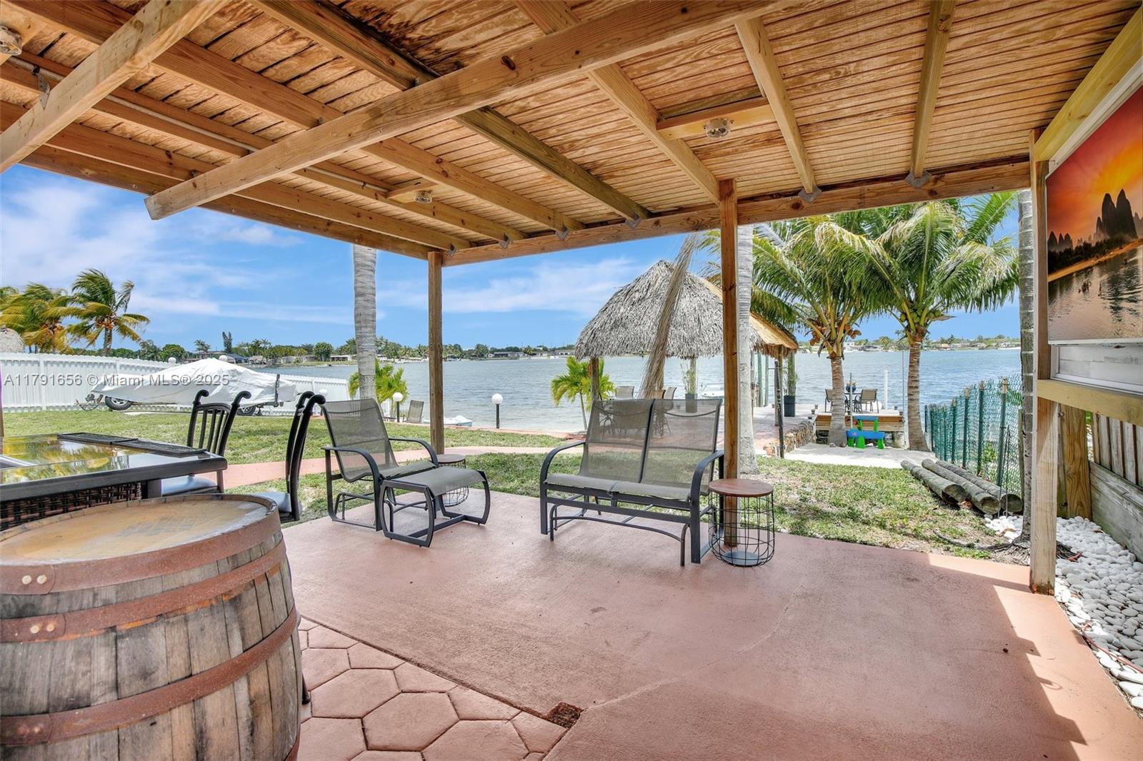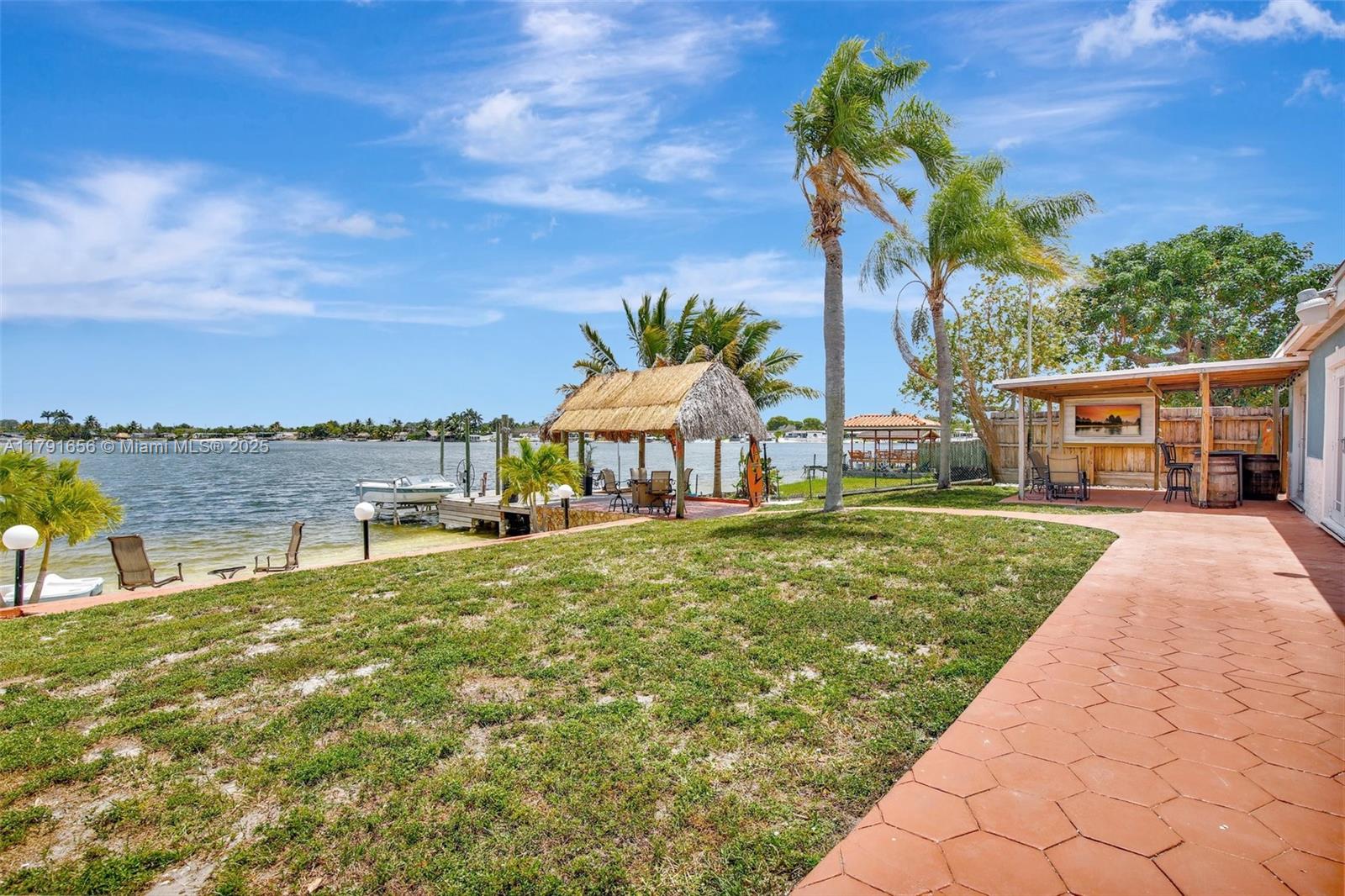 Breath taking lake front views! Beautiful 3 bedroom, 2 bathroom home with potential for additional rooms/space. 2,600 sqft of living space and one of the biggest lots at 10,125 sqft. This home is well maintained. Kitchen and vinyl floors remodeled 2020, Metal roof 2020, master bath tiles, light fixtures, and vanity 2025. AC 2014. Amazing dock with tiki hut, sandy beach area, and fire pit area. Has a private boat ramp, jetski floating dock, and boat lift. Enjoy jet skiing or boating on all three lakes. This neighborhood is a gem hosting motorized lakes which are rare in Miami-Dade County. Amazing schools and parks nearby. Close to I-75 and FL Turnpike. Make this home yours to have fun filled weekends on the water and build long-lasting memories.