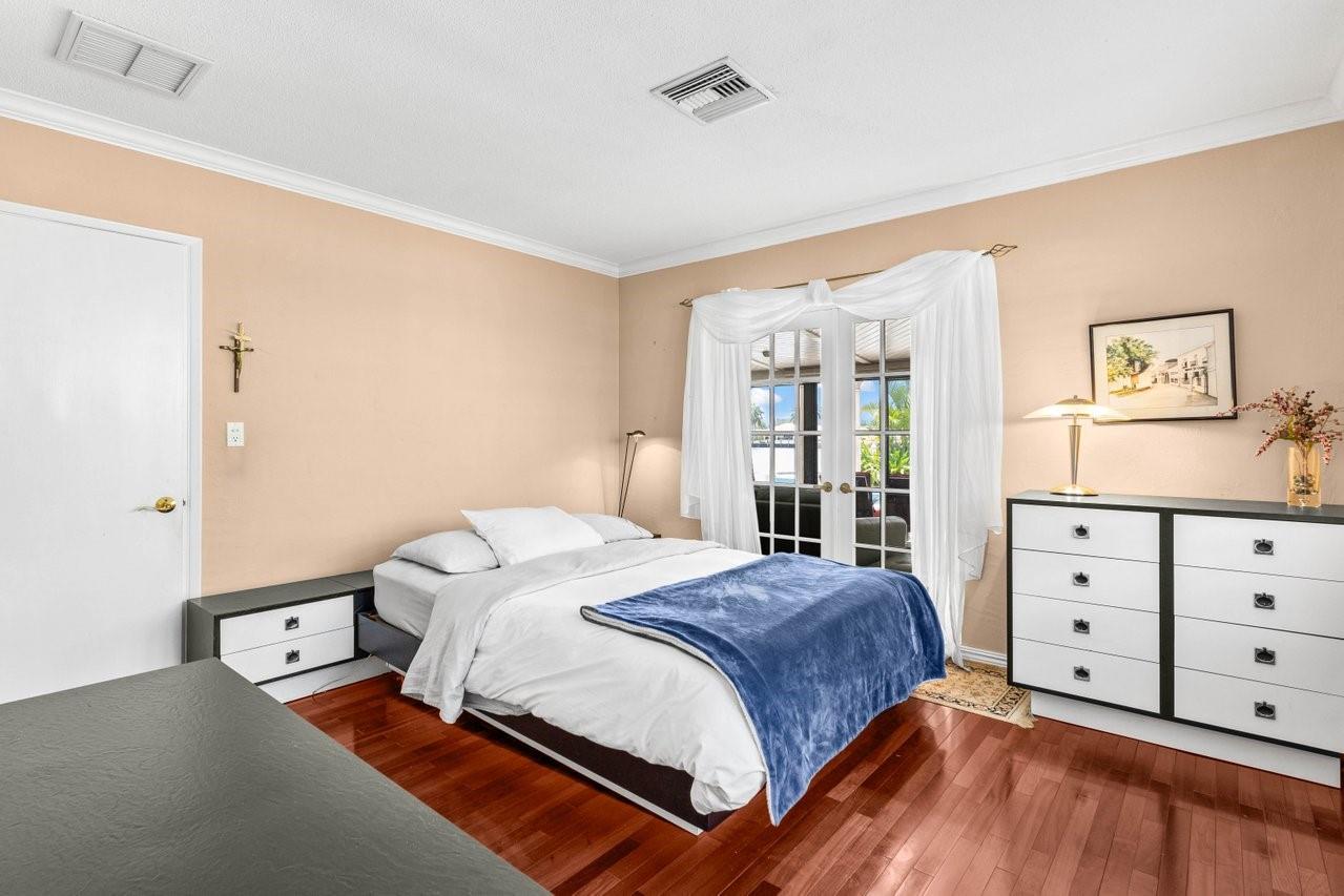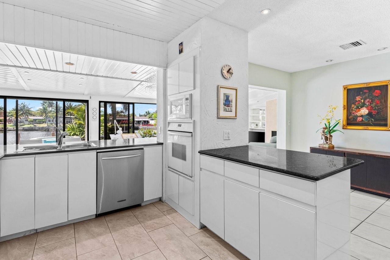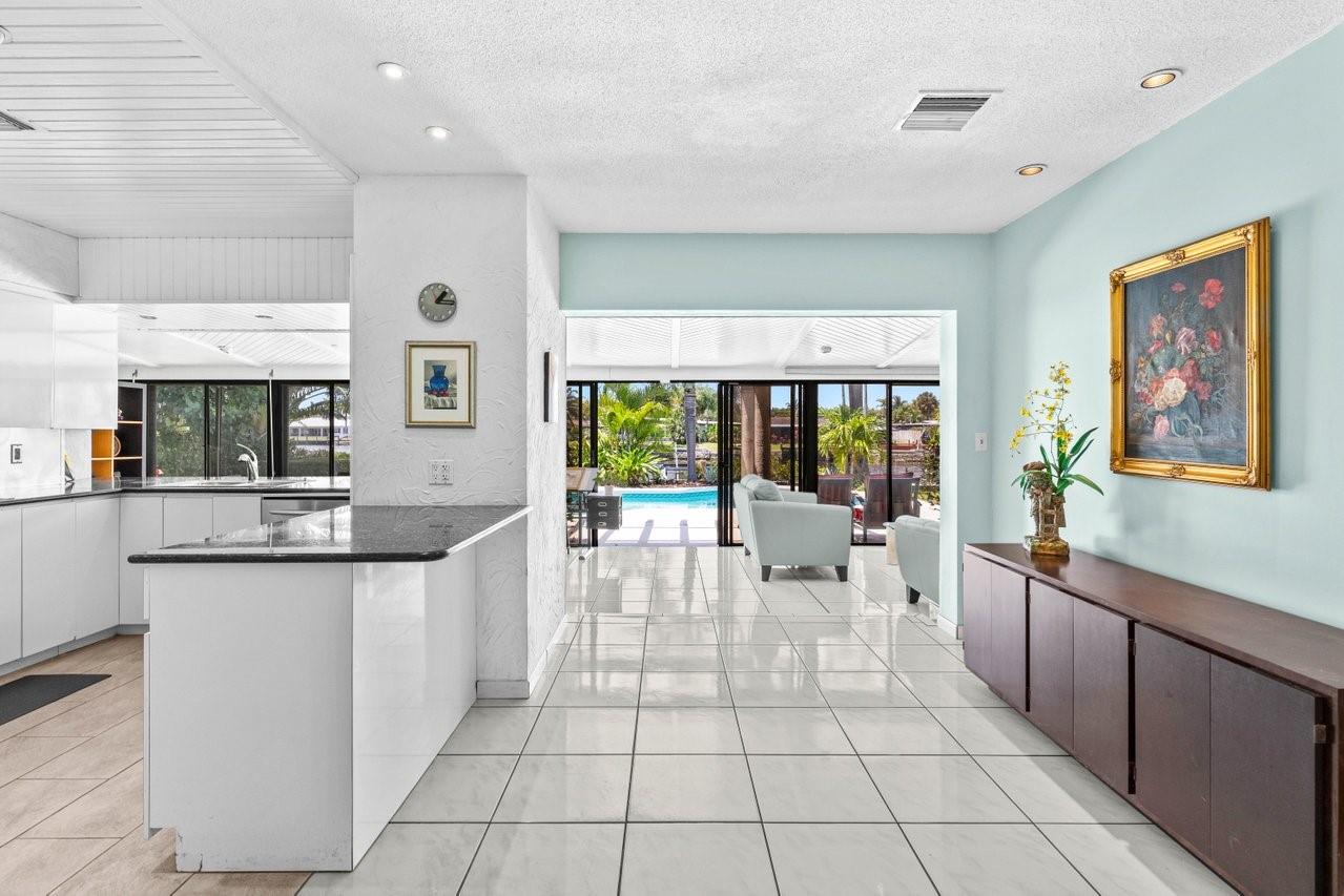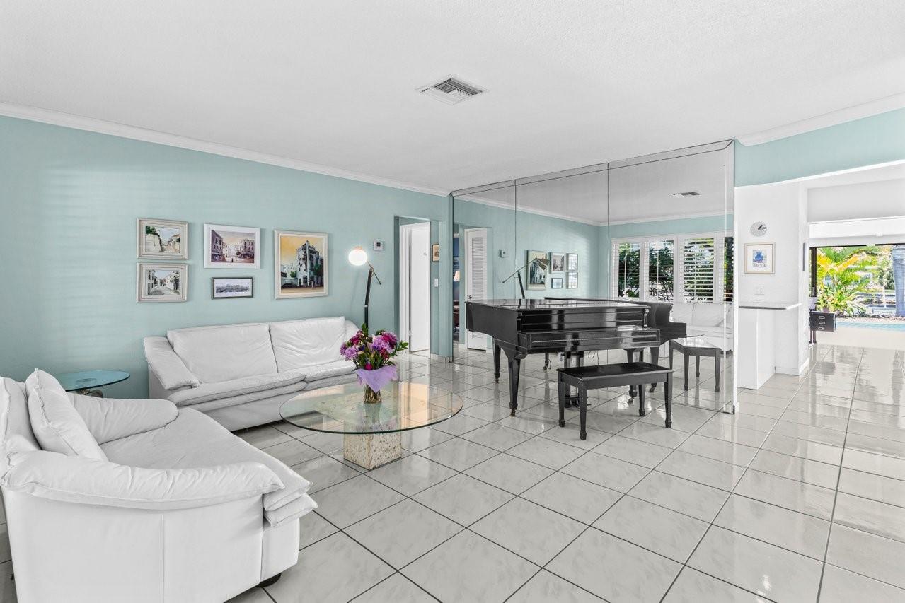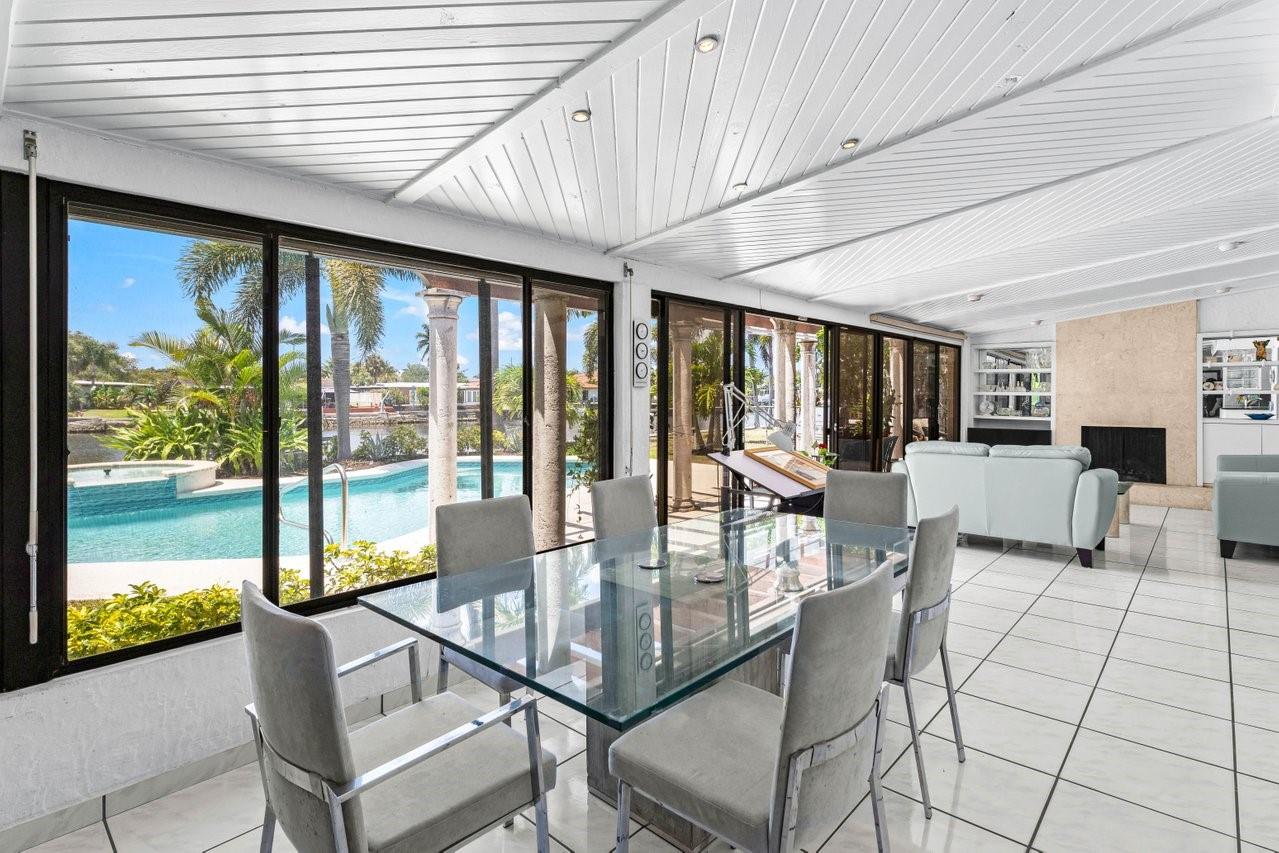 Prime waterfront location in Pompano Beach with beautiful views on a large body of water. Enjoy wide waterway views from the open eat-in kitchen, spacious family room, and charming dining room. This three bedroom home has Brazilian Cherry Wood flooring in the bedrooms and tile throughout the living areas. There is a dock with boatlift on approximately 70 ft of water frontage. Property has plenty of parking with a 2 car garage and circular driveway. The only fixed bridge is the high Federal Highway bridge. Waterway is approximately 220' in width.