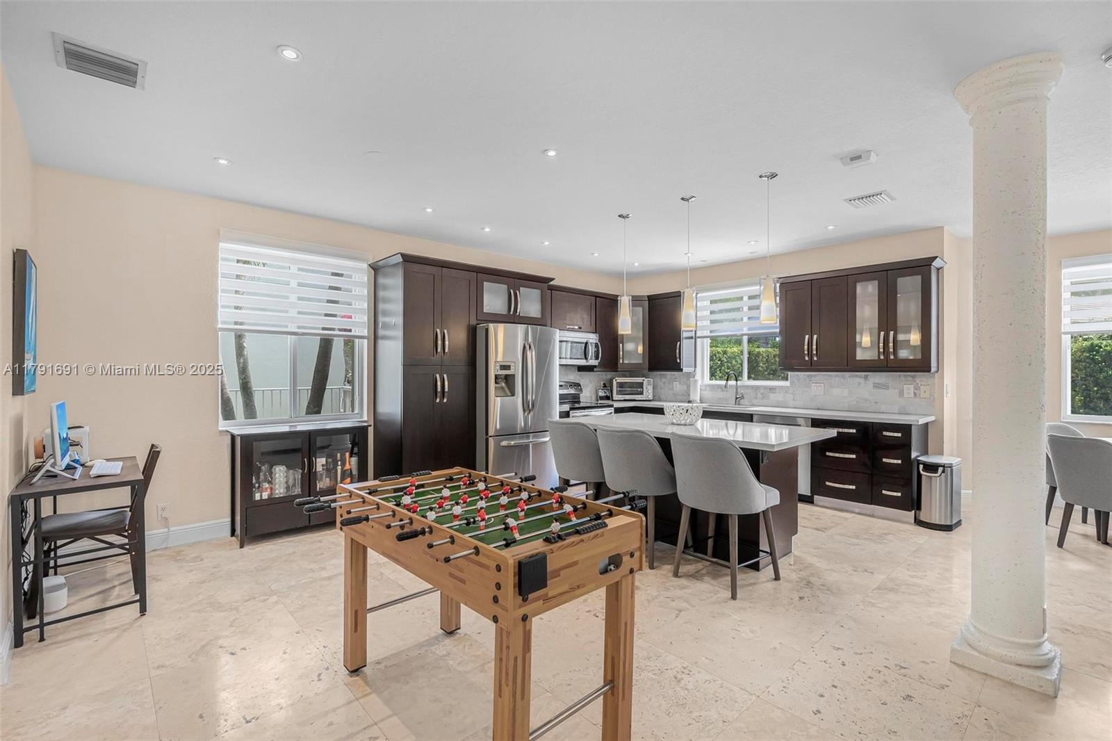 Exquisite 4BR/4BA pool home nestled on a private cul-de-sac in Weston’s prestigious guard-gated Savanna community. This residence boasts an open-concept layout adorned with travertine flooring on the main level & wood flooring on the staircase. The gourmet kitchen features quartz countertops, custom wood cabinetry & top-tier stainless steel appliances. Retreat to the remodeled primary bathroom for a spa-like experience. Freshly painted interiors & exteriors exude natural elegance. Enjoy the private fenced backyard with a sparkling pool and covered terrace—perfect for entertaining. Equipped with Accordion hurricane shutters for added security. Savanna offers resort-style amenities: clubhouse, multiple pools, waterslide, mini golf, sports courts, playground, + more. Located near A+ schools.