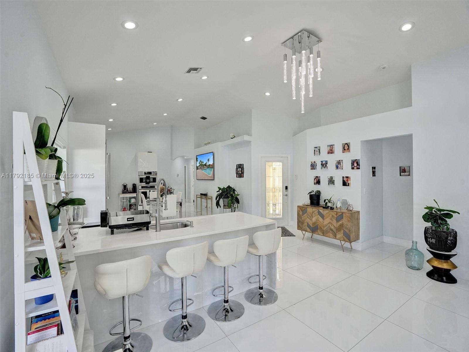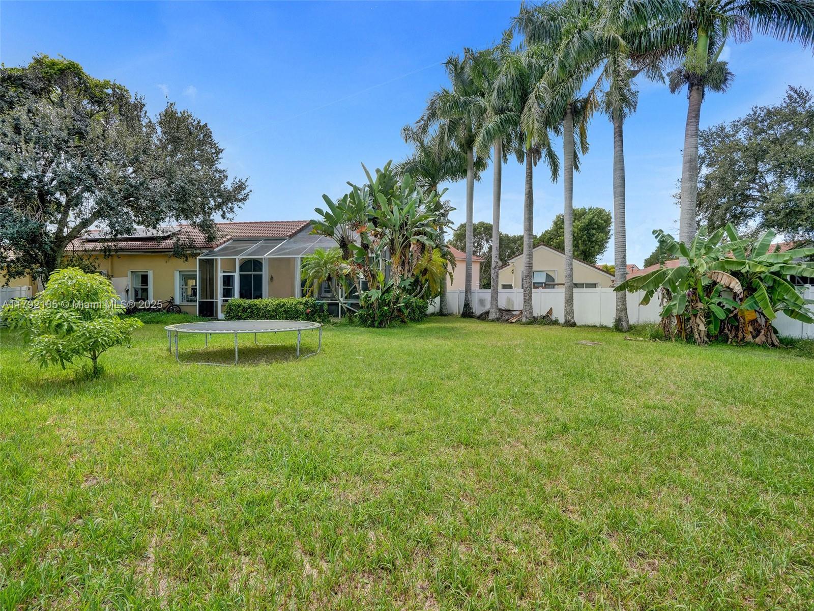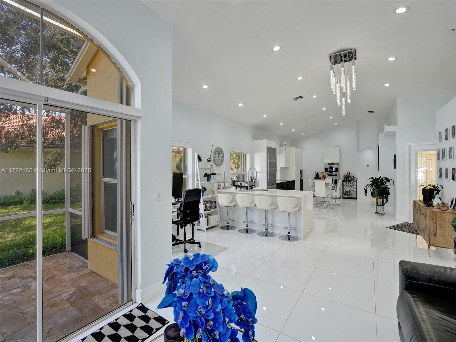 Modern home in the beautiful community of Kensington Green. Set on the 2nd largest lot in the community, boasting 10,541 sqft! Featuring 3 bed, 2 bath, and 1,627 sqft of living space. Highlights include a new roof with solar panels, porcelain floors, & a spacious open-concept layout. The updated kitchen features quartz countertops and a stunning cooking island. Enjoy a screened patio, fenced backyard with room for a pool, mango and plantain trees, and exterior lighting. The garage has been converted into an AC'd entertainment space and can easily be reverted. Ideally located minutes from major stores, gas stations, Sawgrass Expressway, and the Turnpike, and situated in one of Coral Springs' top-rated school zones. Priced to sell—this home is a must-see!