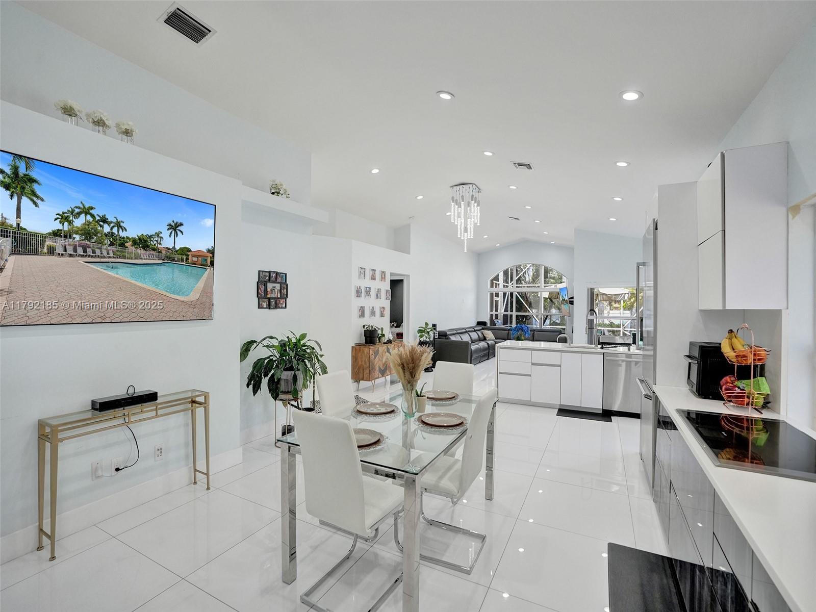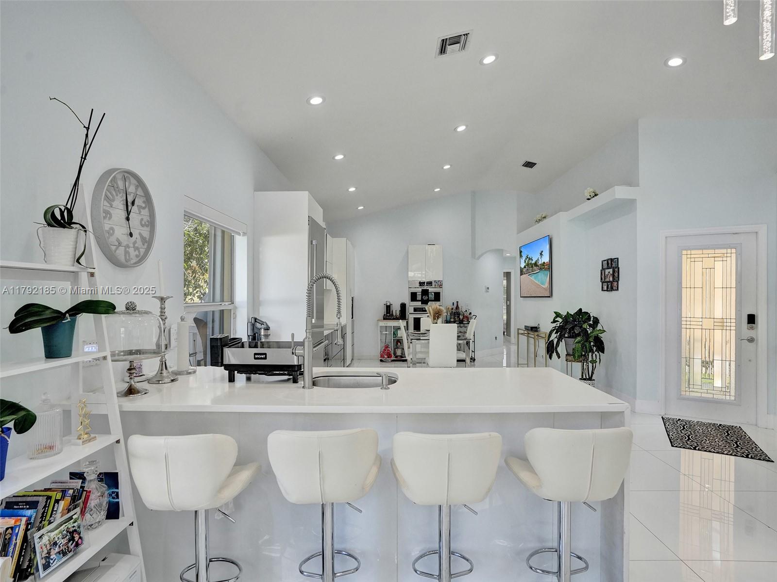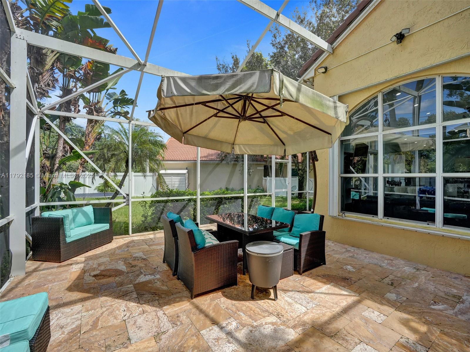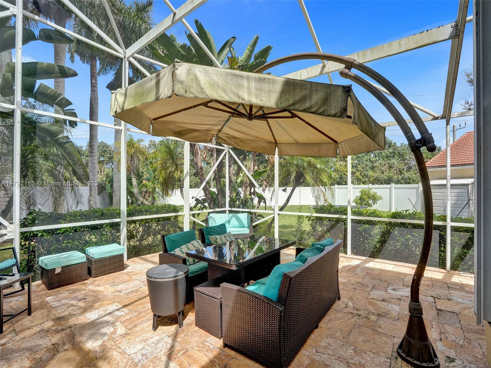 Modern home in the beautiful community of Kensington Green. Set on the 2nd largest lot in the community, boasting 10,541 sqft! Featuring 3 bed, 2 bath, and 1,627 sqft of living space. Highlights include a new roof with solar panels, porcelain floors, & a spacious open-concept layout. The updated kitchen features quartz countertops and a stunning cooking island. Enjoy a screened patio, fenced backyard with room for a pool, mango and plantain trees, and exterior lighting. The garage has been converted into an AC'd entertainment space and can easily be reverted. Ideally located minutes from major stores, gas stations, Sawgrass Expressway, and the Turnpike, and situated in one of Coral Springs' top-rated school zones. Priced to sell—this home is a must-see!