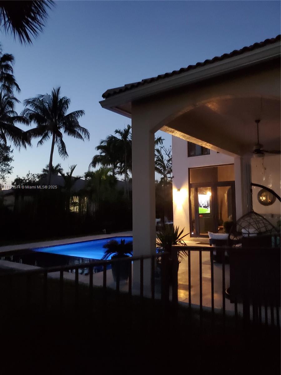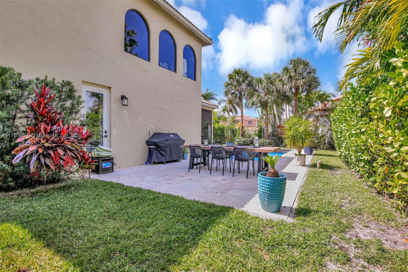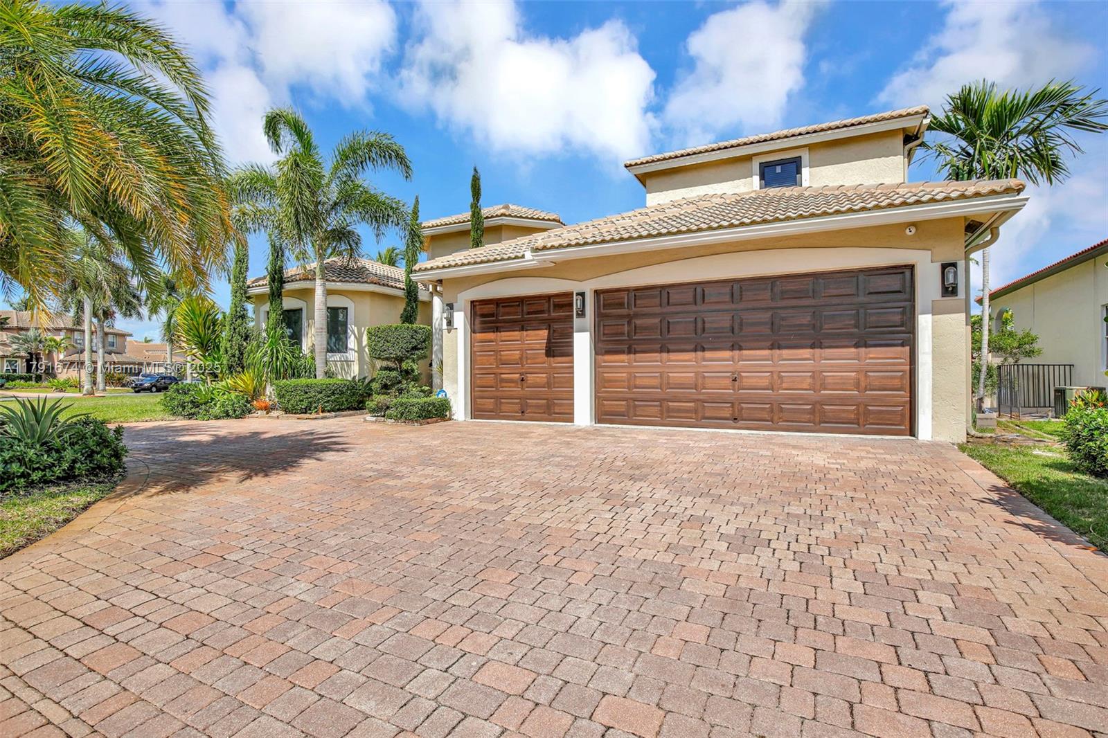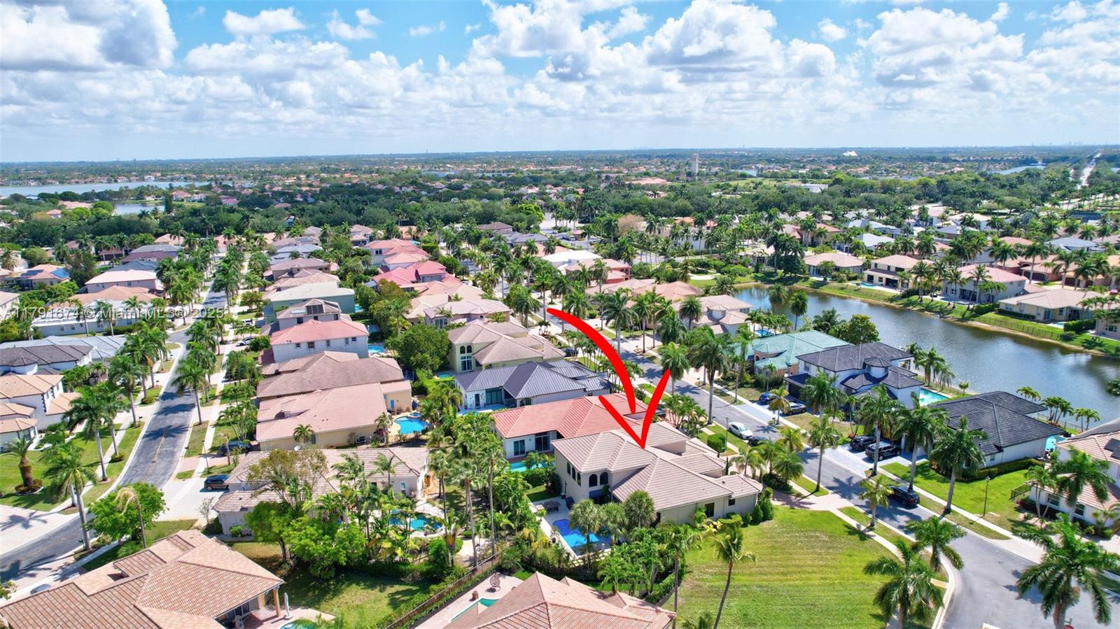 Experience refined living in the exclusive Sunset Lake community. 5/5+loft blends timeless sophistication with a modern edge, featuring dramatic volume ceilings, elegant arched windows, and a seamless indoor-outdoor flow. Enjoy serene afternoons on the expansive covered terrace with motorized screens, overlooking a private resort-style pool framed by lush tropical zen garden. Inside, an open-concept design welcomes abundant natural light through impact glass doors. The chef's kitchen impresses with quartz countertops, wood cabinets, double wall ovens, a wine cooler, barista station with floating shelves, and a peninsula perfect for casual gatherings in the sun-drenched breakfast nook and expansive family room. Primary wing includes sitting area, walk-in closes, and big bathroom. Low HOA.