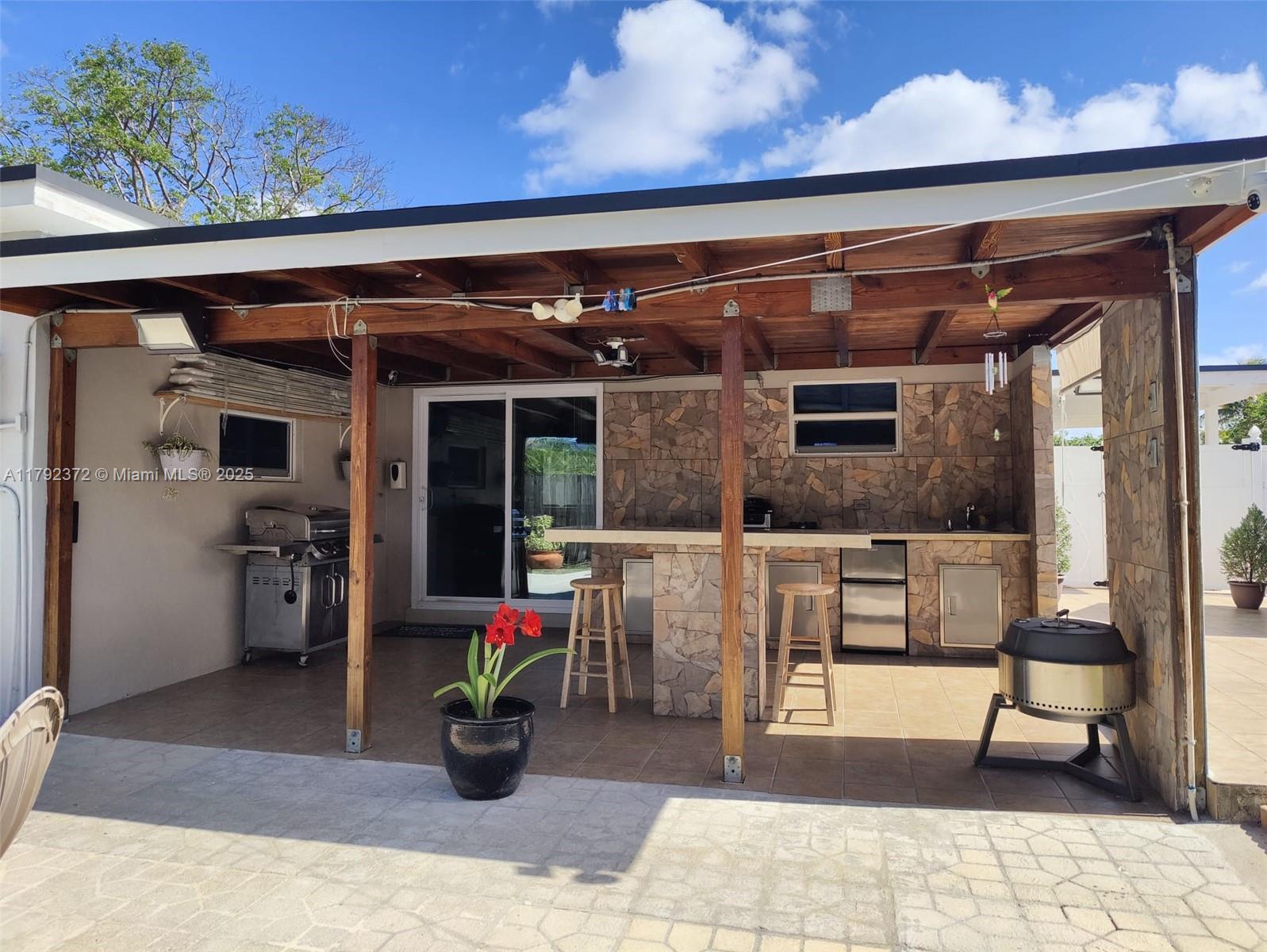 Welcome to your next home in the heart of Davie! This immaculate 4-bed, 2-bath single-family gem blends comfort, style, and functionality Step into a remodeled kitchen with rich wood cabinetry, granite countertops, and stainless steel appliances. Updated bathrooms and a spacious master suite with a private entrance offer modern touches. Dedicated laundry area with stainless-steel washer/dryer. Features include partial impact windows and a sliding door, a brand-new roof (Nov 2024), a newer A/C, and a fully fenced backyard. Ceramic tile floors flow throughout the bright, airy space. The 4th bedroom can easily serve as a home office. Enjoy a private backyard oasis with a covered patio, gazebo, and outdoor kitchen — perfect for entertaining or relaxing Move-in ready — accepting backup offers!