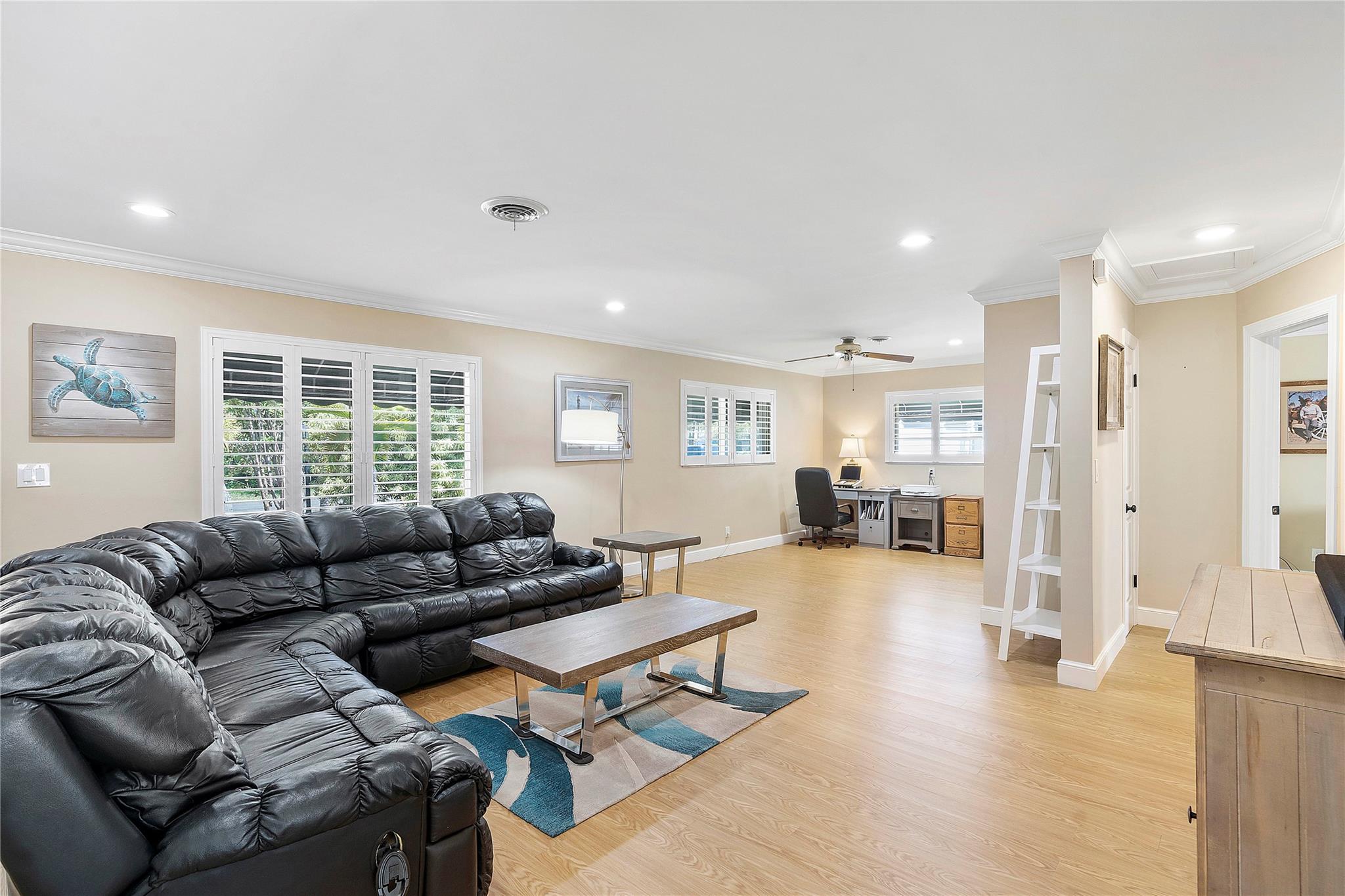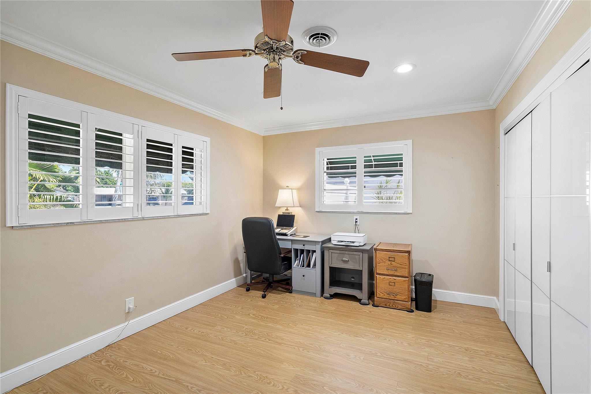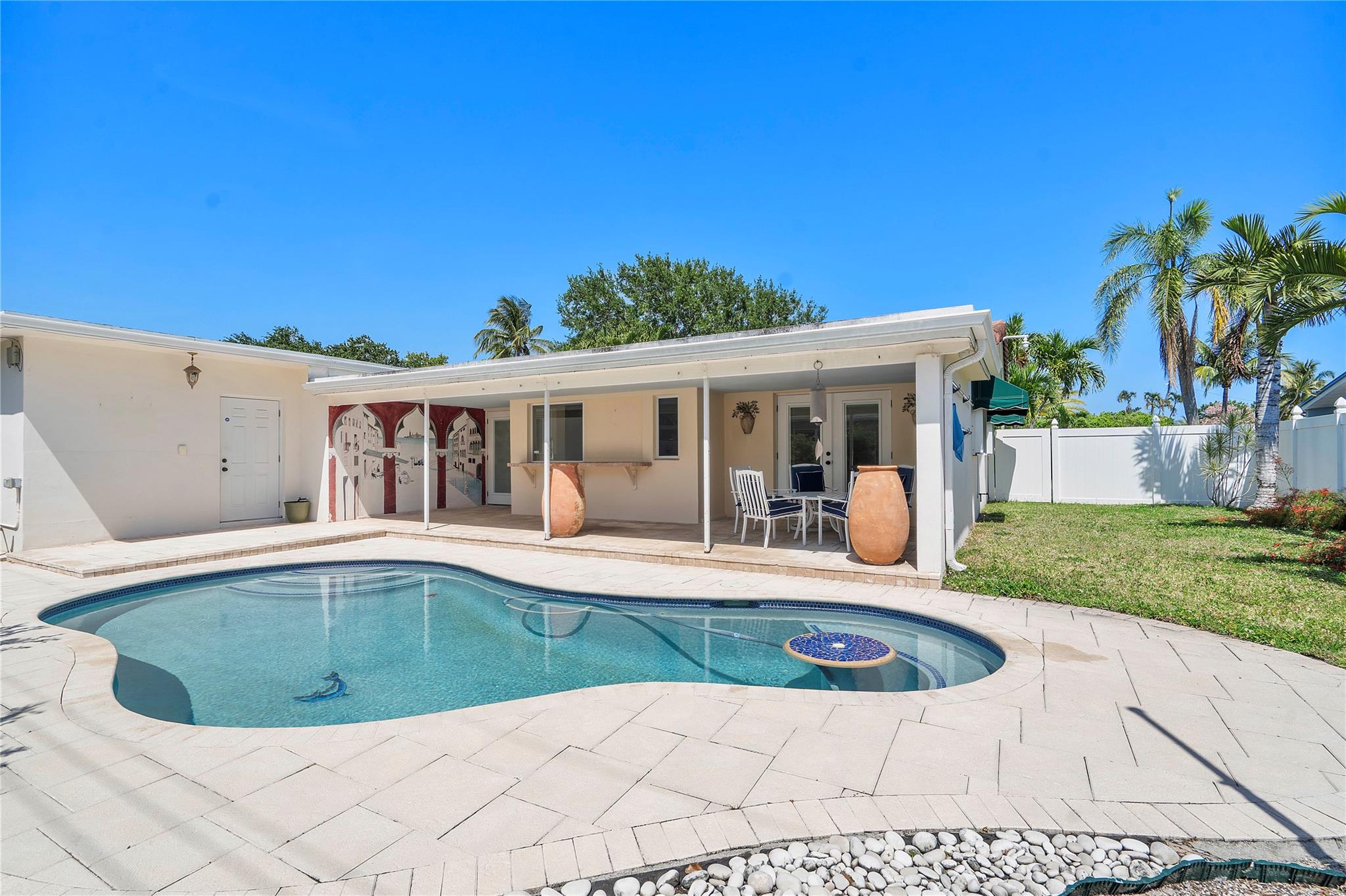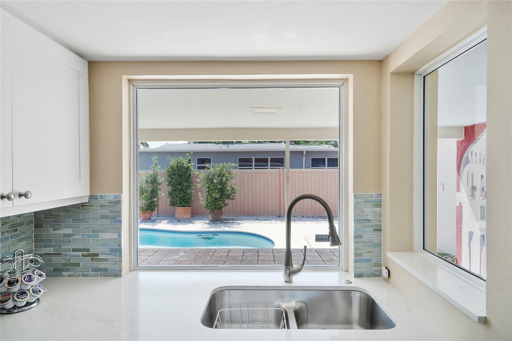**PRISTINE** renovated one-story single family **NO HOA** pool home with large fully fenced-in yard in sought-after Pompano Beach neighborhood, with attached workshop/man-cave/expanded master closet -- MUST SEE!! This GREAT home features modern upgrades including a white shaker wood kitchen, quartz counter tops, glass backsplash, stainless steel appliances, extended dining room cabinetry/serving area, impact windows & doors plus accordion shutters throughout, wood flooring throughout, upgraded bathrooms, upgraded closet doors with custom closet shelving, plantation shutters throughout, tank-less hot water heater, and **WONDERFUL** salt-water pool & backyard OASIS!! NO restrictions, all ages, & 3 miles to the beach! Make this your new home-sweet-home, investment property, or Airbnb!