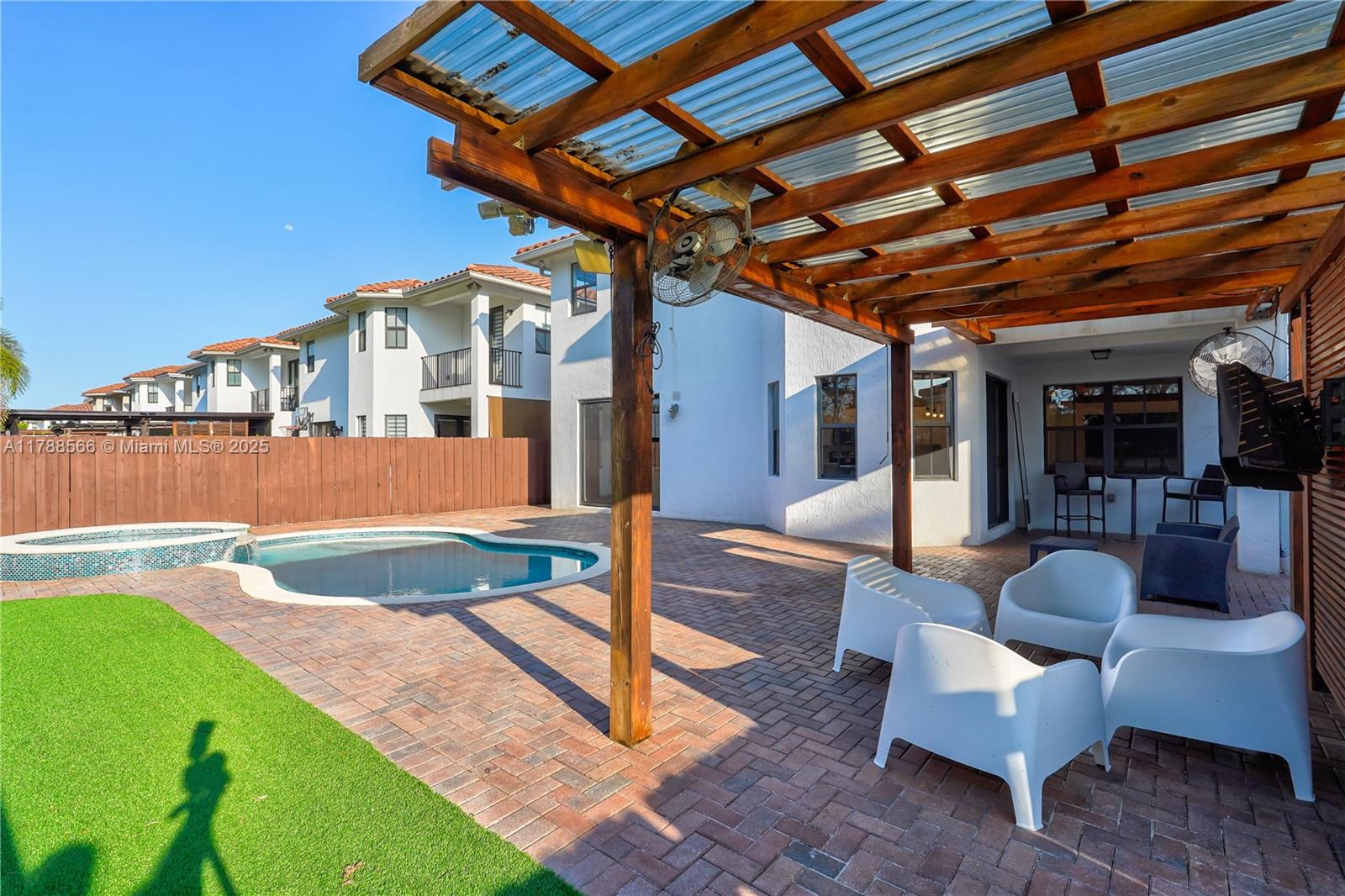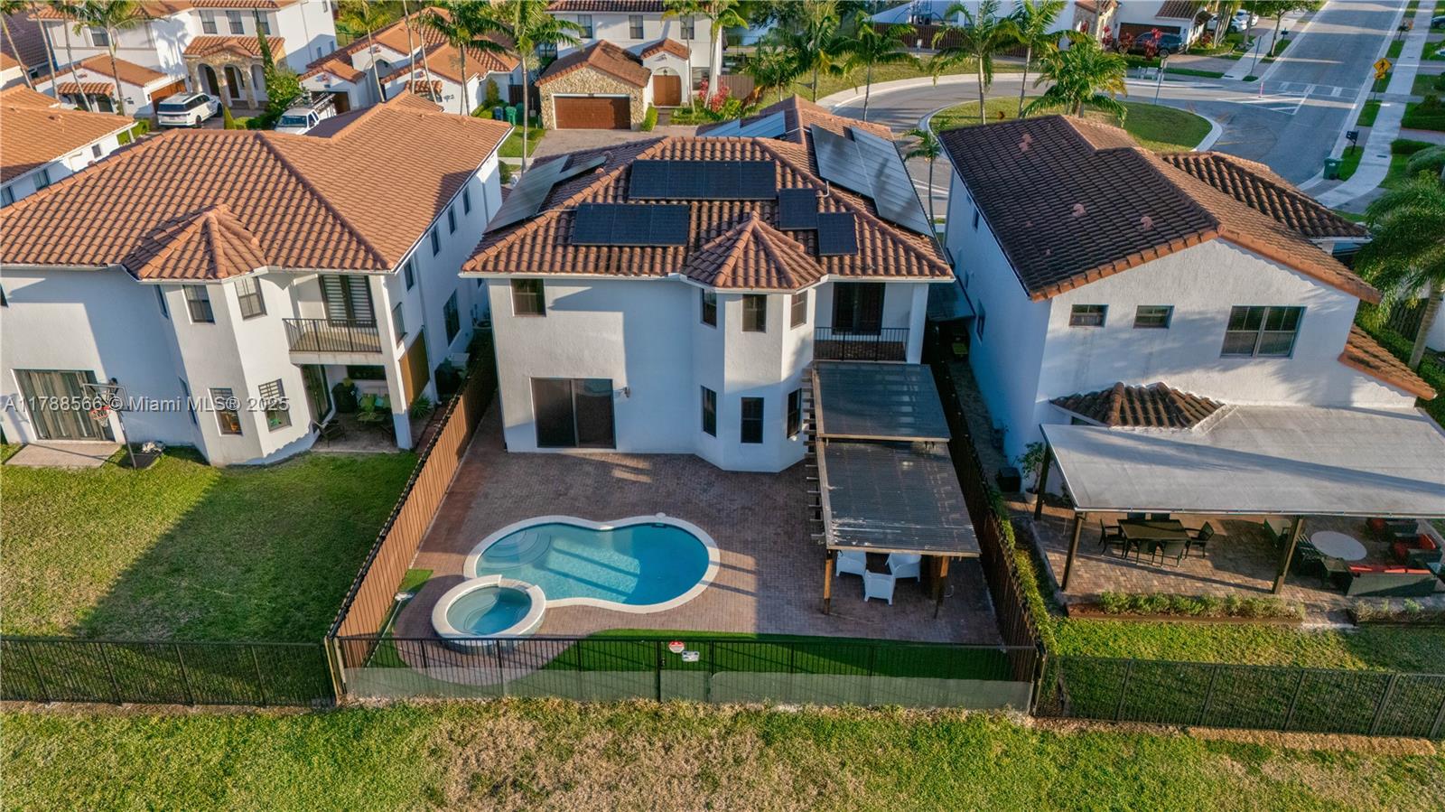 Beautifully maintained 4BR/3.5BA two-story home in the exclusive Las Ramblas community. Features solar panels, porcelain tile flooring, a gourmet kitchen, and spacious living areas. Oversized master suite with balcony and water view. Private backyard oasis with pool, jacuzzi, pergola, and lake views. Community offers 24/7 security, clubhouse, gym, tennis, and playground. Prime location near Dolphin Mall, MIA Airport, and major highways