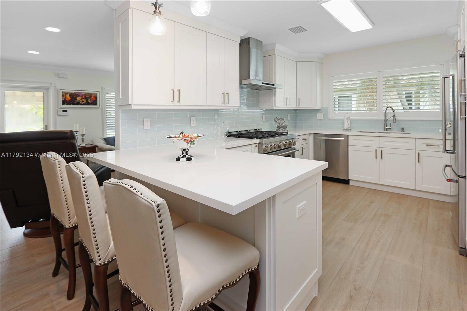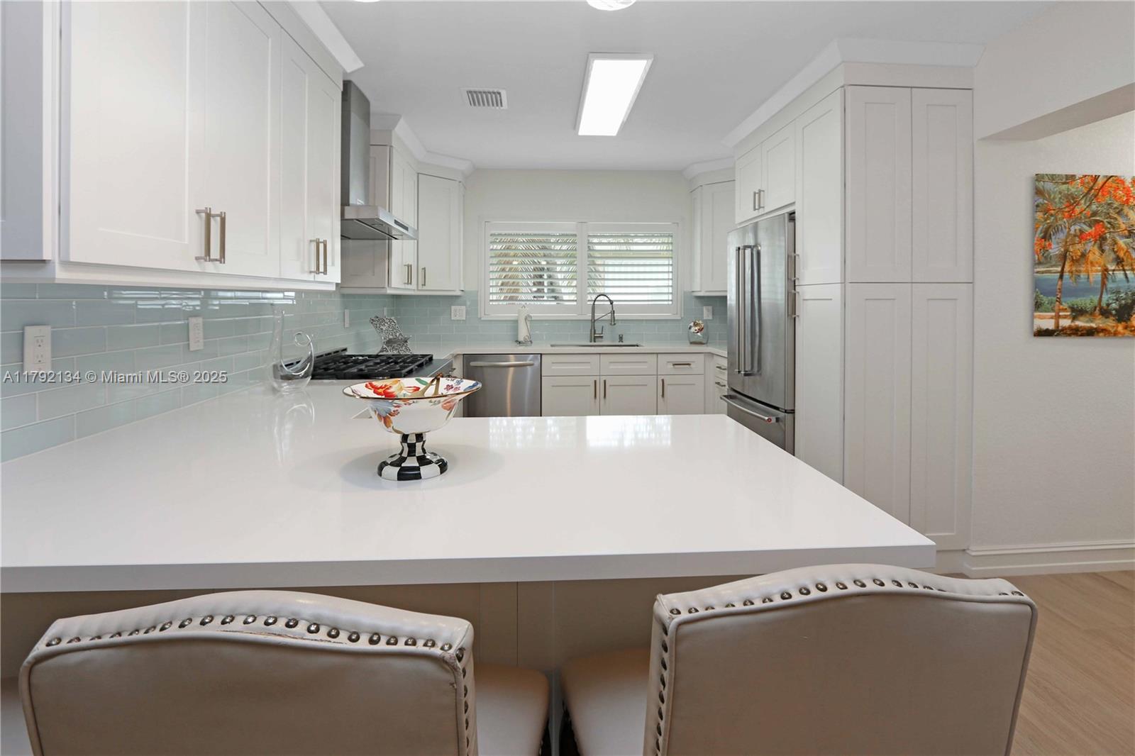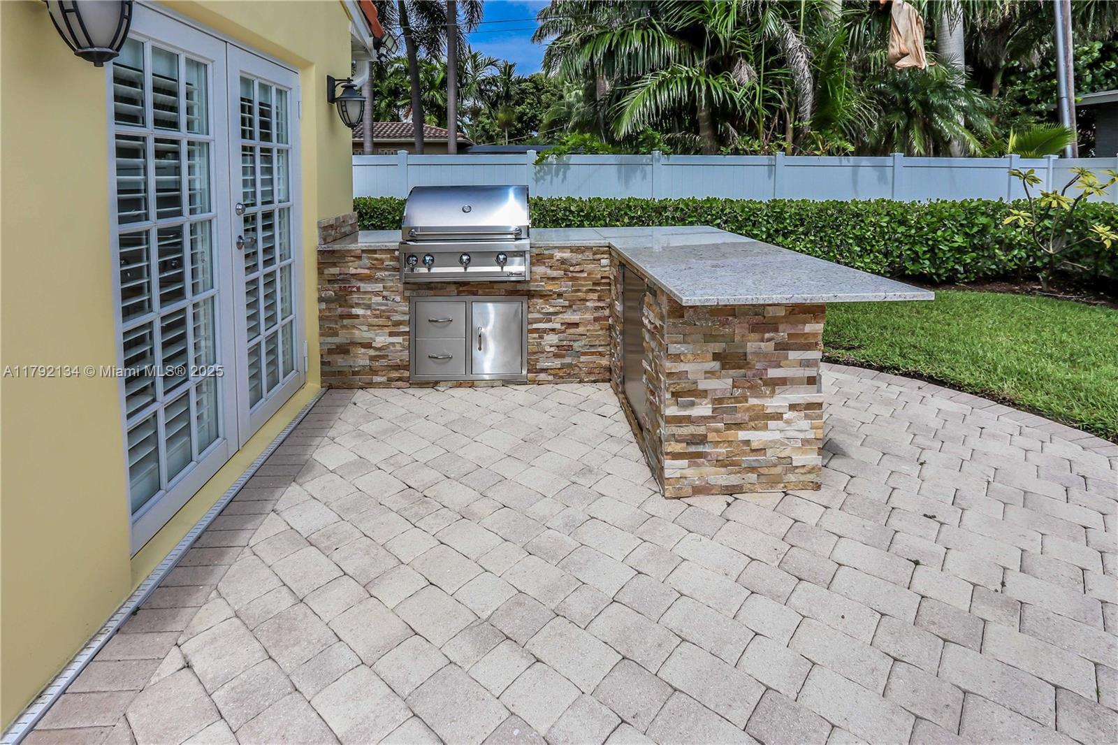 Stunning home in the heart of Hollywood Lakes. Beautifully renovated 3 bed, 2 bath, plus den/office or 4th bed. 2 houses away from South lake. Gorgeous new kitchen w/white shaker cabinets, quartz countertops, 36“gas range w/6 burners, SS appliances & more. Porcelain wood-like tile throughout & travertine in 2 bedrooms, custom closets, impact windows & doors, tankless gas water heater. Laundry room has new washer & gas dryer, quartz countertop, & built in cabinets. Enjoy a tranquil oasis w/saltwater pool & soothing waterfall, outdoor kitchen w/gas grill, fenced backyard with luscious landscaping. Circular paver driveway & pavers surrounding pool, tile roof, covered front & back porch, freshly painted, landscaping lighting, & sprinkler system. This meticulously maintained home has it all!