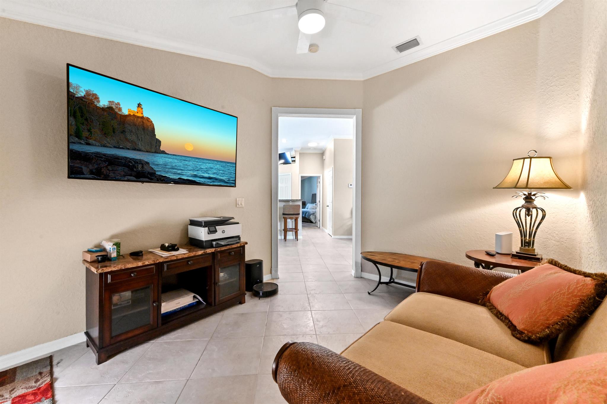 Beautifully maintained home in adorable, community of Sunset Cay...a hidden gem with only 41 homes & an incredibly low HOA. 2Br/2Ba with additional den/flex room that can easily be made into a 3rd bedroom or office space. Seller put in over $200,000 in the backyard creating a true paradise--features include an in-gound, gunite heated pool w/sunshelf & jacuzzi, an outdoor kitchen w/ fridge & built in Bbque, 65ft x 45ft travertine patio & brand new lanai over entire pool & patio creating an entertainer's haven. Entire home is hurricane proof! $20,000 ROOF CREDIT AT CLOSING!! Property backs up to 5 acres of quiet & untouchable land. Perfectly located near PBI, I-95, the Turnpike, many stores & restaurants and just 6 miles from the beach. All measurements are approximate.