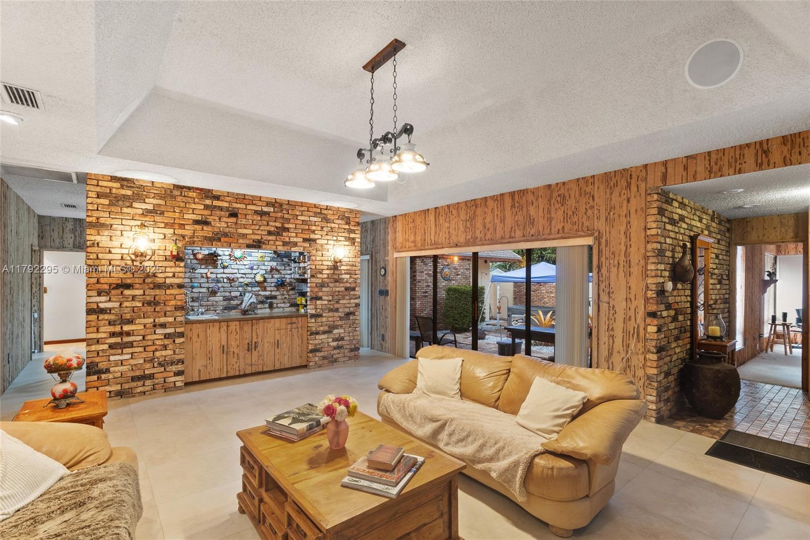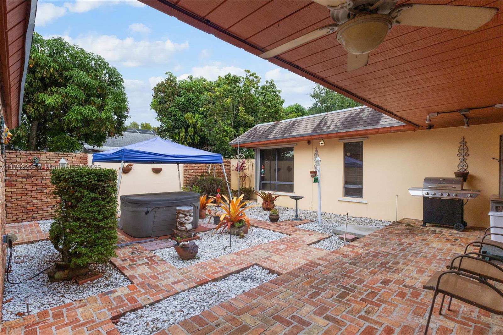 Discover this spacious & private home nestled in a peaceful cul-de-sac in a well-established Cutler Bay neighborhood. Featuring mature landscaping, large circular driveway, carport, and one-car garage, this home offers both curb appeal and convenience. Inside, enjoy coffered ceilings, a cozy fireplace, full brick wall bar, formal dining area, and an oversized kitchen with built-in appliances. The primary suite boasts two walk-in closets and an en suite bath with dual sinks. Additional highlights include cedar accents, updated tile floors, & hurricane panels. Step outside to your private oasis with a covered patio, hot tub, shed, and mango trees! Upgrades include a new water heater, updated electrical panel, & a 10-year-old roof. Don’t miss this Cutler Bay gem full of charm and privacy!