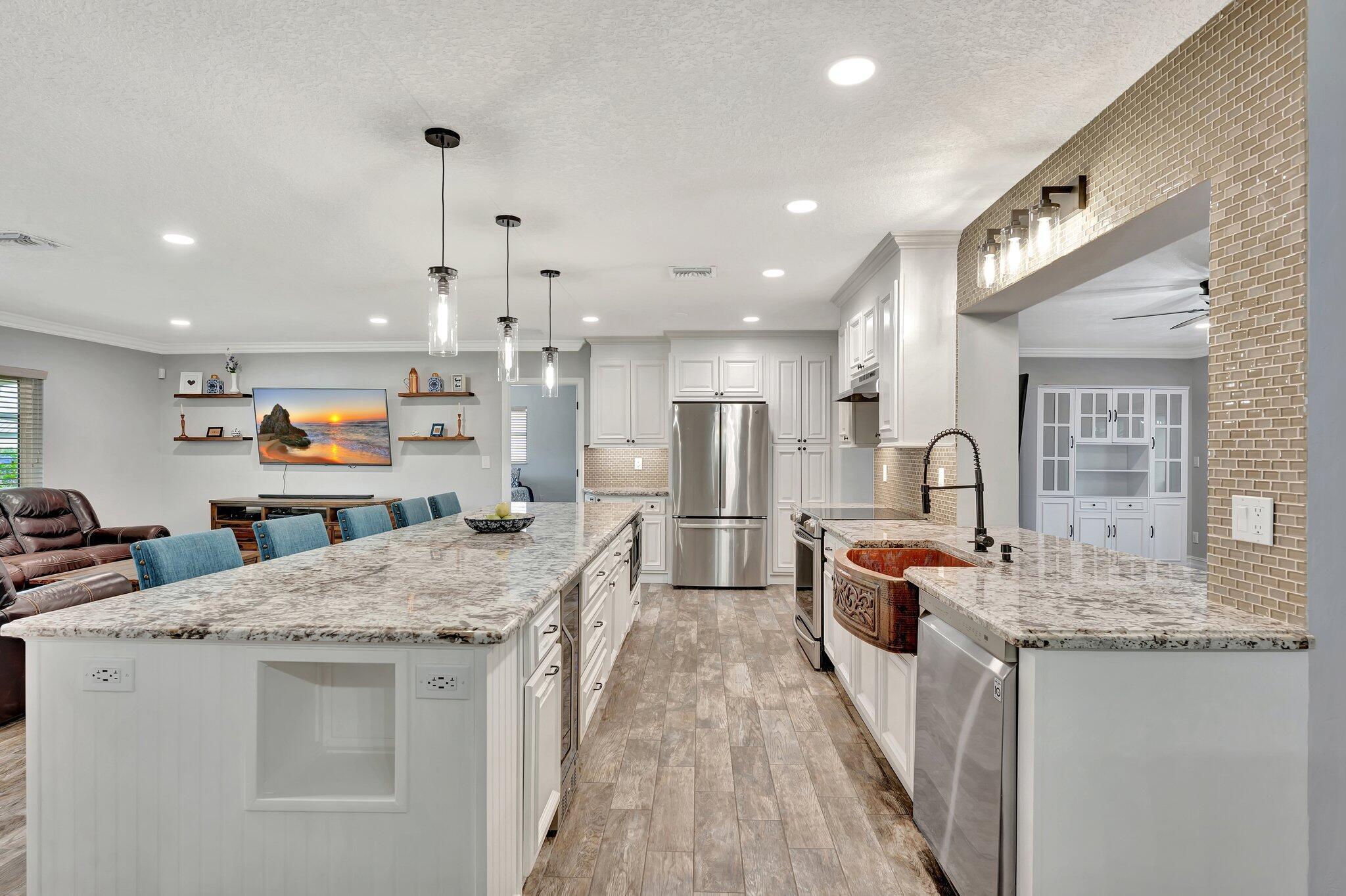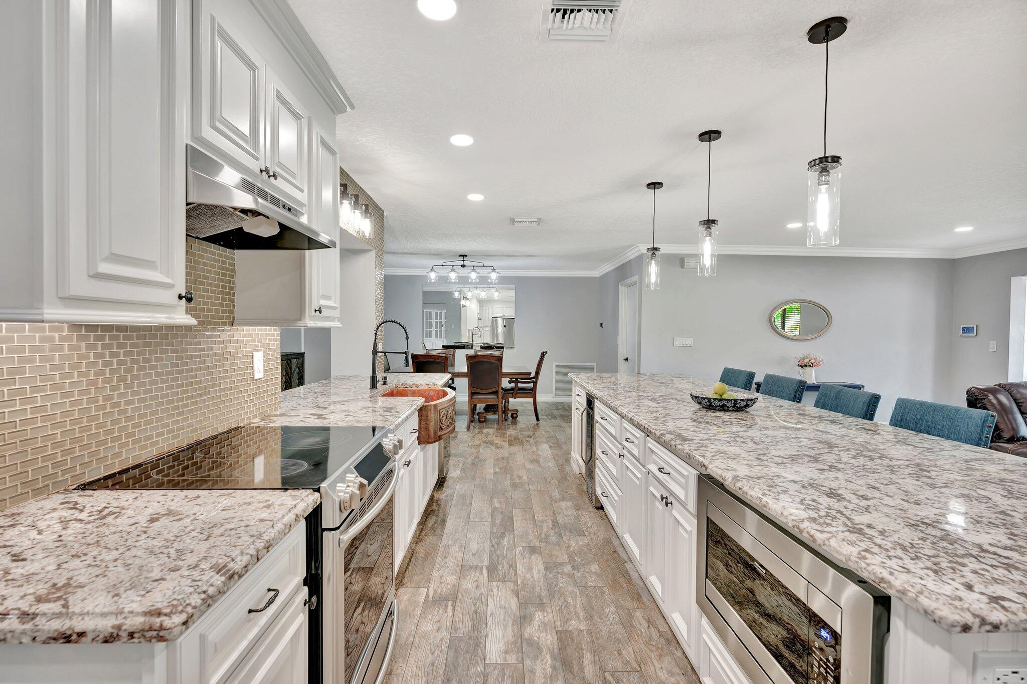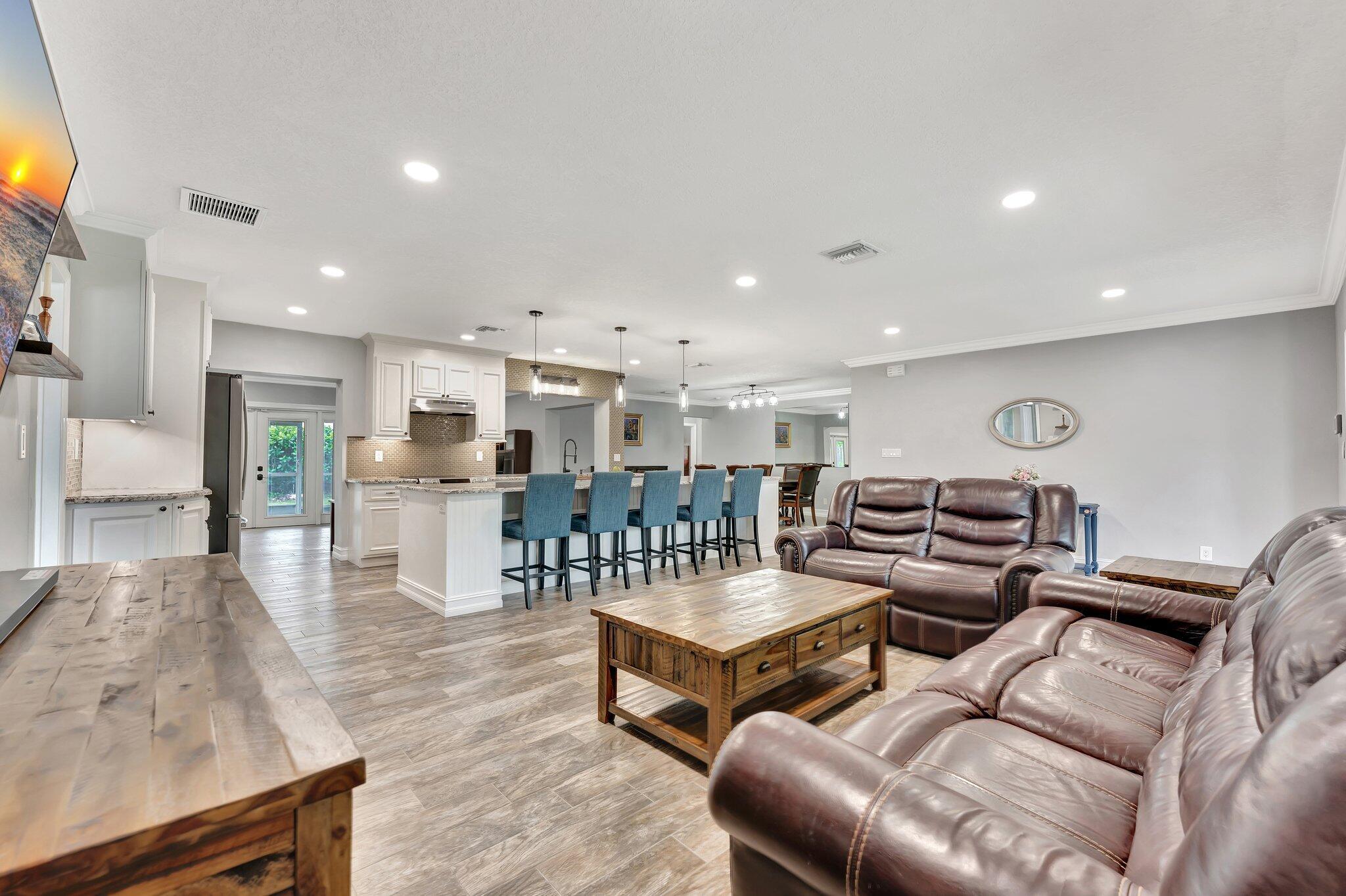 ''Let's gooo! Seller's ready - are you? Jump on this deal! 4 BR, 2 BA, & 2,462 sq ft of modern living space on a quiet street close to parks & major highways. Enjoy a host of recent upgrades including: Tile roof (4 y/o), New A/C unit (1 y/o), electric panel, H2O heater, & hurricane-rated garage door (all 4 y/o), New ductwork & insulation (1 y/o). The home features an open-concept layout with wood plank tile flooring throughout, recessed lighting, & crown molding. The updated kitchen is a chef's dream with a 12-ft island and ample storage. The owner's suite includes a large walk-in closet and an updated bathroom. Additional highlights: Split floor plan, Updated bathrooms & laundry area, majority of windows are impact,Fenced yard w/ screened-in porch, Paver driveway, Garage w/ epoxy flooring
