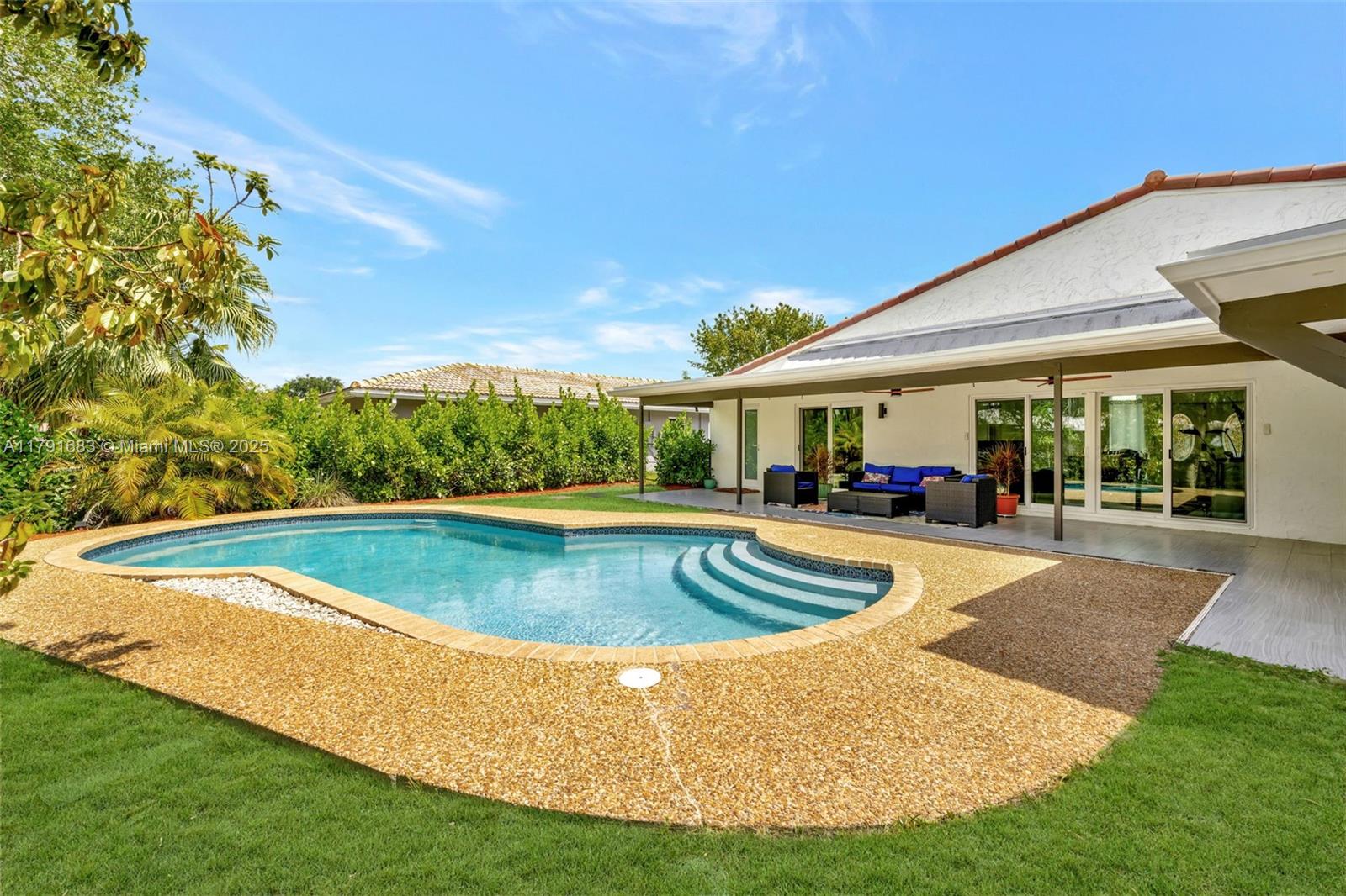 Fall in love with this stunning 4BR/2BA retreat offering a private backyard oasis with covered patio, sparkling pool, and fenced yard—no HOA! Featuring a bright great room floorplan with soaring vaulted ceilings, designer finishes, and gorgeous marble floors throughout. The chef’s kitchen with smart appliances blends luxury and functionality. The spacious master suite feels like a true escape with spa-inspired amenities. Impact windows and doors, new roof (2023), tankless water heater (2022), and a beautifully finished garage complete the package. Located in a prime Coral Springs location, walk to top schools, shopping, and dining.
