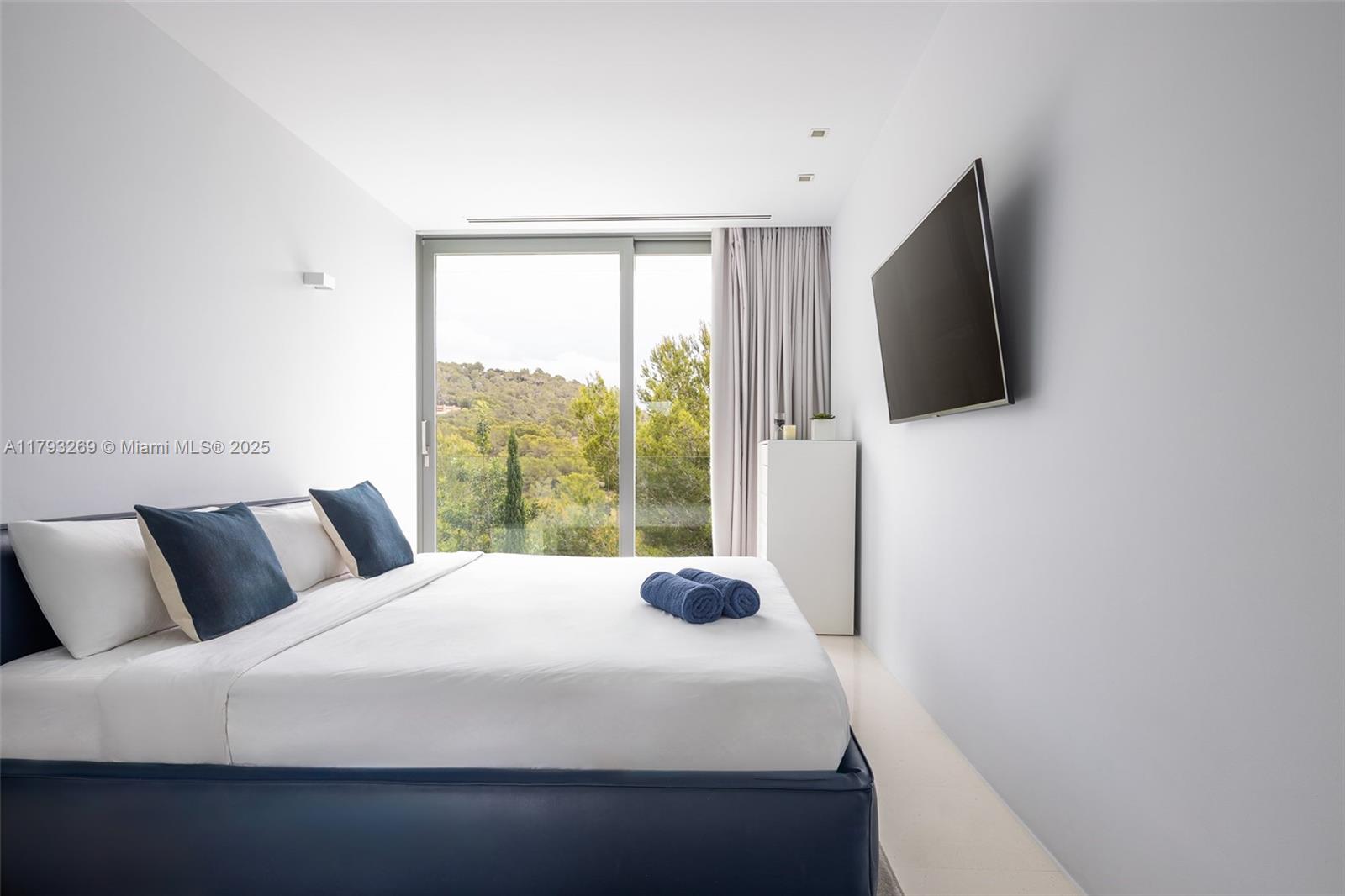 This marvellous property is truly breathtaking. Designed by world renowned architect Bruno Erpicum to capture the vibrancy, fun and natural beauty of Ibiza, not only will you be staying in a piece of iconic architecture but you’ll also be able to take advantage of one of the most luxurious locations on the island. You’ll also experience possibly the best views on the island; wake up in this villa and you’ll be met by an unparalleled panorama – sun soaked vistas of the Mediterranean and island of Formentera. Hidden within pine trees and fragrant gardens, this 850-square-metre (9,150-square-foot) on top of a plot of land of 1600m2, 8-bedroom villa opens to expansive outdoor terraces and gardens, including a private pool and Jacuzzi with views of the sea.