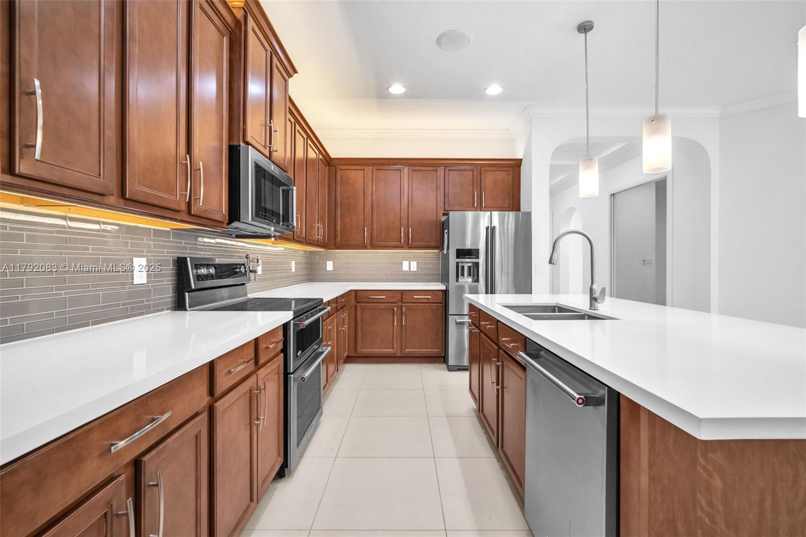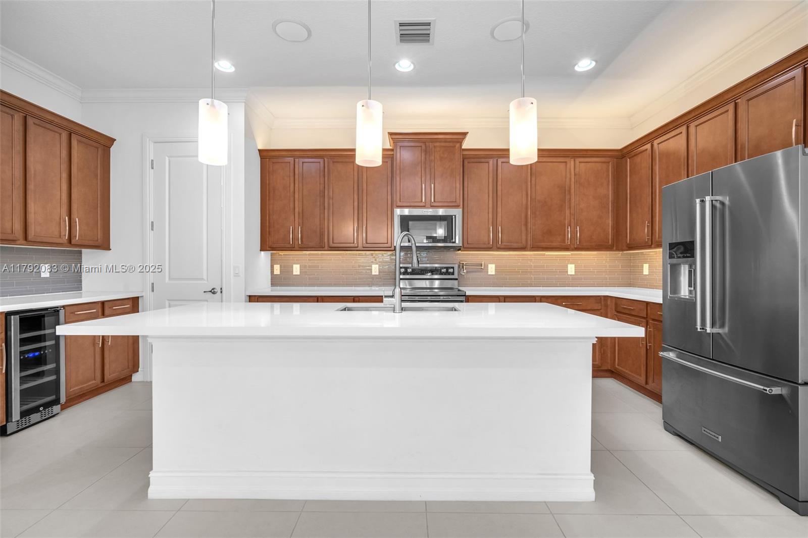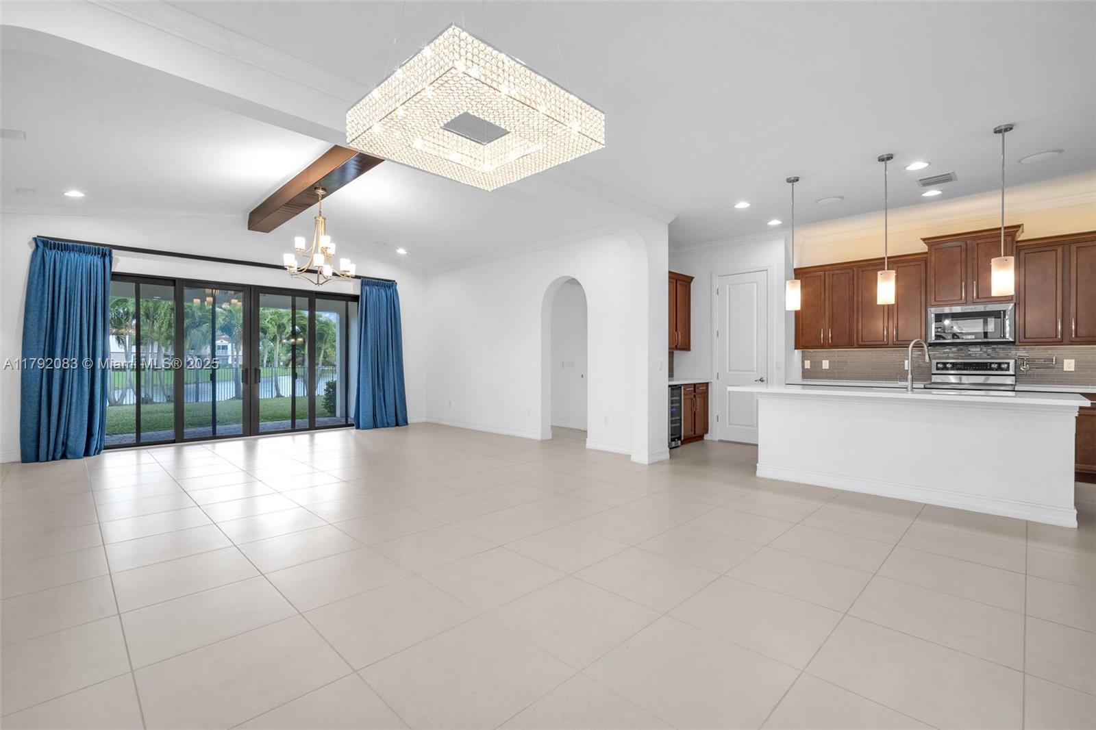 Stunning, 2016 modern single floor 3/2.5 home with lovely finishes & lots of fine details. Kitchen has white quartz counters, wine cooler, cooking faucet, pull out cabinets, customized pantry & Kitchen Aid appliances. Large master sports electronic shades, glass enclosed rain shower, soak tub, dual customized closets & relaxing view of the water. Great area is spacious, with modern ceiling light fixtures, classic window treatments & great water view. Every area is beautifully appointed. Even the laundry room is special with solid counters, custom closets & wash tub. Back yard is nicely hedged for privacy with clear view of canal. Tiled & closeted 2 car garage +2 driveway spaces! This marvelous home even has a water filter! Well located and in great community. Near I75, shops & services.