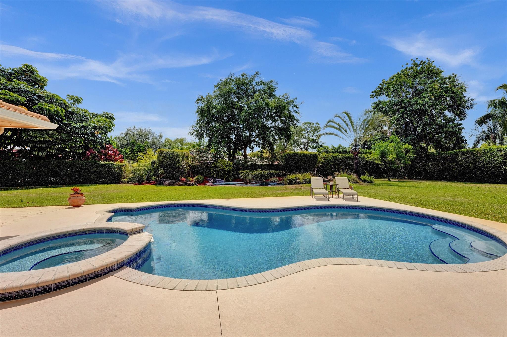 Live in a beautiful golf community without the membership fees! And there is no HOA!! This well maintained home sis on over a half acre with a beautiful view. The pool was just resurfaced in January with a jetted tub. Then beyond that view is a pond with a peaceful waterfall and firepit for your enjoyment. Then more spacious yard. Enjoy all this view from the nice all glass kitchen window. New stovetop just installed, Terracotta tiles through out. The owners just installed smoke detectors days ago, just had the air ducts cleaned and put up new air vents. The back patio has just been freshly painted and the roof tiles cleaned. There is a nice under air spacious laundry room with ample counter space and plenty of cabinets and an additional pantry besides the one in kitchen. AC just serviced.