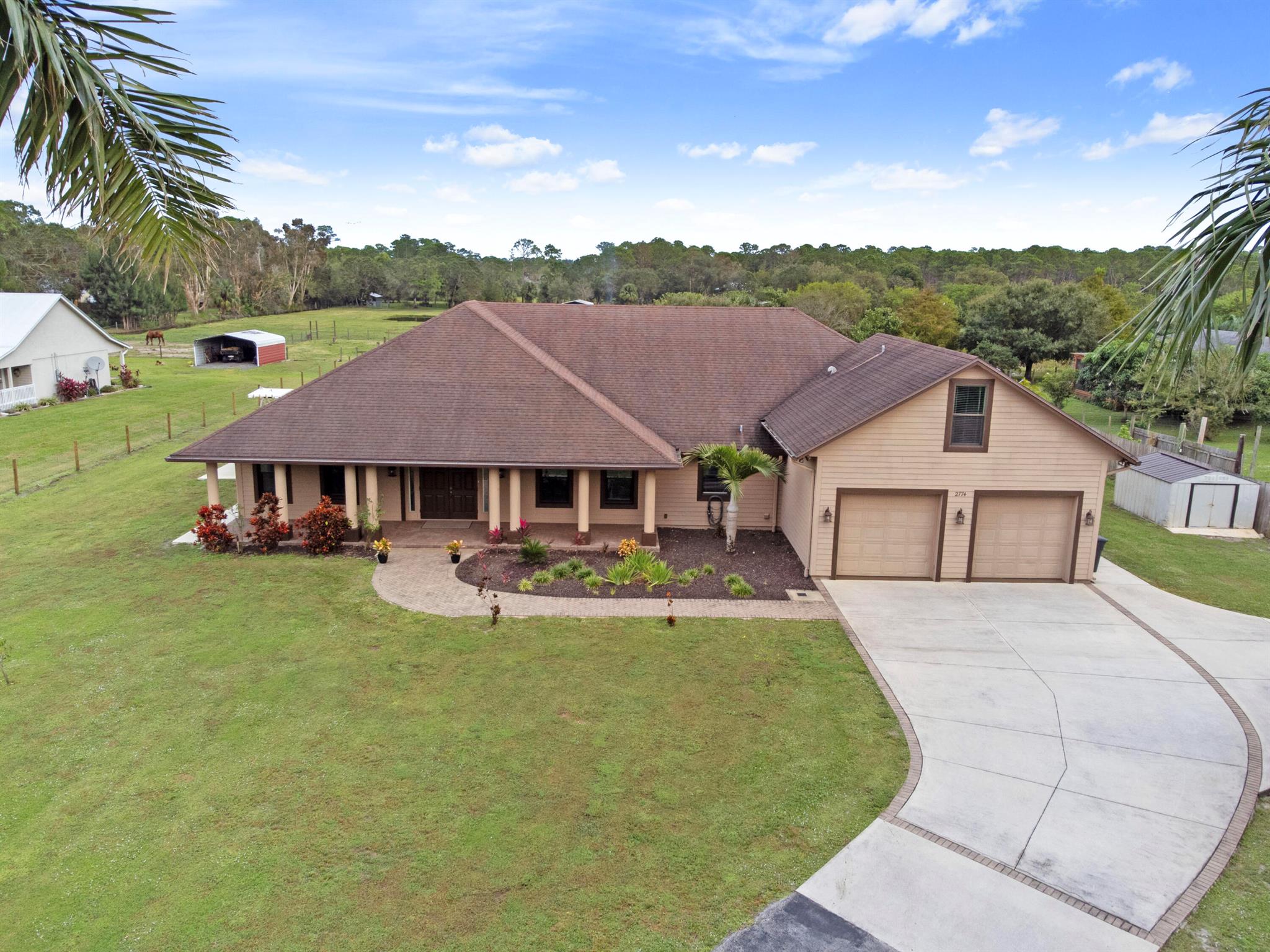 SELLER IS MOTIVATED! He has reduced the price drastically!! lThis beautifully maintained, custom ranch home on 2.99 fenced acres at the end of private paved road features 4 beds + game room, 3.5 baths, & 2.5-car garage. Master features HIS/HERS baths & HIS/HERS Walk In Closets! Enjoy stunning views of lakes, wildlife, & mature landscaping. Boasting cathedral ceilings, a chef's kitchen w/ Cherrywood cabinets, quartz counters, & top-tier gas stove. Entertain with ease in the 880 sq ft screened lanai w/ full outdoor kitchen & fireplace or relax in the saltwater pool w/ solar heat. Includes a 2-stall barn, RV/boat pad with 220V, whole-house reverse osmosis, HUGE walk in insulated attic, central vac, & more just 10 mins to beaches & 2 miles from I-95 & Turnpike! Seller offering low%financing