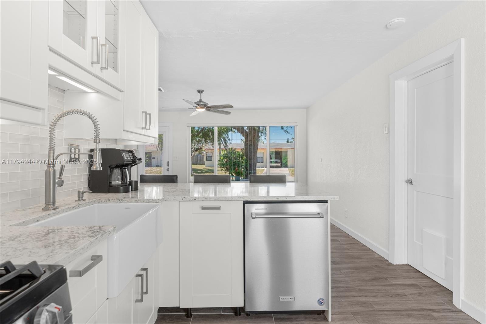 Welcome to this beautifully updated 3/1 single-family pool home featuring a new metal roof, whole-home generator, and tankless water heater for peace of mind and efficiency. Enjoy hurricane impact windows and doors throughout. The modern kitchen boasts white cabinets, quartz countertops, stainless steel appliances with a gas cooktop—perfect for the home chef. Stylish wood-look tile flooring complements the elegant stack stone accent wall. The fully fenced yard offers privacy and plenty of space to entertain. The expansive paver driveway is awaiting your cars, boat and/or RV. Best of all, there’s no HOA, giving you the freedom to live how you choose. This home blends comfort, safety, and style—inside and out. FHA/VA/Conventional financing. Ask me for full list of all PERMITTED upgrades.