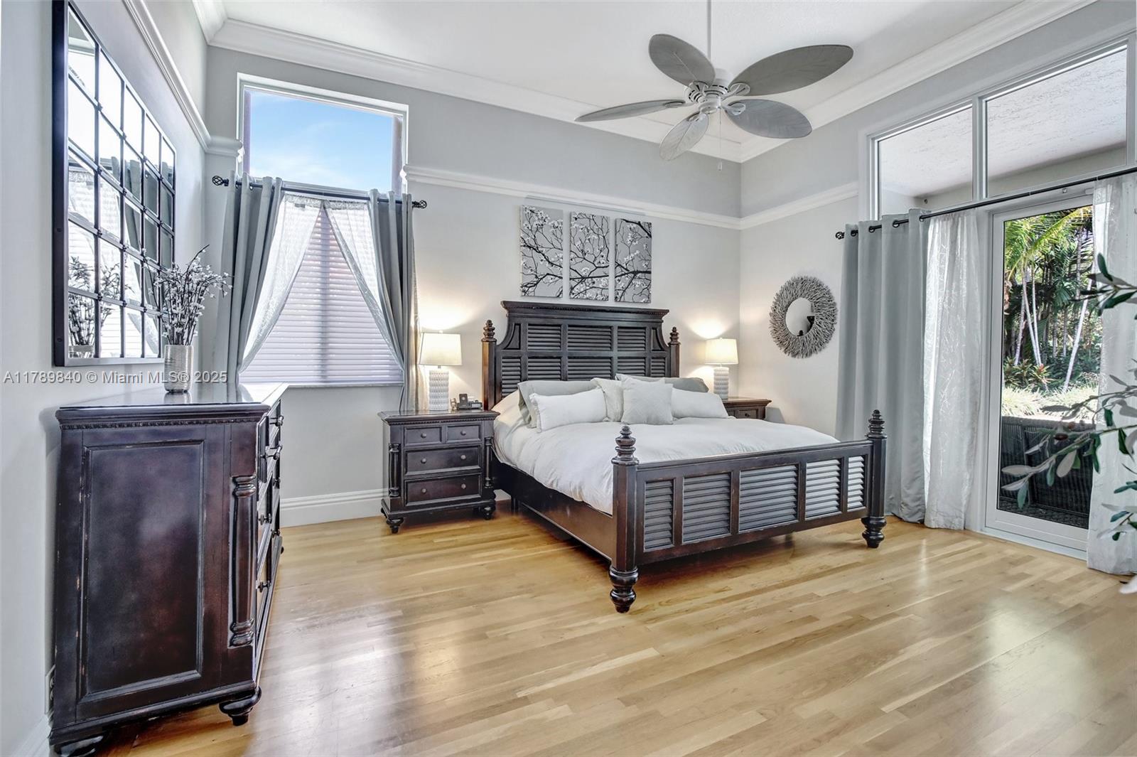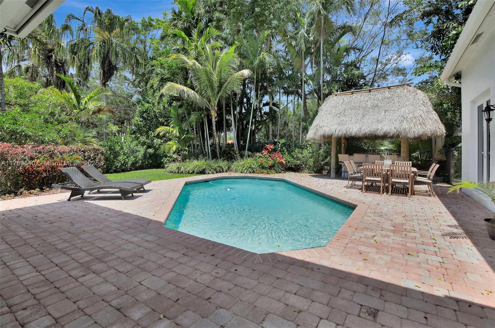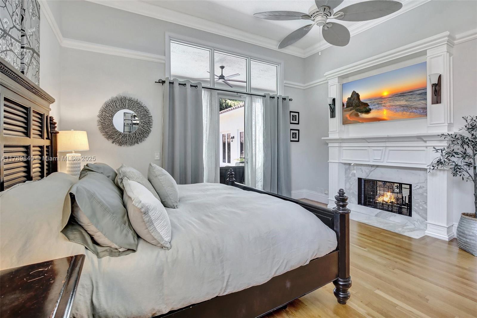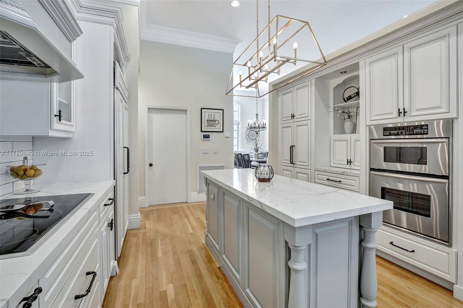 Just under 3,200 SF of open living space with soaring 13-ft ceilings and rich oak hardwood floors. This 5BR/3BA home features a 2018 roof, impact windows/shutters, and a high-end kitchen with Quartz counters, Grabill cabinets, and Sub-Zero, Wolf, and Dacor appliances. Expansive family room with built-in wine bar and cooler. Luxurious primary suite with custom his-and-her closets, renovated spa bath, and dual-sided fireplace to the living room. Big secondary bedrooms; 5th bedroom currently an office. Enjoy the oversized covered patio, sparkling pool, and Tiki Hut with built-in grill. Live the luxury lifestyle at WHCC!