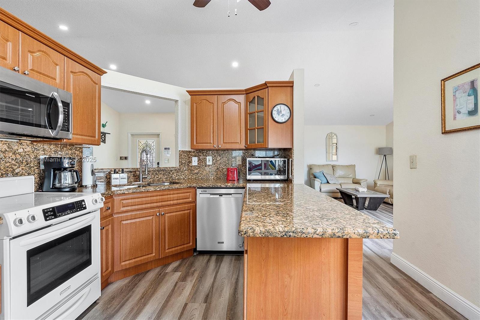 Lakefront updated 3 Beds/2 full Baths Single Family Home, plus a double car garage. The house is situated on a private lake boasting a fully enclosed patio -perfect for entertaining and enjoying unlimited waterfront views from your backyard. Lakefront property offers endless entertainment options, from swimming to boating at the convenience of your own property to make timeless memories. Featuring 1,514 sq. ft. of thoughtfully designed living space, this residence offers comfort and style throughout. Recent upgrades include, impact windows, HVAC system, modern flooring, and fully renovated bathrooms—everything has been updated for peace of mind and move-in-ready convenience. READ BROKER REMARKS FOR SHOWINGS