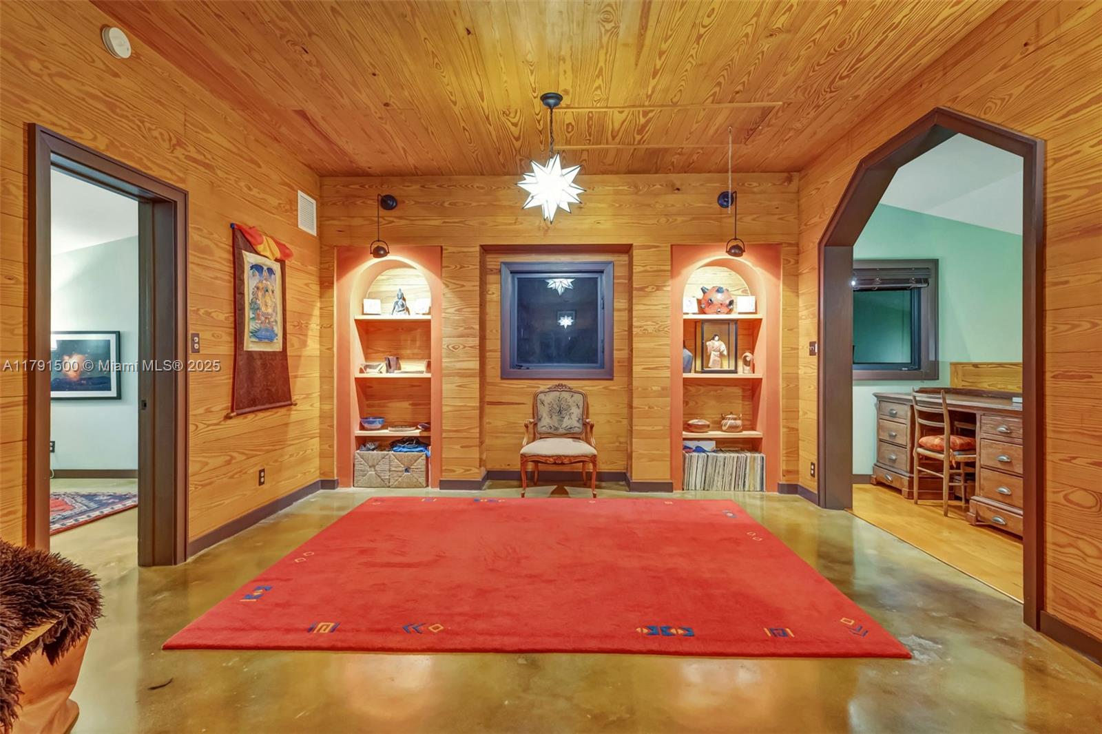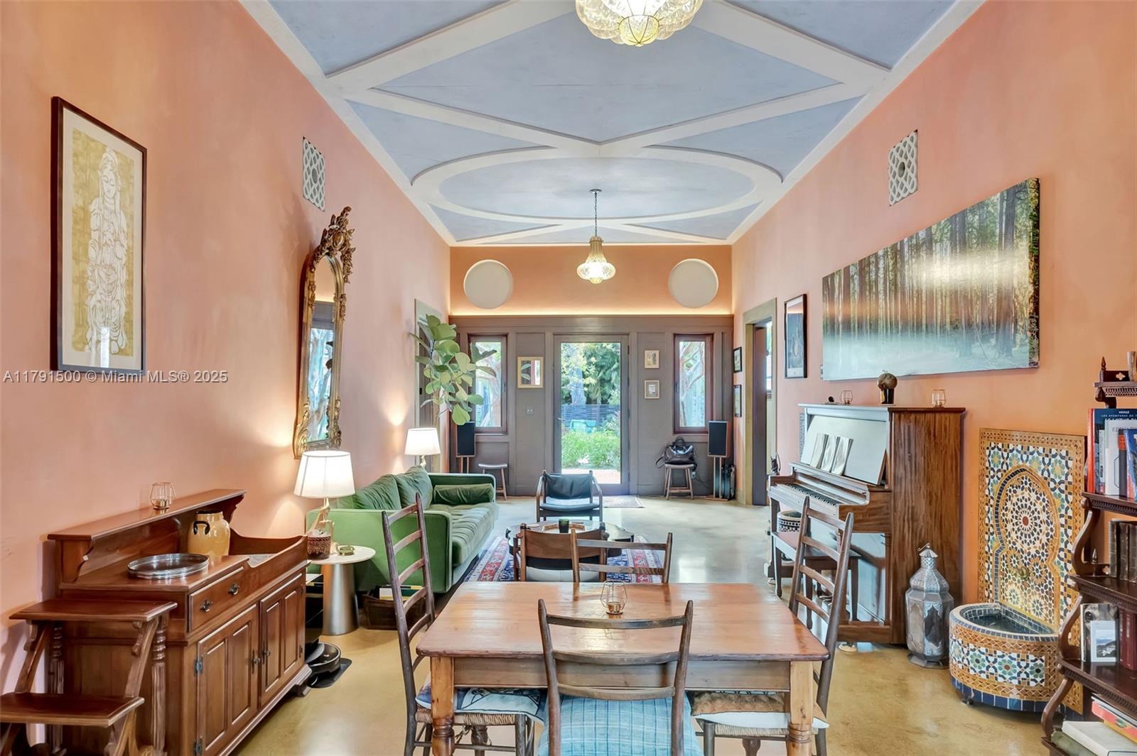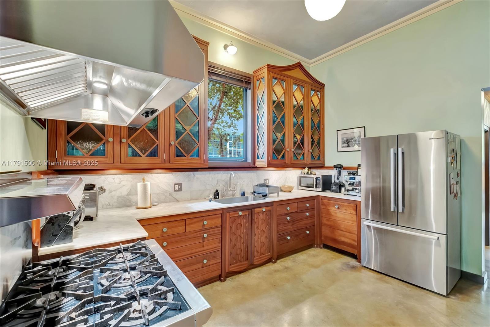 Ca’Rosa is a 4BD (+1 extra room)/3BA Venetian-inspired villa on a high elevation lot in verdant North Coconut Grove. Designed by Trelles Cabarrocas Architects, this magazine-worthy home won the 2013 Mizner Award for Excellence in Architecture. A perfect home to entertain in, Ca’Rosa features 12’ ceilings, combination pool/hot tub, soaring covered loggia, hand-blown Murano glass light fixtures, polished concrete floors, yellow pine paneling, and lush gardens with fruit trees and Florida native plants. Chef’s kitchen includes Wolf range, Bosch refrigerator, Miele dishwasher, marble counters and handmade mahogany/stained glass cabinetry. 11KW owned solar and smart thermostats can cover nearly all electricity costs. EV charger, huge attic, storage room, and generous closets. A masterpiece.