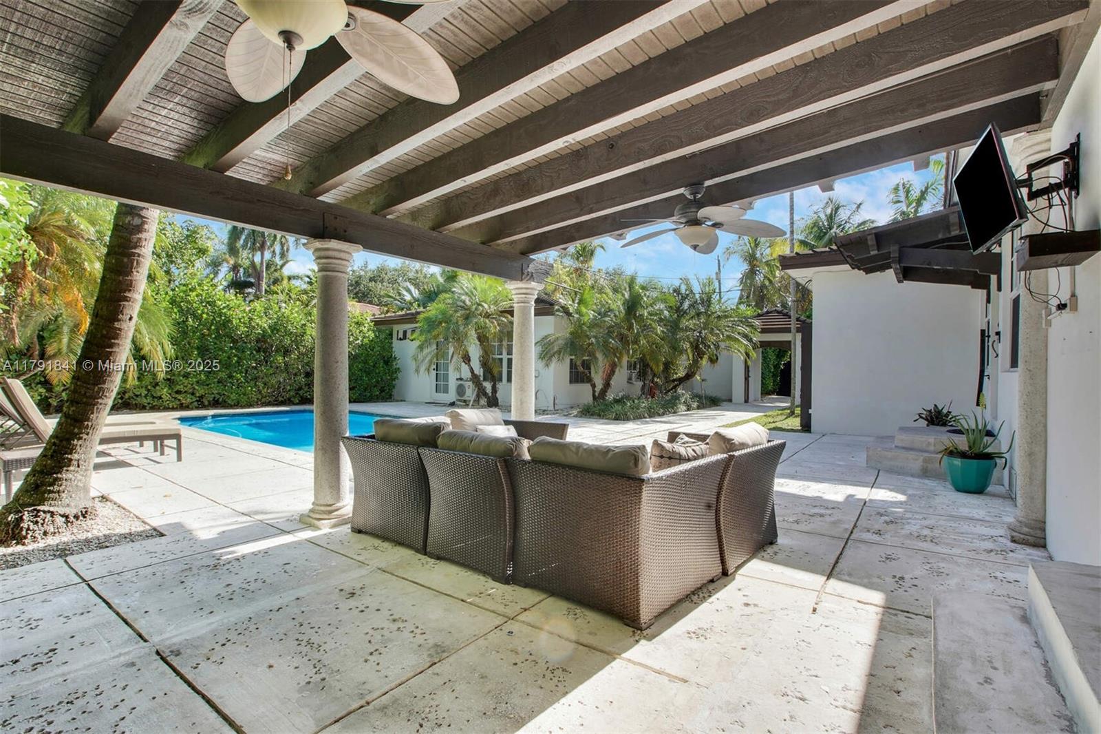 Experience ultimate Coral Gables living with this beautifully designed oasis just blocks from Sunset Place and its restaurants, shops, and entertainment. The main residence offers four bedrooms and three bathrooms, two of the baths thoughtfully updated. Light-filled living and dining areas flow seamlessly into a large udpated kitchen featuring high-end appliances and an expansive counter perfect for gatherings. A separate 1-bedroom, 1-bath guest house provides flexible space for visitors, extended family, or a private office. Both homes share a lushly landscaped courtyard centered around a pool, creating a true indoor-outdoor sanctuary. Mature foliage envelops the property offering exceptional privacy. Located near top-rated schools, in one of Miami’s most desirable neighborhoods.