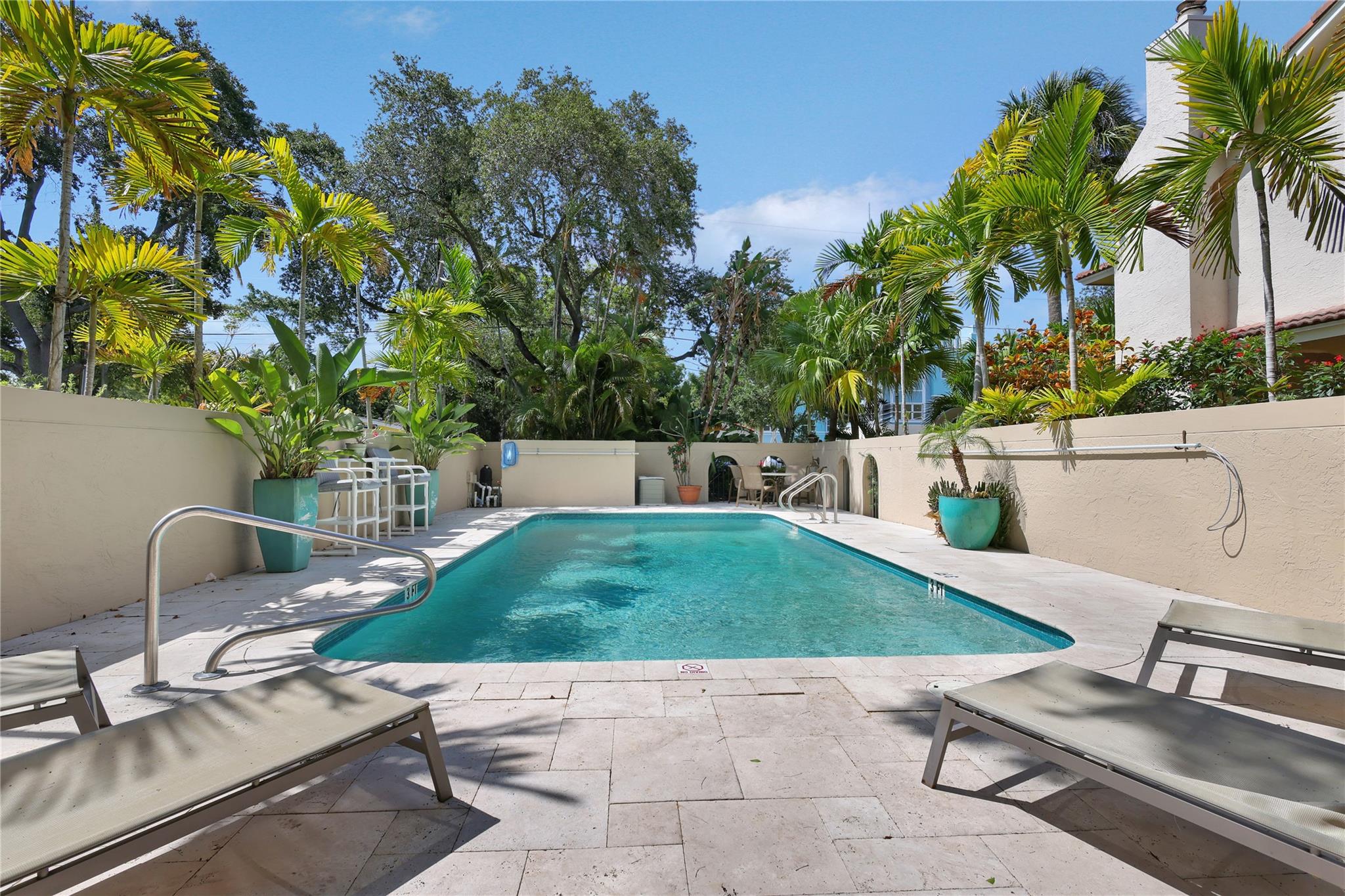 Great priced for GREAT LOCATION in East Fort Lauderdale! Hidden Gem pet-friendly Townhouse Community. Updated paradise w/heated pool, tree canopy, close to beach, restaurants, downtown, airport. Spacious corner home, full IMPACT windows & doors, newer AC, storage. Enjoy sweeping flow of the home w/HUGE Kitchen, Expansive Living Space & wood burning fireplace. Granite counters, wood cabinets new Vinyl Floors, Powder Room & Full sized washer & dryer are on first floor. Large sliders onto private courtyard. Up plush soaring stairs to 2 corner bedroom suites with WICs. Primary has upgraded bathroom, glass shower & double vanities. Guest Suite: bathtub-shower combo. 2-car Tandem parking & guest spots. Come see it, then make it yours! See Virtual TOUR for drone video. FULL RESERVES! Low down.