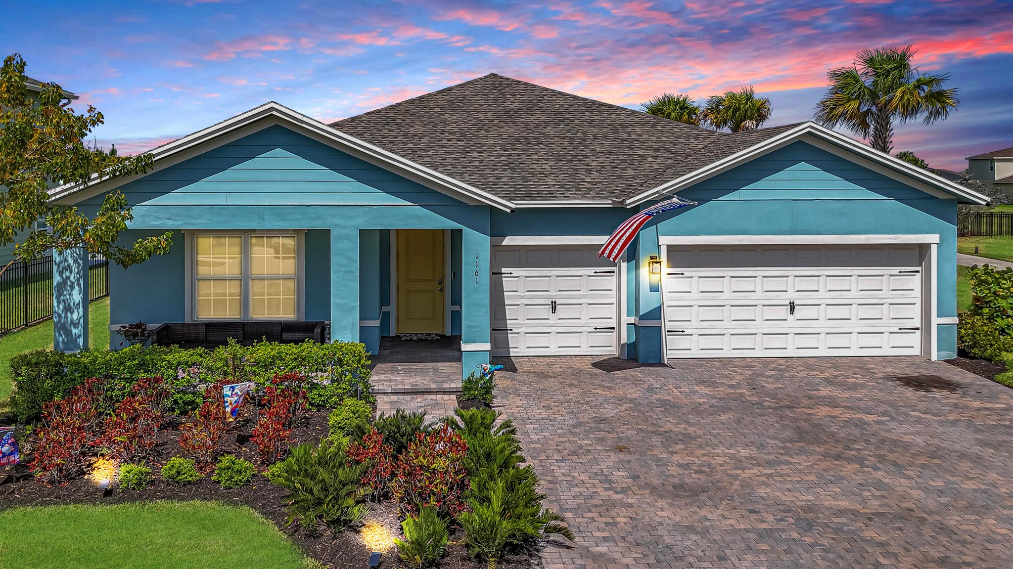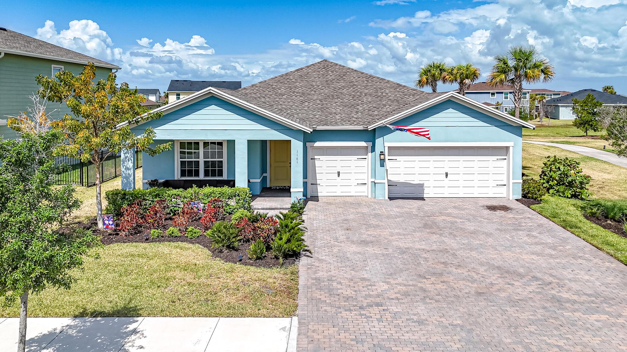 *SELLER OFFERING $2500 CREDIT AT CLOSE TOWARDS CLOSING COSTS*Ryan Homes*Sandalwood Model*4 BED+FLEX ROOOM/3 BATH /3 CAR GARAGE on premium lot, no neighbor to the right, and tranquil views out back. This beautifully designed SINGLE-STORY residence in GATED Arden offers the perfect blend of luxury, comfort, and functionality. IMPACT GLASS WINDOWS AND DOORS. UPGRADES: Elevation C, Covered Front Porch, Crown Moulding, VINYL flooring throughout, DOUBLE OVEN, GAS RANGE, TANKLESS WATER HEATER, Tray Ceiling in Owners Suite, Gourmet Island Quartz Kitchen, Epoxy Garage Floor, SCREENED and COVERED Back Patio. Luxurious owner's suite with SOAKING TUB and separate Walk-In Shower, HUGE Walk-In Closet, and Double Vanities. Brand New GE Stainless Steel Refrigerator and includes the Washer and Dryer.
