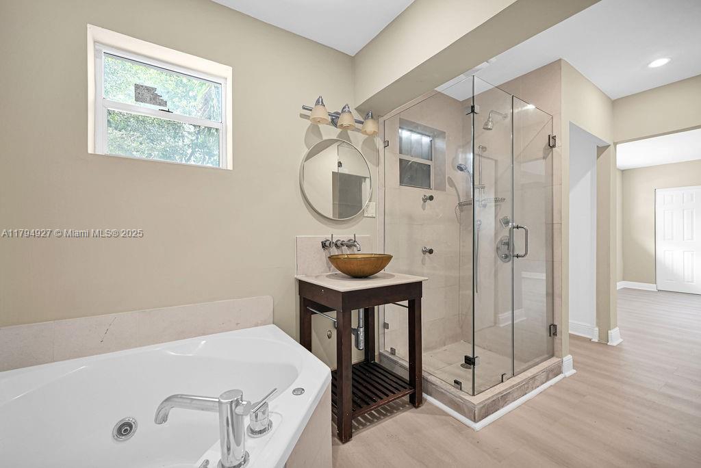 Spacious and updated 3-bed, 3-bath home on a large corner lot in Biscayne Park. Featuring a new kitchen with granite counters and stainless steel appliances, luxury vinyl floors, and a bright open layout. Relax in the oversized Florida room with wood-beamed ceilings and views of the private backyard oasis with pool and plenty of entertaining space. One primary suite includes spa-style bath with soaking tub and glass shower. Enjoy mature trees, peaceful surroundings, and easy access to parks, shops, beach, and major roads. Second primary suite can be used as an ADU with its private parking, entrance, and living area. Don't miss this opportunity and make your appointment today.
