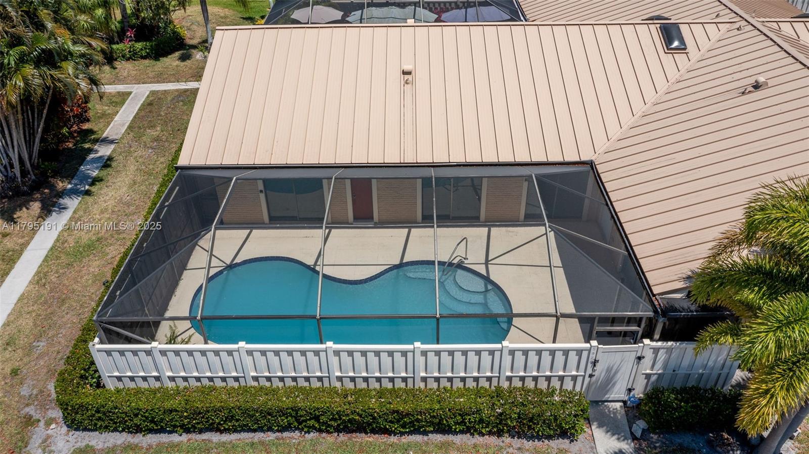 Move-in ready Pool home built for Florida living! Hurricane Shutters just installed -buyer to receive full insurance credit! Property Features elegant marble tile flooring, soaring vaulted ceilings, fresh white interior paint, and brand-new baseboards and lighting throughout. The kitchen and baths have been thoughtfully updated with a modern finish, while all bedrooms feature warm wood laminate flooring. Outside, enjoy your private screened-in pool, perfect for year round relaxation or entertaining. *MAJOR UPGRADE* Plumbing has been fully replaced throughout the entire home. Located in Westwood Gardens, enjoy low HOA fees and access to two community pools, a clubhouse, tennis courts, and more. Just minutes from world-class golf, beaches, shopping, dining, and PBI Airport!