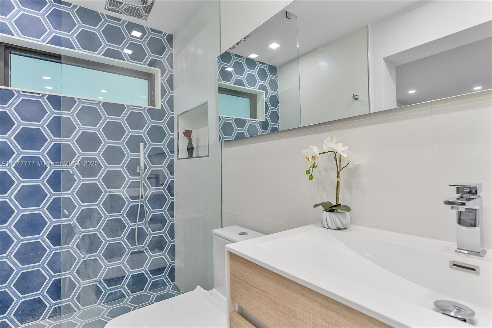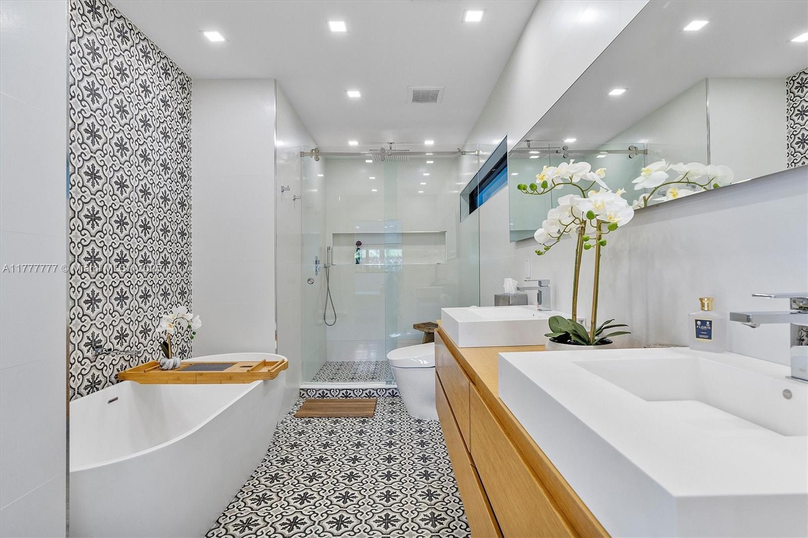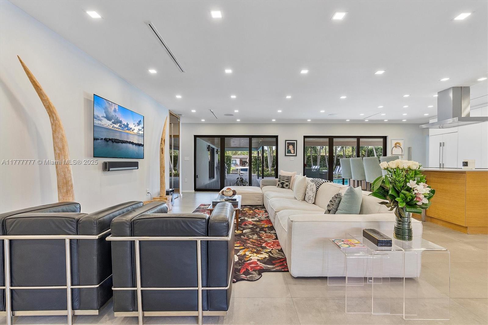 Experience the pinnacle of waterfront luxury in this stunning 5-bedroom, 4.5-bath designer smart home in guard-gated Keystone Point. Boasting over 3,000 sq ft of living space on a 75 ft waterfront lot with direct, bridge-free ocean access, this residence features a gourmet white quartz kitchen with Sub Zero and Fisher Paykel appliances, butler's pantry, and smart home controls for lighting, AC, speakers, and security. Enjoy sun-filled interiors with impact glass, a primary suite overlooking the heated pool, lush landscaping, a covered outdoor lounge, mosquito misting, a living wall, and a 60 ft illuminated dock—minutes from Bal Harbour, beaches, and fine dining on a quiet cul-de-sac.