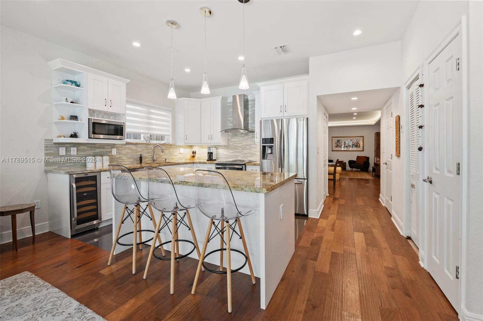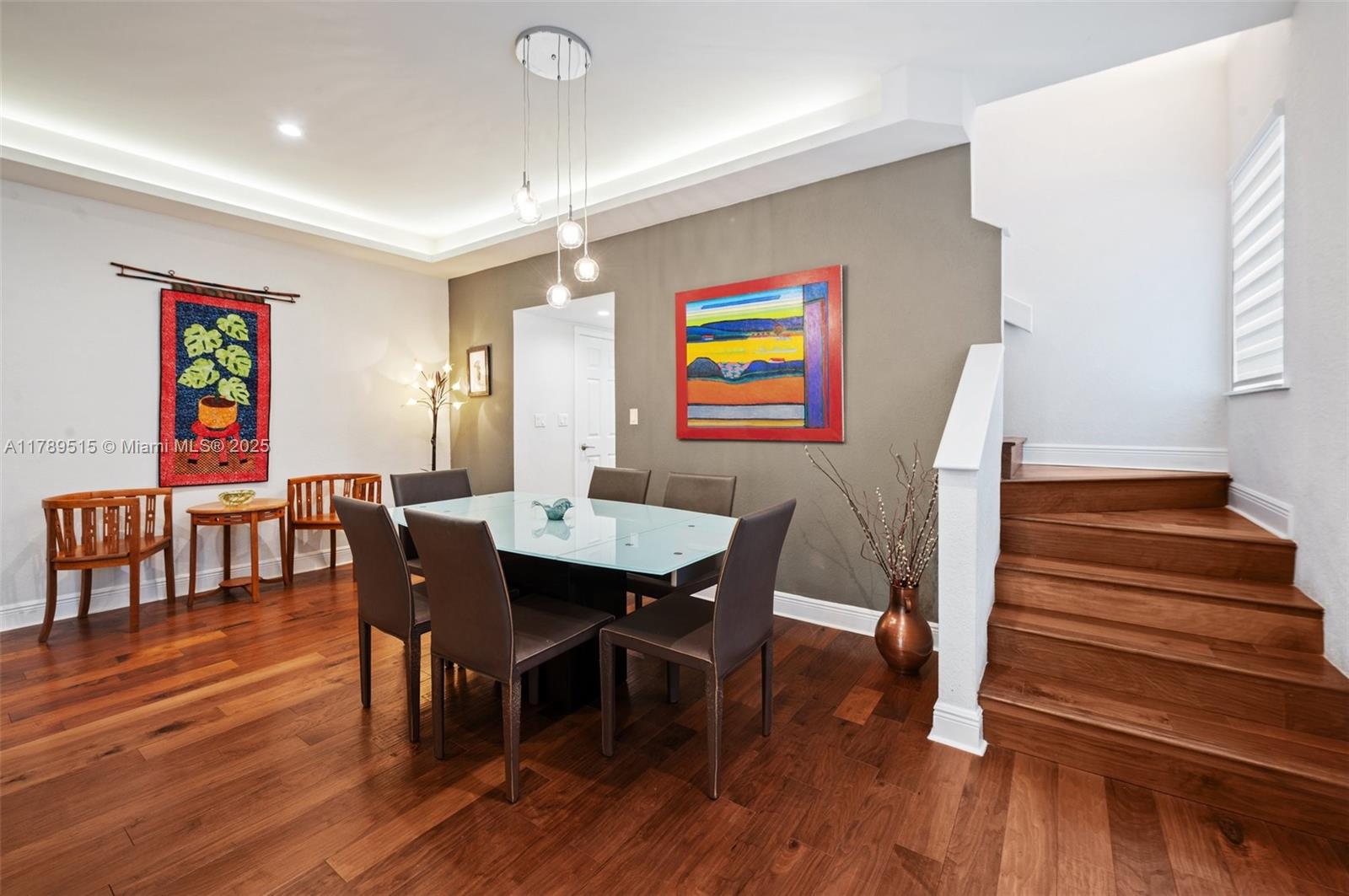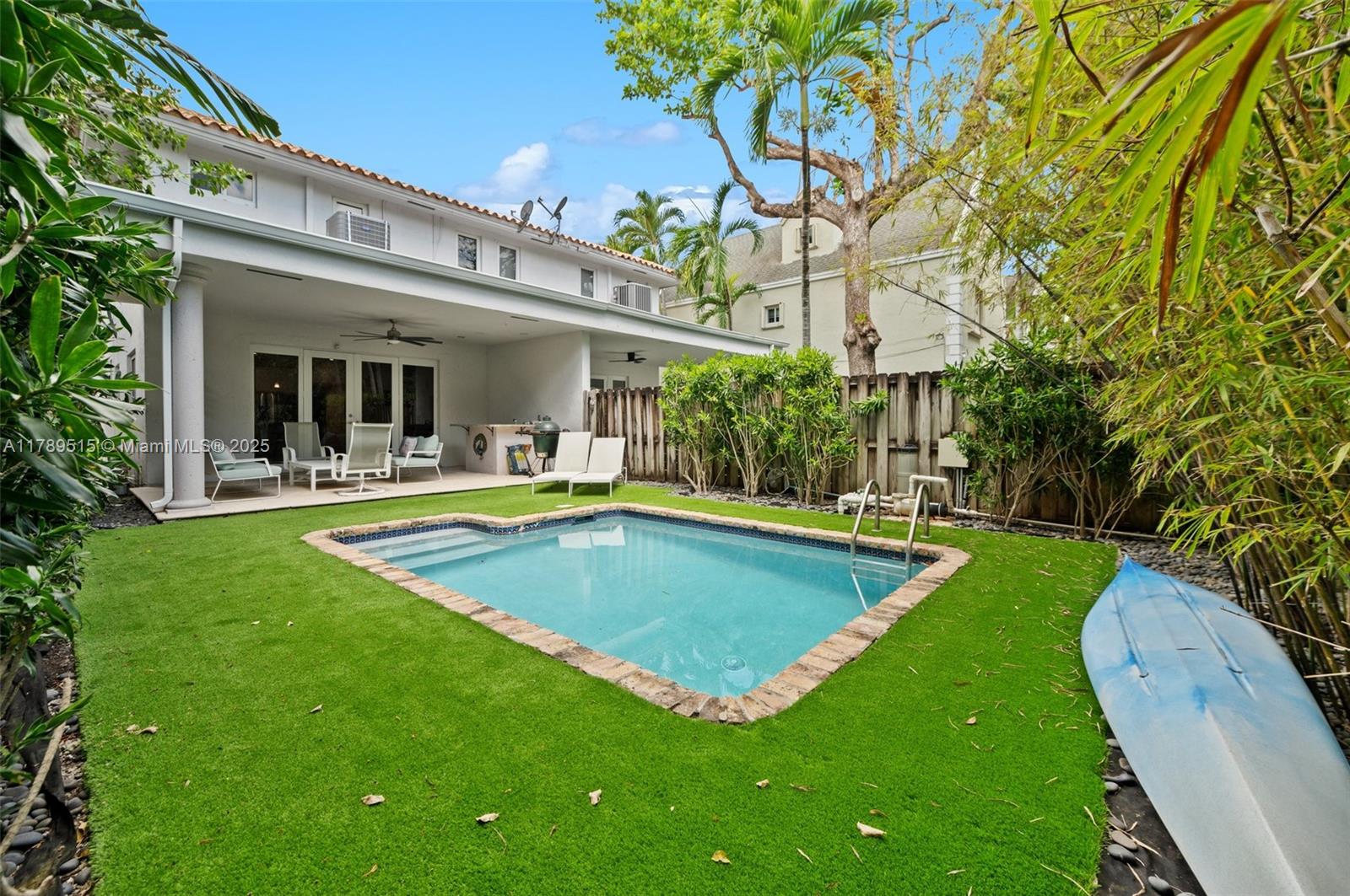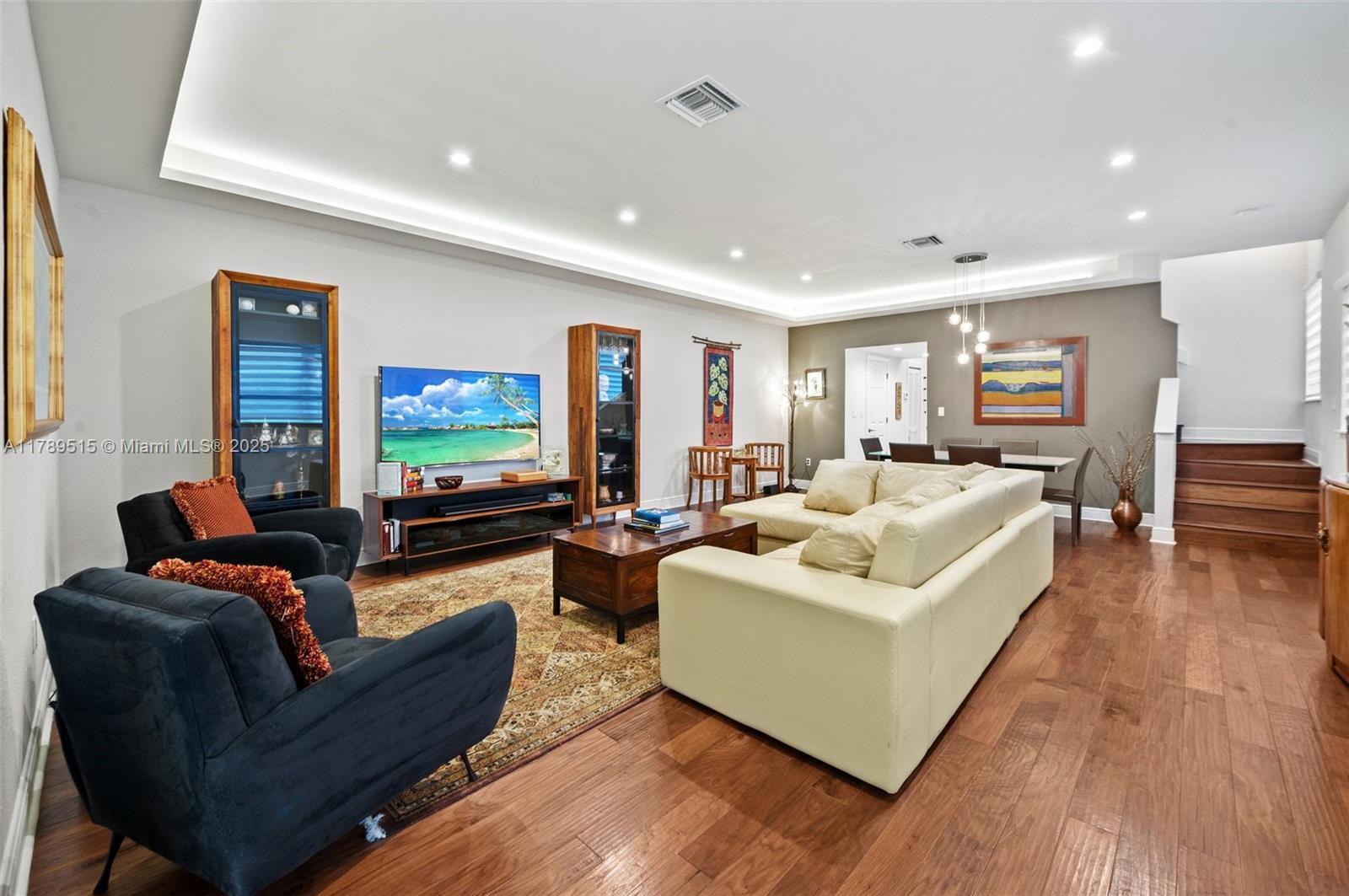 Live in Center Coconut Grove steps from Coconut Grove elementary in this beautifully renovated, gated two story 3/2.5 townhome located on the ridge. Walk to restaurants, gyms, stores, parks, and marinas. Step inside to see the open living/dining room with beautiful soffit uplighting, powder room, a beautiful renovated open kitchen with a large island and airy family room. Wood/bamboo floors and zebra blinds throughout. Ceiling high French doors lead to a covered patio, wet bar and resurfaced pool with a turf deck. Serene landscaping. Upstairs find three bedrooms: a large primary bedroom and ensuite bathroom and two bedrooms with ensuite bathroom. Updates include impact doors & windows; security system; gate; new HVAC, washer/dryer; gutter; tankless water heater; and so much more.