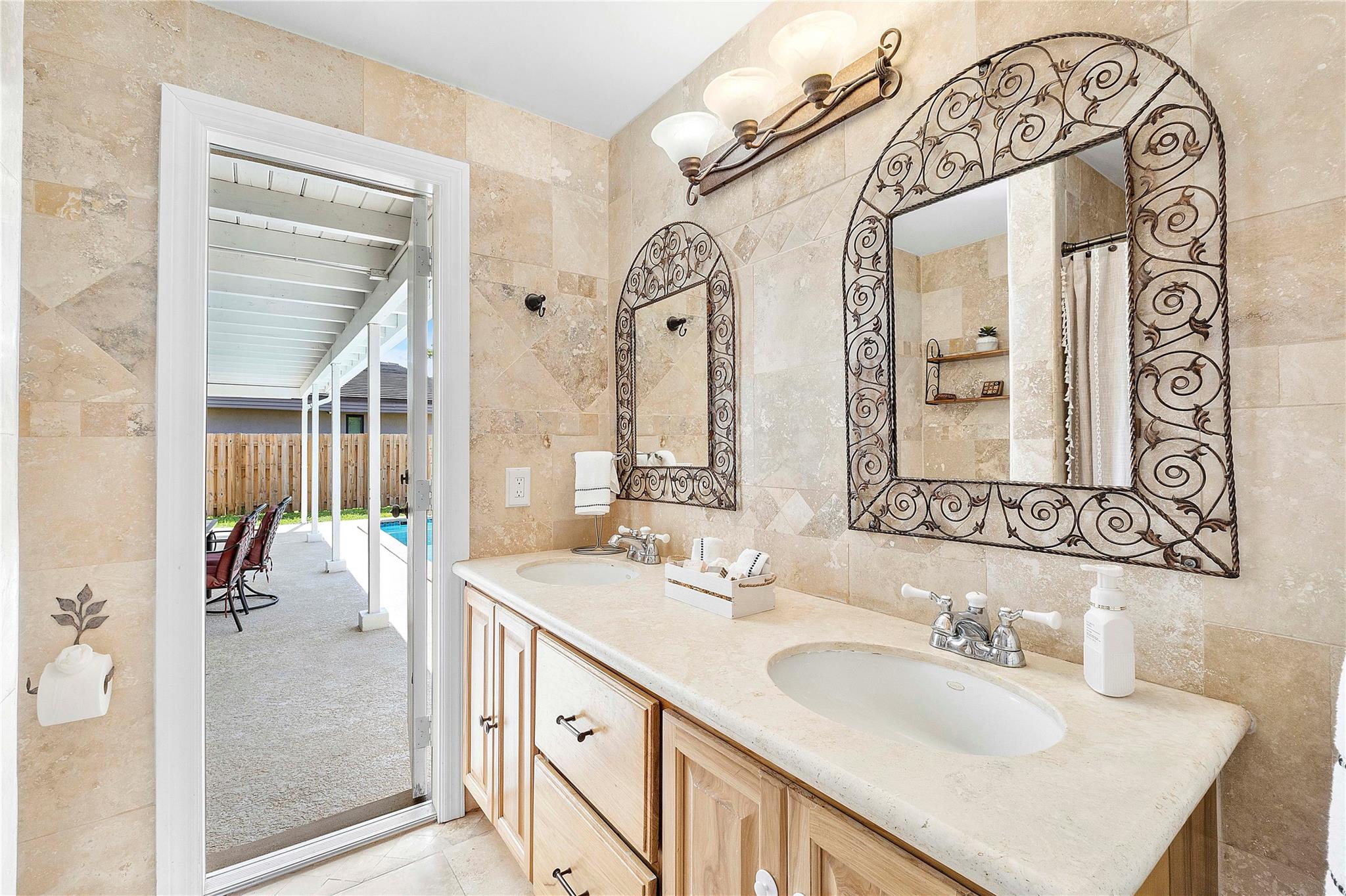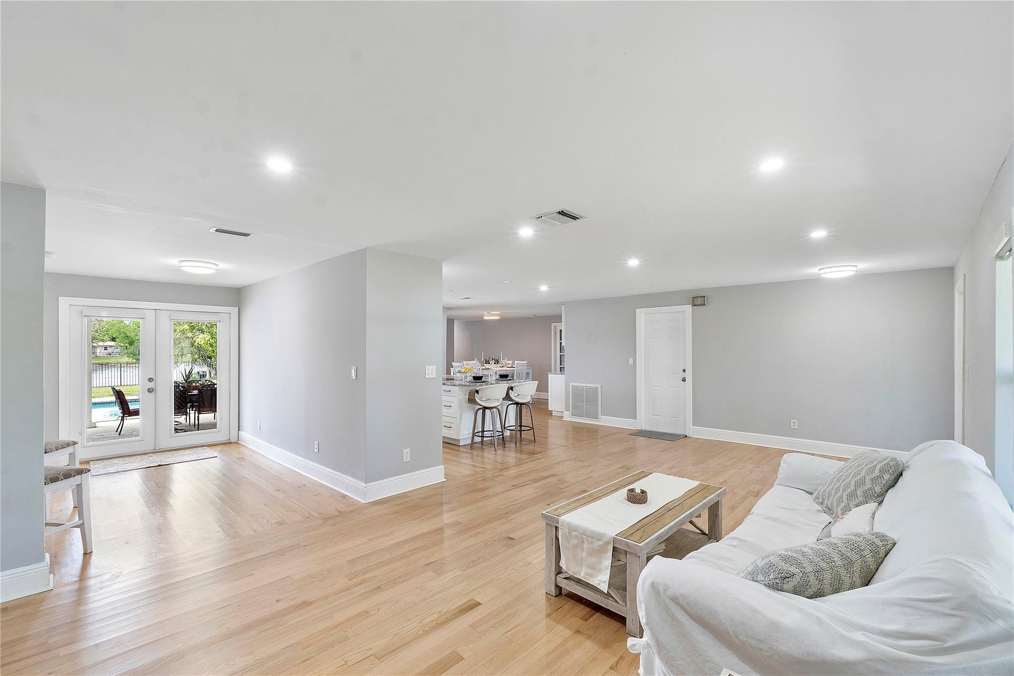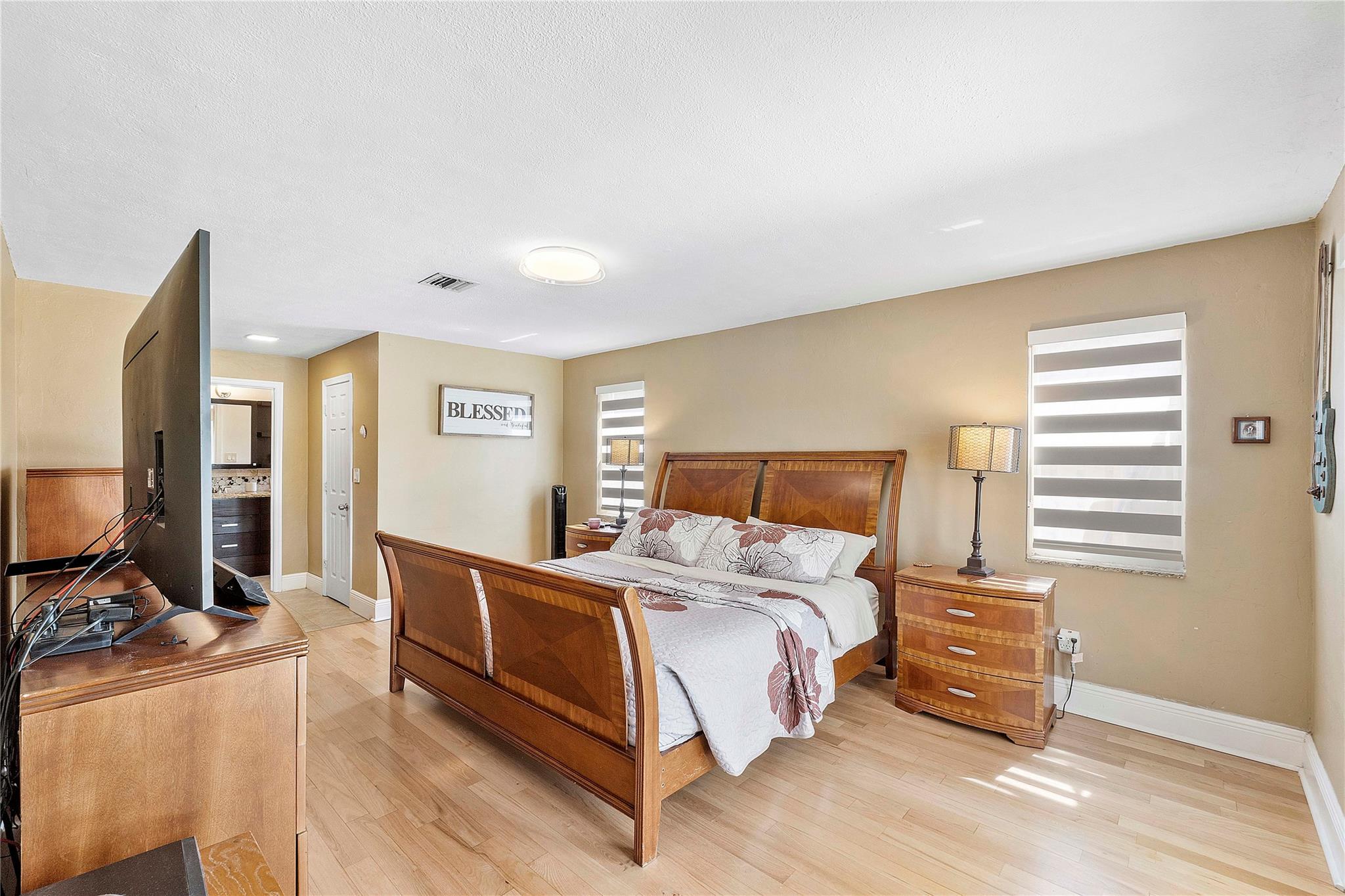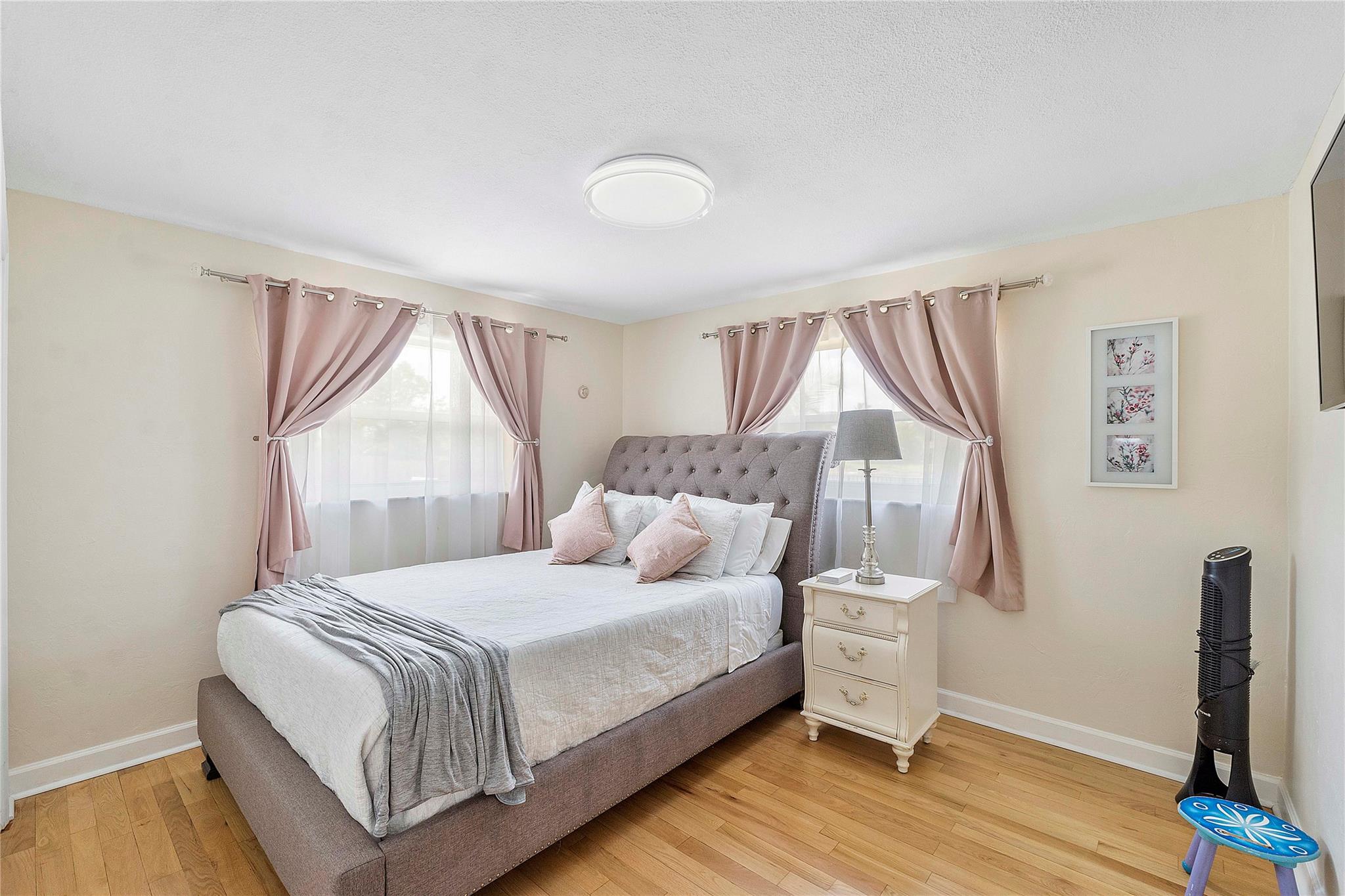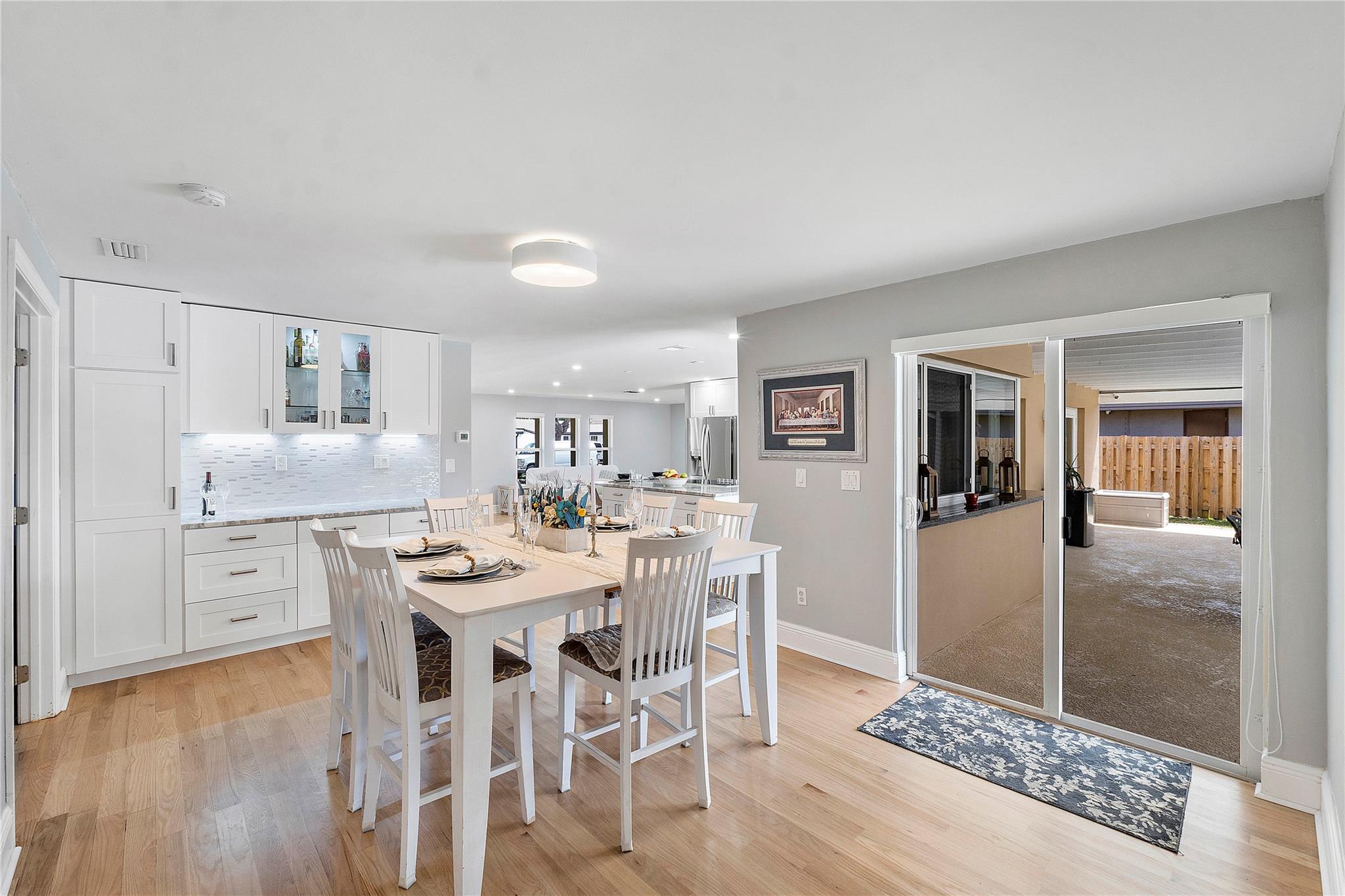Discover this stunning home featuring 5 spacious bedrooms and 2 modern bathrooms, living. Throughout the residence, beautiful hardwood floors add warmth and elegance. All impact windows and doors ensure safety and energy efficiency. The open floor plan creates a seamless flow between living spaces, highlighted by a large, updated kitchen equipped with new appliances, luxurious dolomite counters, a generous center island for cooking and gathering, and ample cabinet storage. The primary bedroom boasts a renovated bathroom with dual sinks and a jacuzzi tub/shower combination. Step outside to a fenced yard with a covered patio, ideal for outdoor entertaining. Enjoy a private pool and picturesque lake view, making this home a perfect oasis. Walk to School and Sports Complex