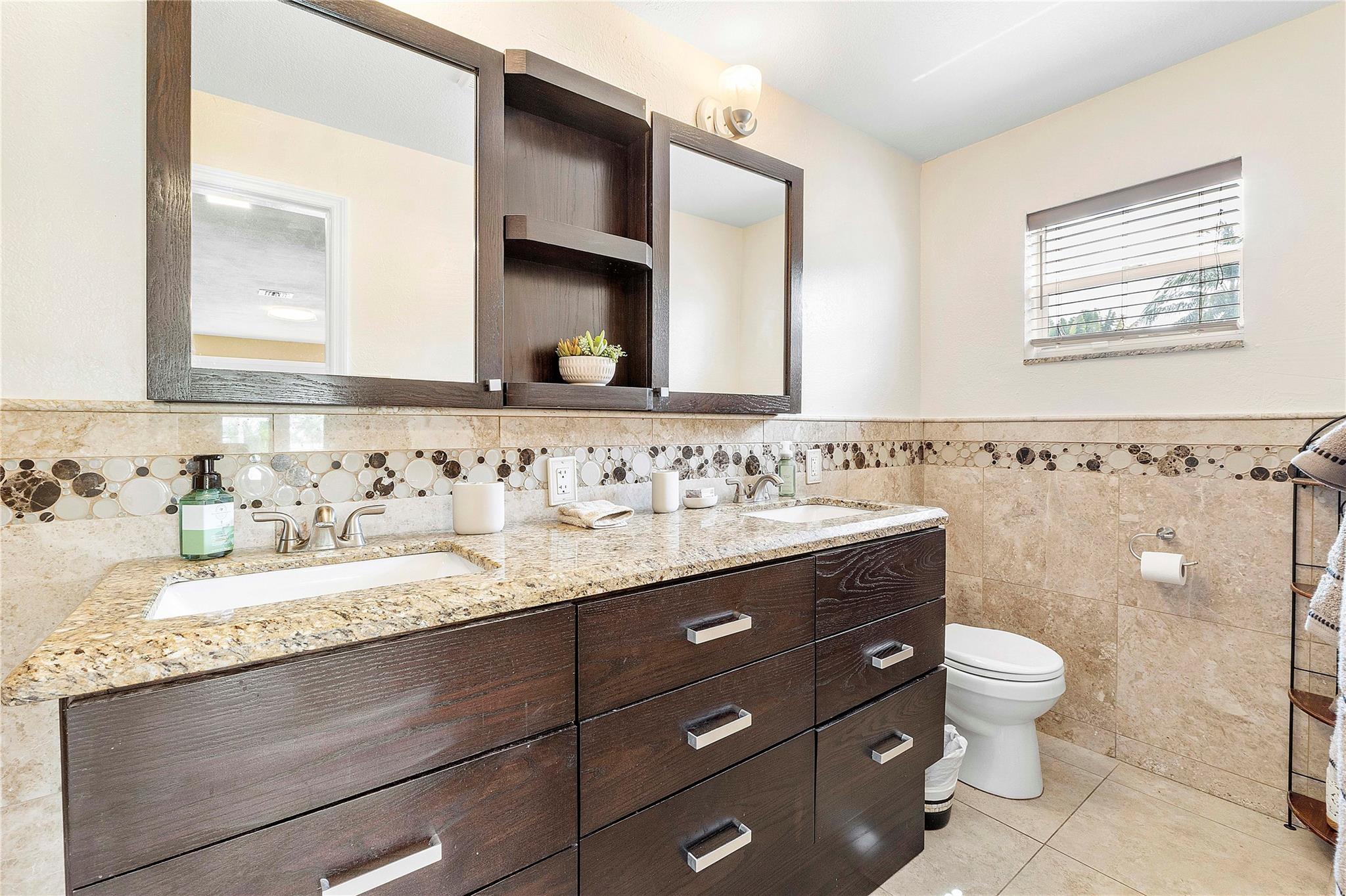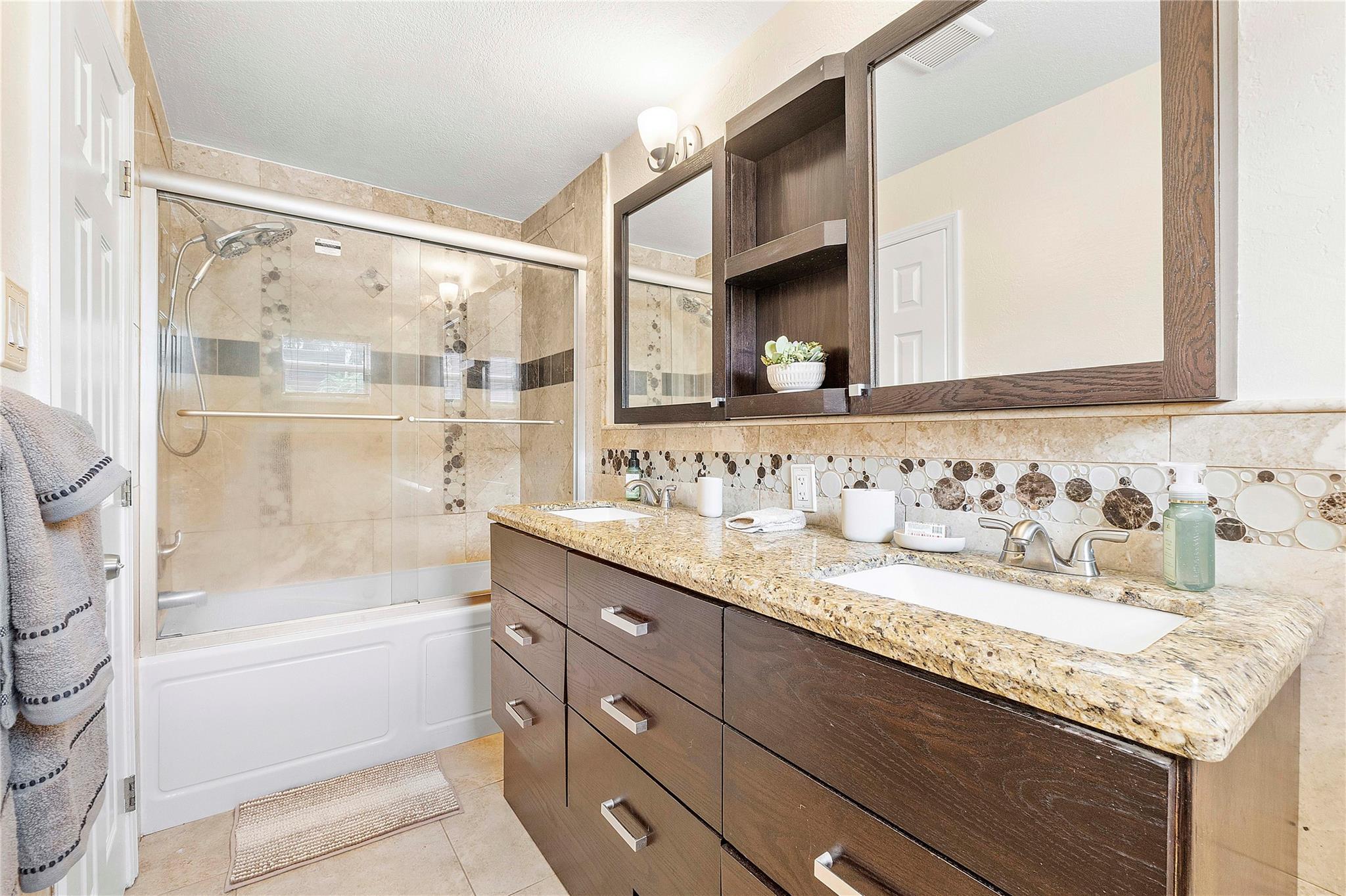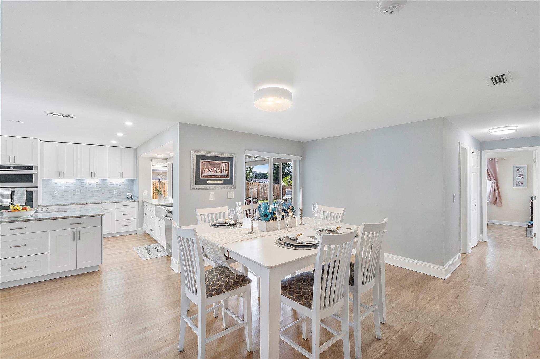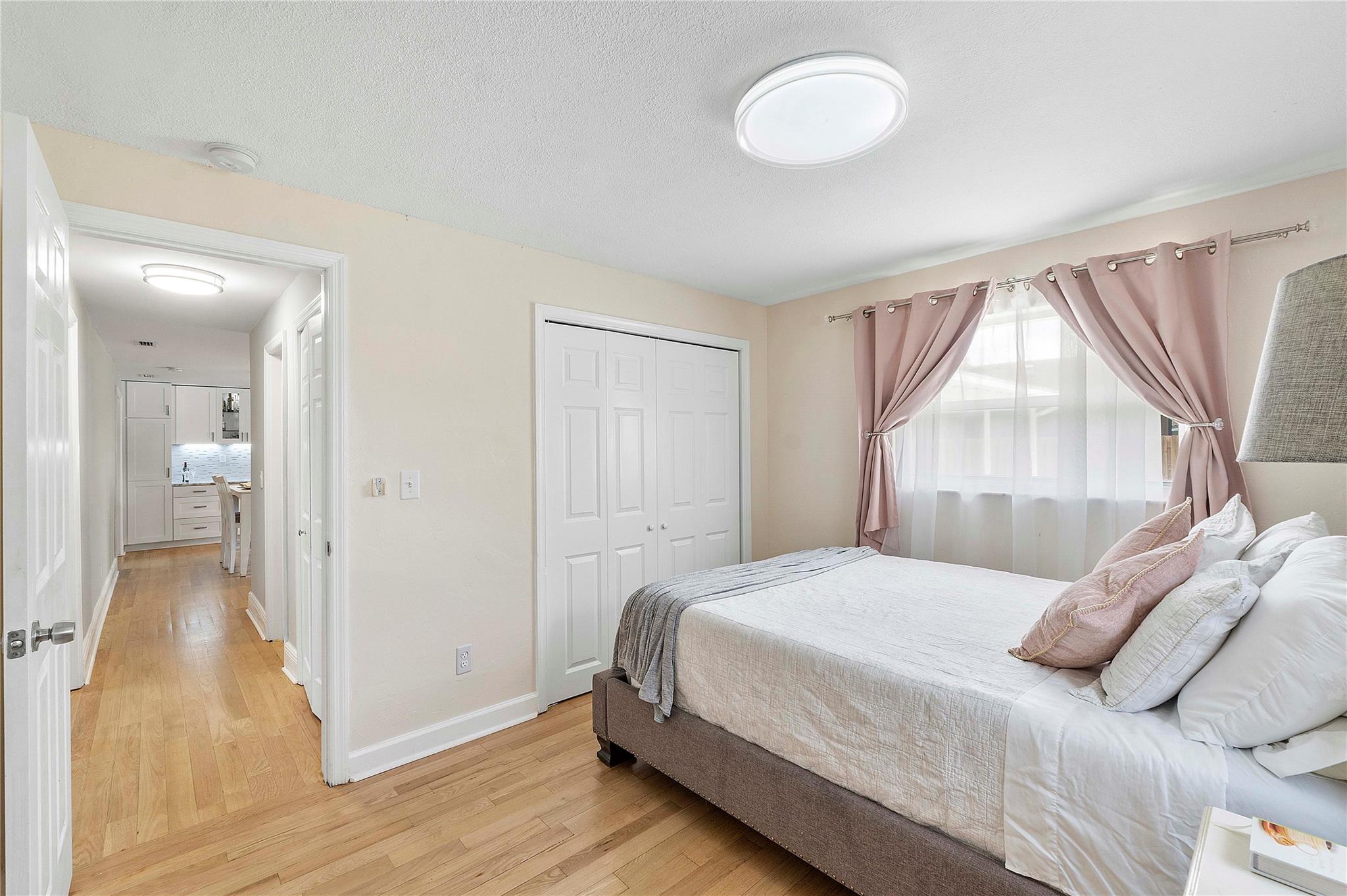 Discover this stunning home featuring 5 spacious bedrooms and 2 modern bathrooms, living. Throughout the residence, beautiful hardwood floors add warmth and elegance. All impact windows and doors ensure safety and energy efficiency. The open floor plan creates a seamless flow between living spaces, highlighted by a large, updated kitchen equipped with new appliances, luxurious dolomite counters, a generous center island for cooking and gathering, and ample cabinet storage. The primary bedroom boasts a renovated bathroom with dual sinks and a jacuzzi tub/shower combination. Step outside to a fenced yard with a covered patio, ideal for outdoor entertaining. Enjoy a private pool and picturesque lake view, making this home a perfect oasis. Walk to School and Sports Complex