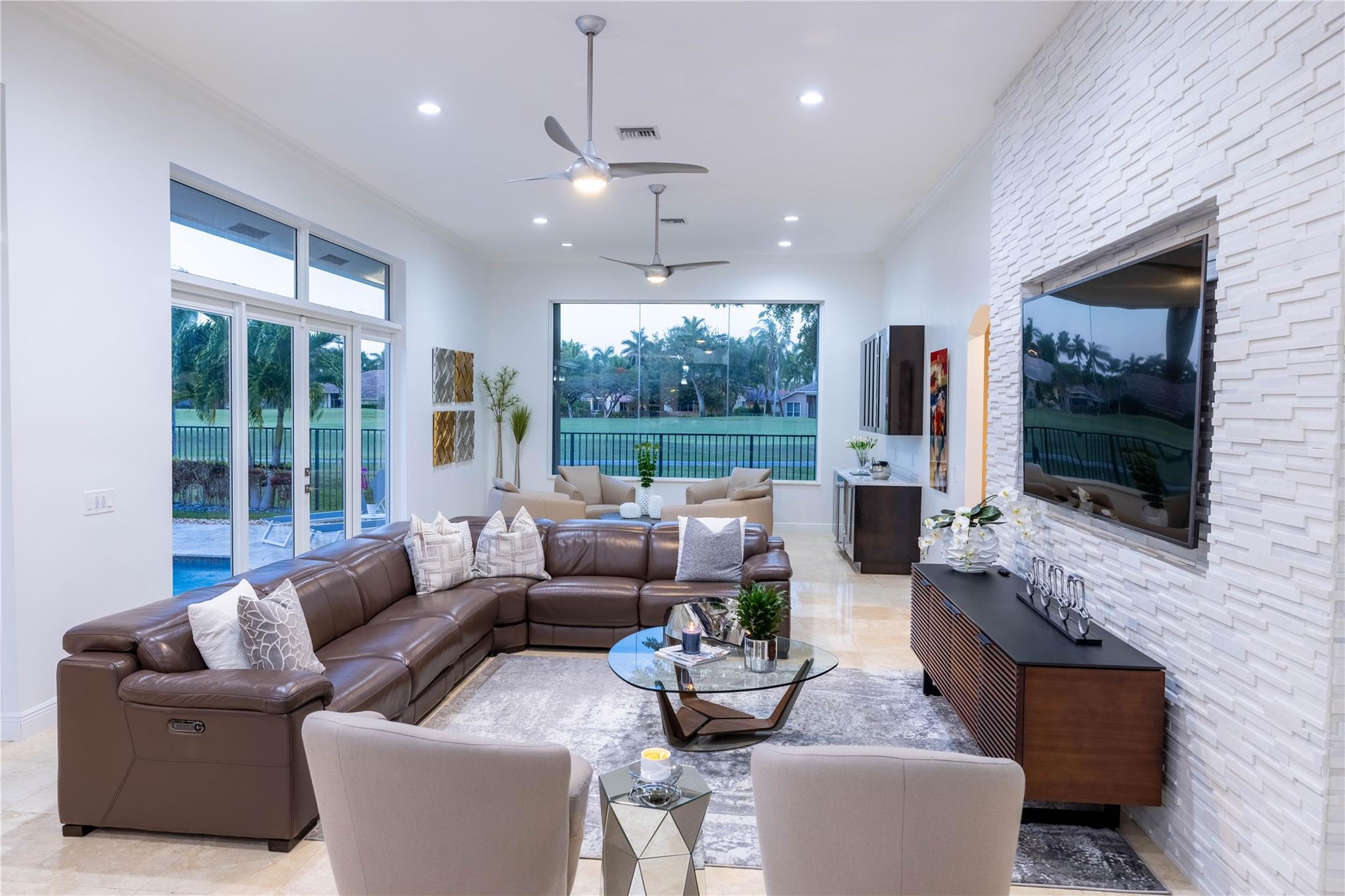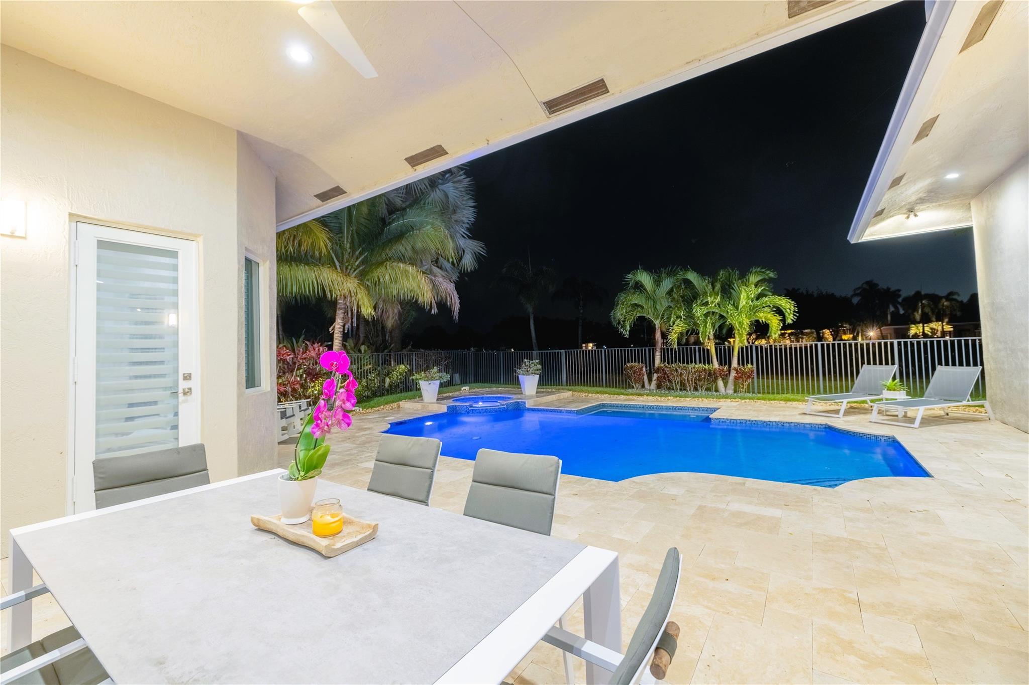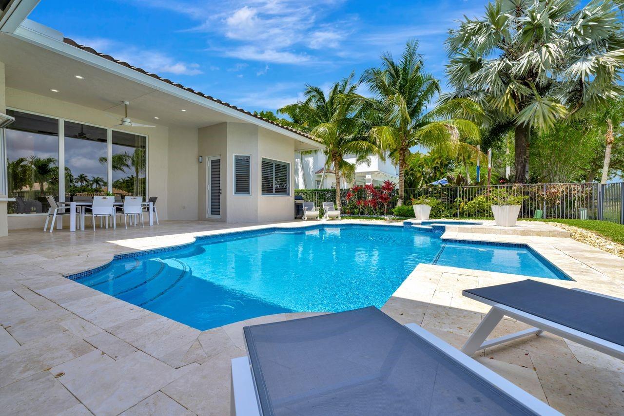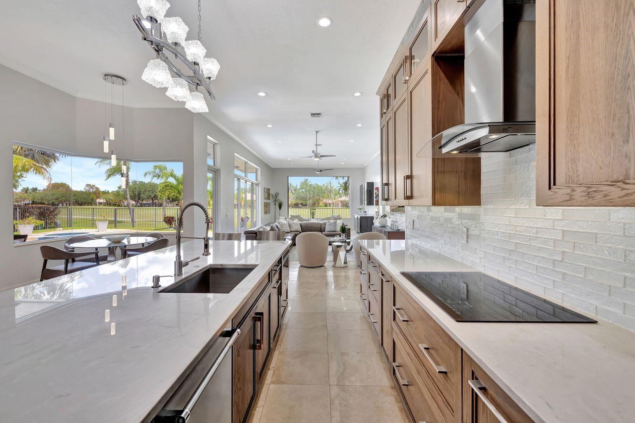 TEE TIME! Stunning, completely renovated, modern elegant 5BD+Den/4BA/3CG residence with new 2022 roof, all new impact glass, oversized heated salt-water pool with integrated spa & sun-shelf, travertine deck and sweeping golf views! Step inside to a luminous open concept interior bathed in natural light, highlighted by soaring ceilings & walls of glass that seamlessly blend indoor elegance with outdoor beauty. An expansive family room includes an extended entertainment lounge with custom built-in bar, framed by huge windows with spectacular golf views! From the state-of-art kitchen straight out of a design magazine, to the sleek spa-inspired primary bathroom, to exquisite custom lighting, every feature has been meticulously designed for both comfort and luxury. Welcome home to Weston Hills!