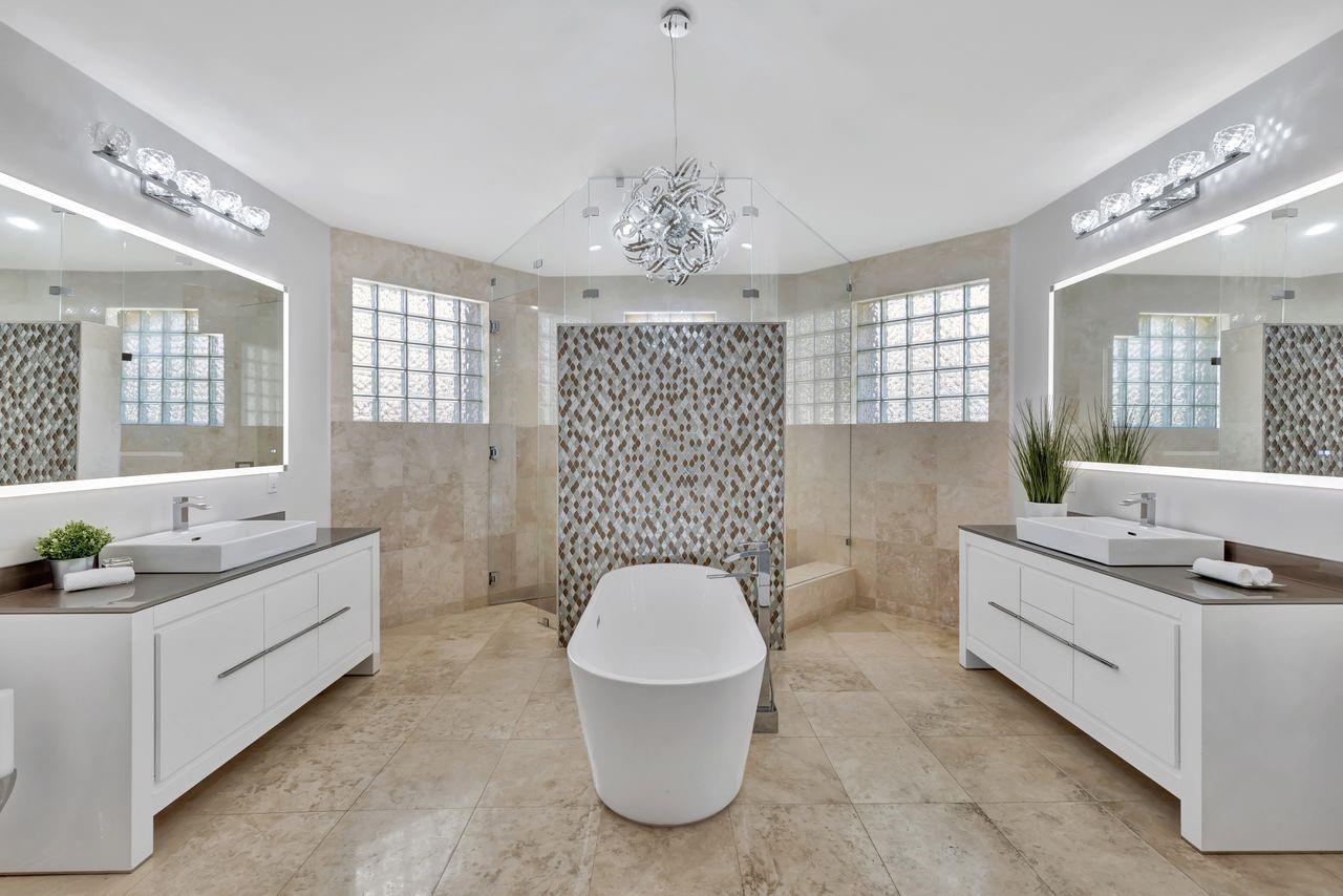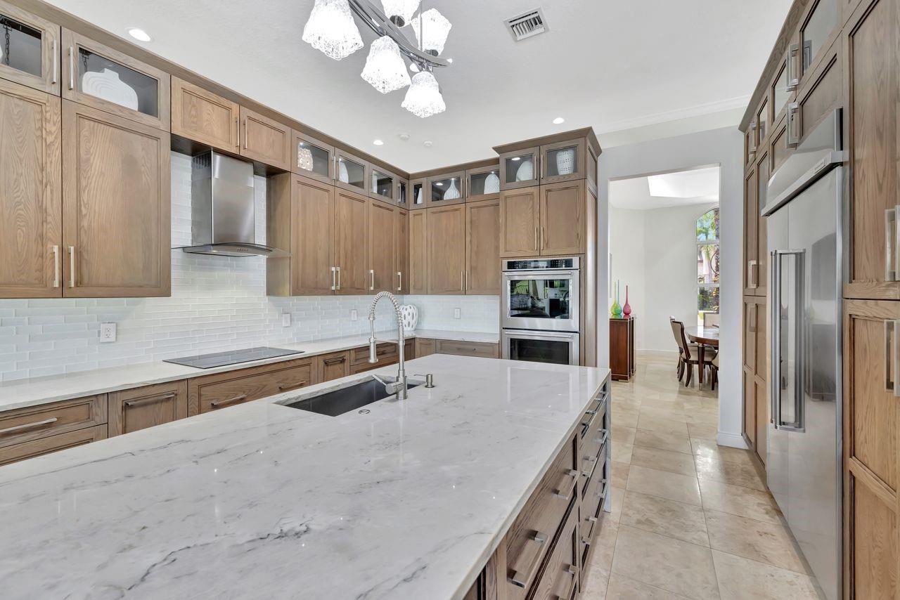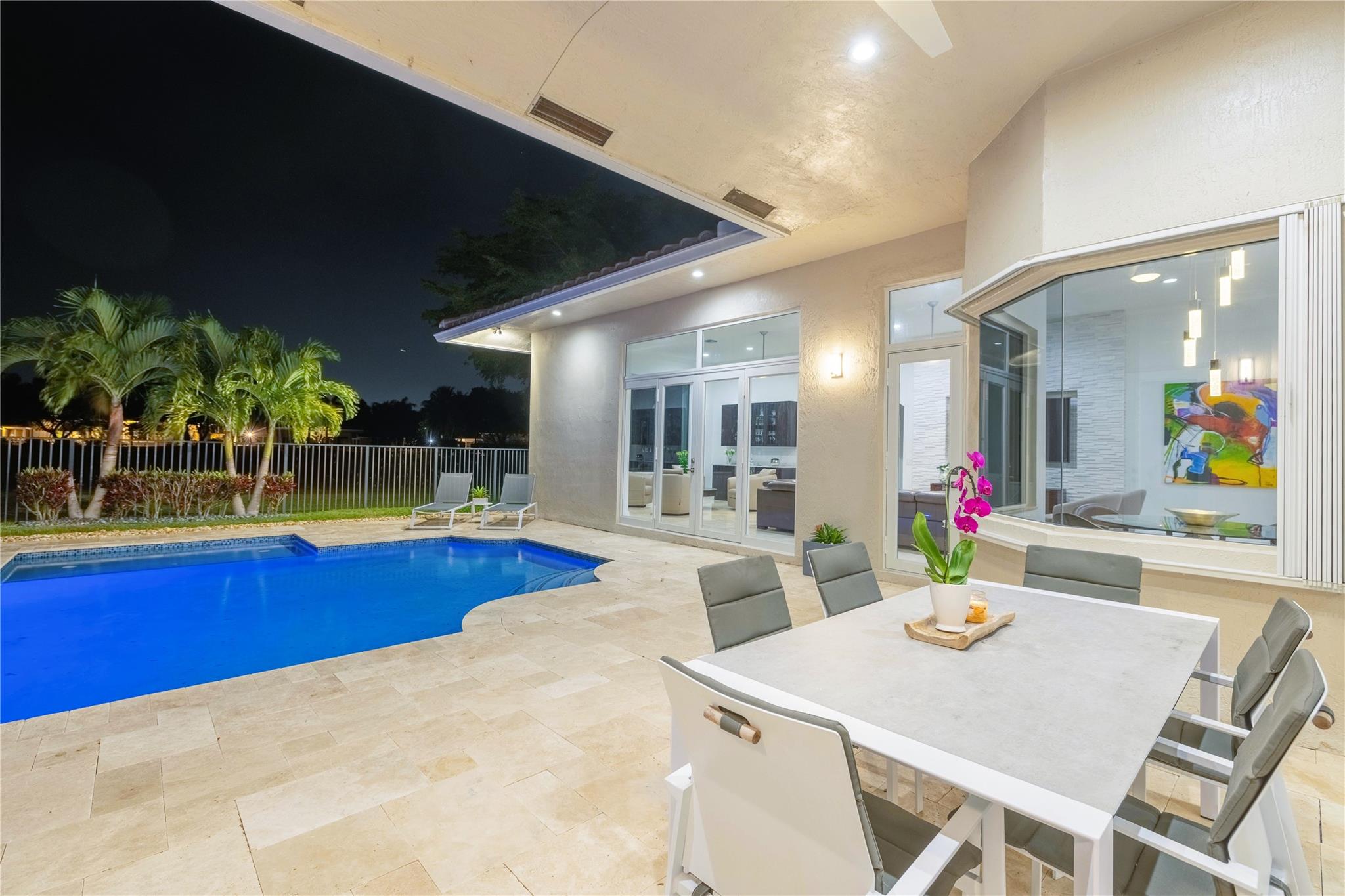 TEE TIME! Stunning, completely renovated, modern elegant 5BD+Den/4BA/3CG residence with new 2022 roof, all new impact glass, oversized heated salt-water pool with integrated spa & sun-shelf, travertine deck and sweeping golf views! Step inside to a luminous open concept interior bathed in natural light, highlighted by soaring ceilings & walls of glass that seamlessly blend indoor elegance with outdoor beauty. An expansive family room includes an extended entertainment lounge with custom built-in bar, framed by huge windows with spectacular golf views! From the state-of-art kitchen straight out of a design magazine, to the sleek spa-inspired primary bathroom, to exquisite custom lighting, every feature has been meticulously designed for both comfort and luxury. Welcome home to Weston Hills!