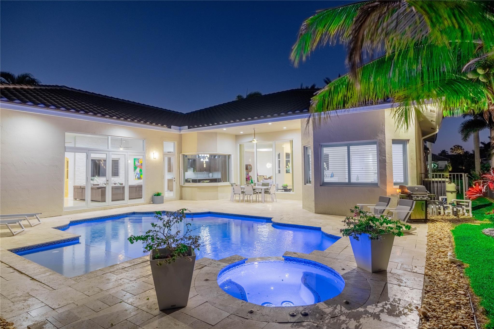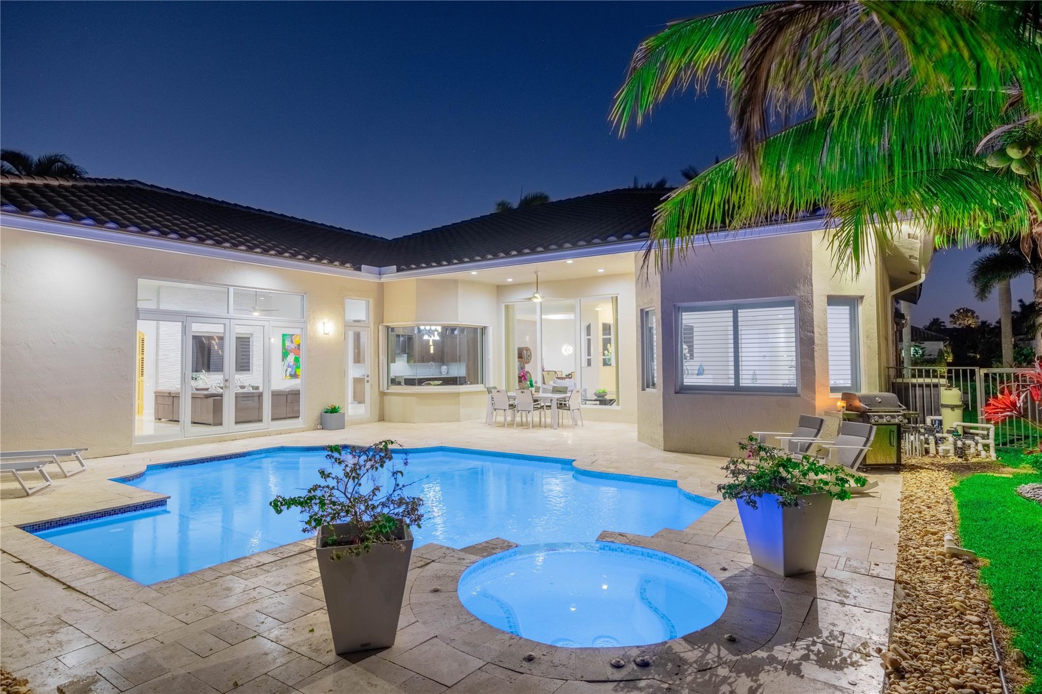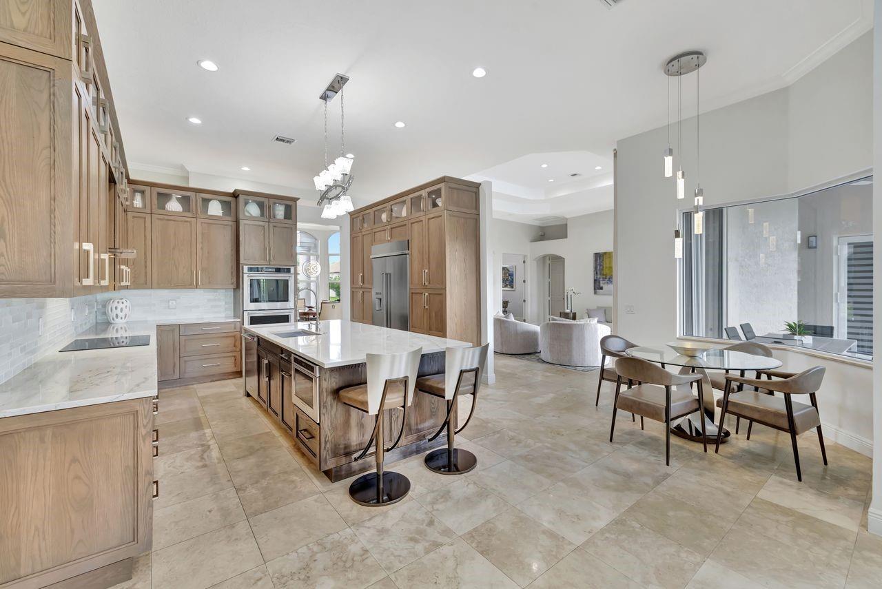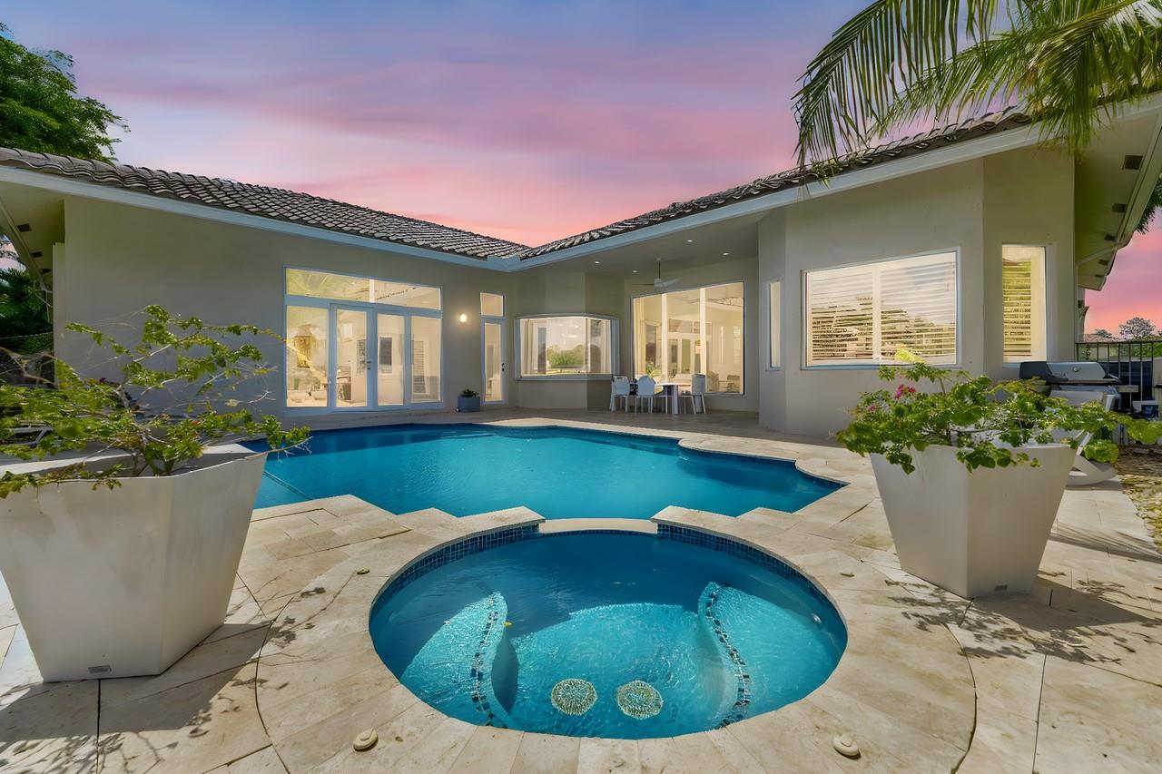 TEE TIME! Stunning, completely renovated, modern elegant 5BD+Den/4BA/3CG residence with new 2022 roof, all new impact glass, oversized heated salt-water pool with integrated spa & sun-shelf, travertine deck and sweeping golf views! Step inside to a luminous open concept interior bathed in natural light, highlighted by soaring ceilings & walls of glass that seamlessly blend indoor elegance with outdoor beauty. An expansive family room includes an extended entertainment lounge with custom built-in bar, framed by huge windows with spectacular golf views! From the state-of-art kitchen straight out of a design magazine, to the sleek spa-inspired primary bathroom, to exquisite custom lighting, every feature has been meticulously designed for both comfort and luxury. Welcome home to Weston Hills!