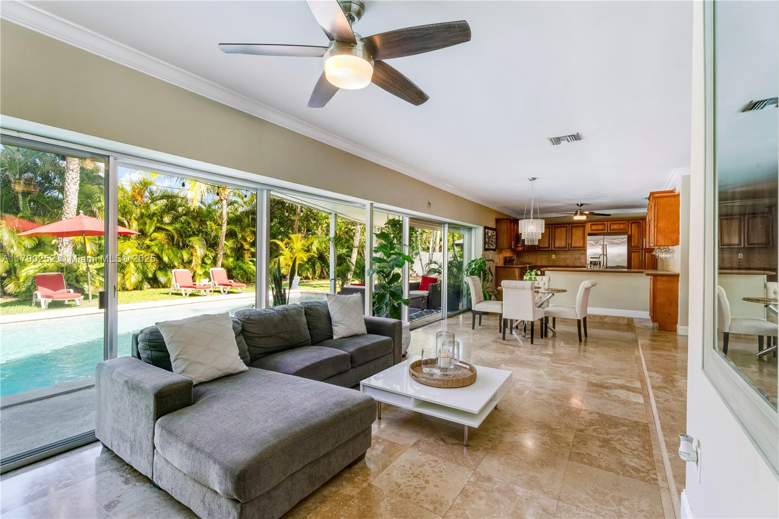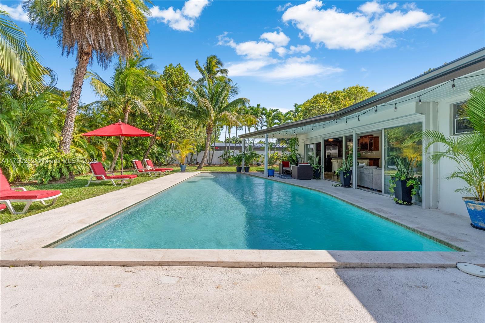 Adorable and Rarely Available South Pinecrest Gem! Lovingly maintained, light, bright, and located steps away from Palmetto Elementary & Middle Schools. A spacious, open-concept living, dining, and family room welcomes you to this light-filled 3-bedroom, 2-bathroom home, featuring oversized pocket sliding doors that seamlessly blend the outside with the indoors. The eat-in kitchen opens to a family room overlooking the beautiful resort-style pool, and a fantastic, lushly landscaped backyard perfect for indoor/outdoor living, entertaining, and enjoyment. The garage has been converted to a 4th bedroom/office area, but can be easily converted back. Move right into this special Pinecrest home and start enjoying this sought-after neighborhood and South Florida living at its best!