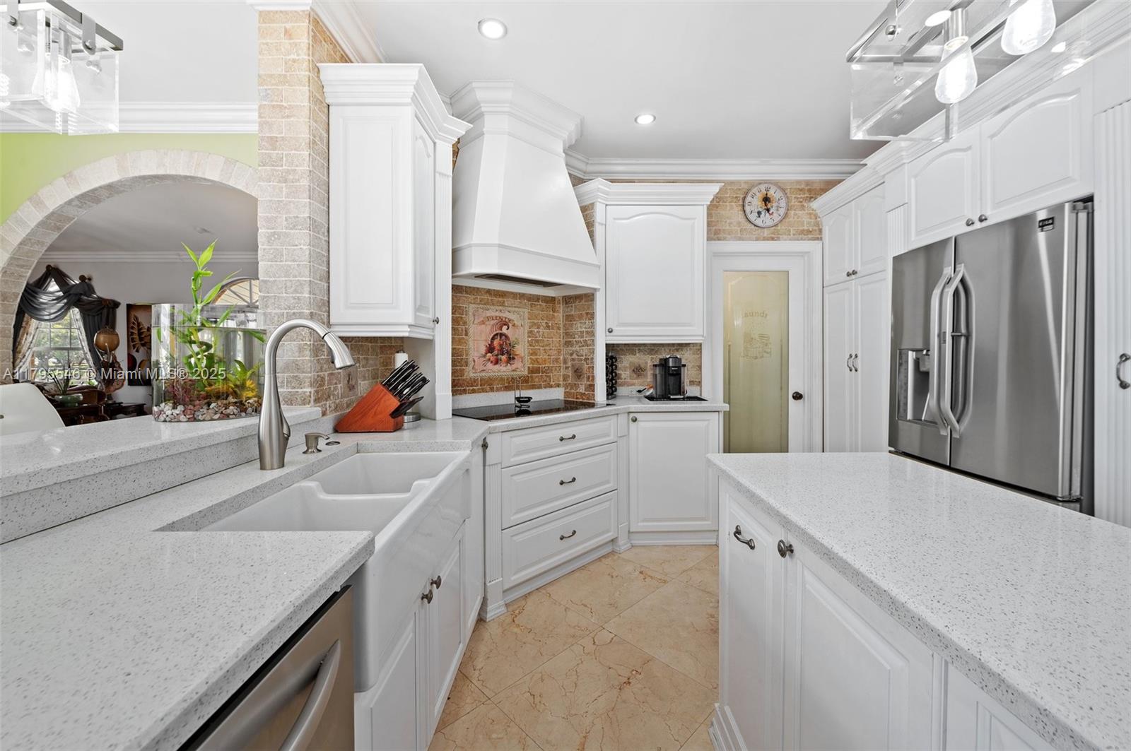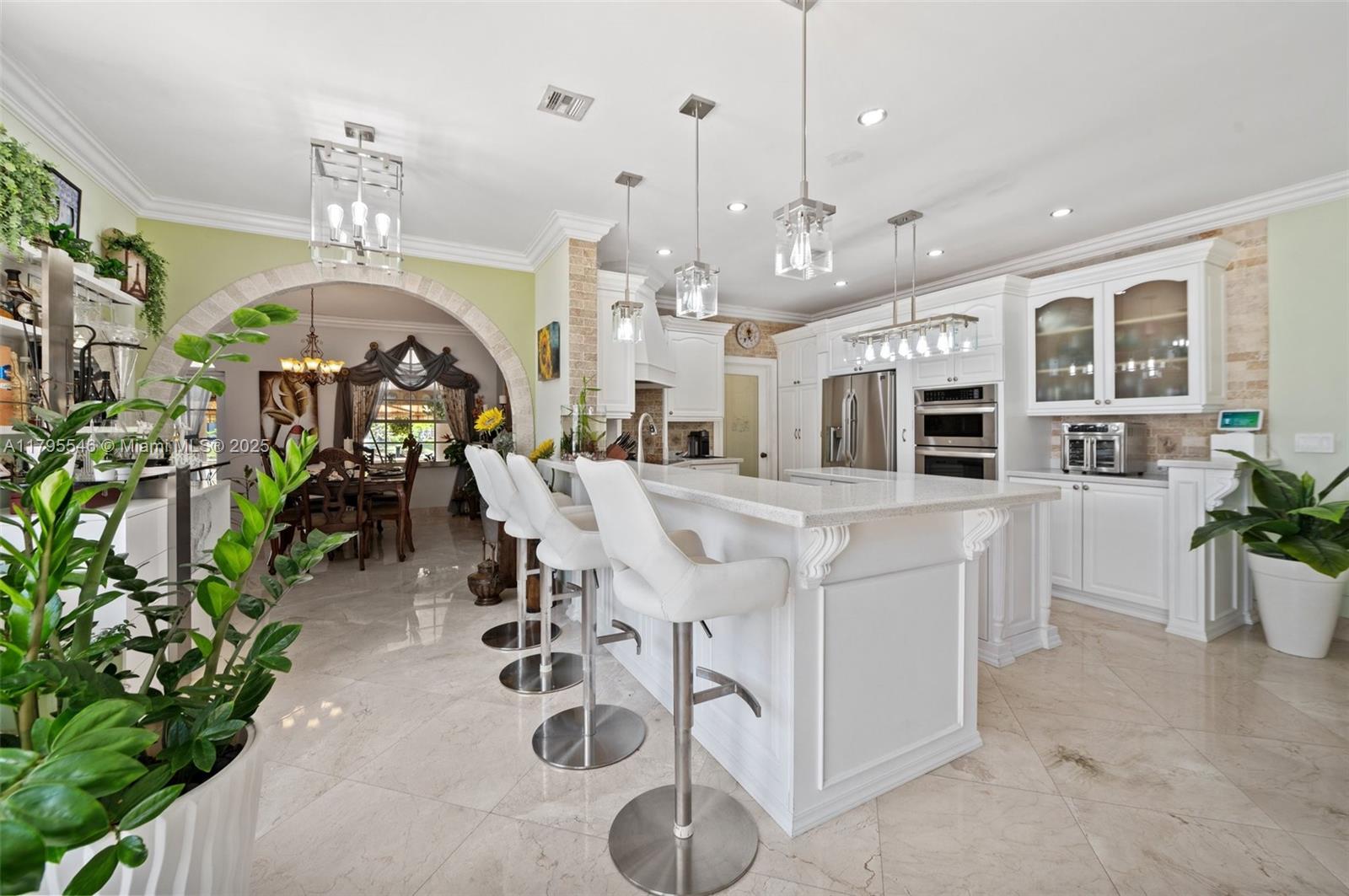 PRICE IMPROVEMENT! SELLER MOTIVATED ! A Peaceful View Awaits!Come relax in this beautifully remodeled 4-bedroom,3.5-bath courtyard home in the exclusive Classic Vista community.This unique residence features marble floors,quartz countertops, upgraded cabinetry,crown molding & a chef’s island perfect for culinary creations.The home includes a versatile guest room that can also serve as a home office,remodeled bathrooms & an amazing covered terrace with a full outdoor kitchen,complete with a gas stove & everything you need to entertain in style.The spacious main bedroom offers a large retreat area and an oversized walk-in shower.Turn on the spa, take in the peaceful view, enjoy your own private paradise.Come soon, don’t miss your chance to own it.