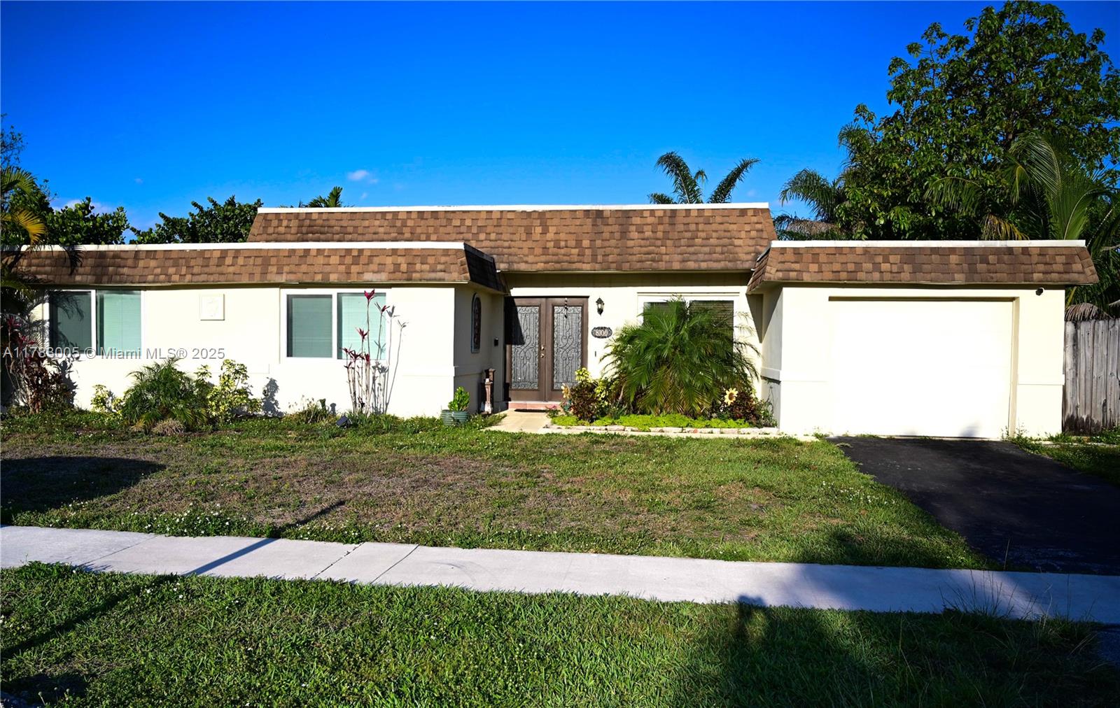 This 3-bed, 2-bath home with a den that can be easily converted into a 4th bedroom. Impact-resistant windows, vaulted ceilings, and a spacious open floor plan for today's living. Kitchen opens up to the dining room and family room with stainless steel appliances. Lots of storage throughout the home with large closets in each bedroom, walk-in closet in the master bedroom and two closets in the hallway. Spacious backyard with plenty of room for entertainment, a pool and fruit trees. Family friendly community near houses of worship, schools, shopping, restaurants and major roads. Property is being sold as is.