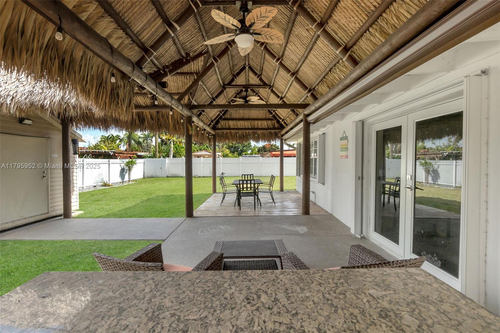 Charming 3-bed, 2-bath home in the heart of Hialeah! Featuring 1,327 SF of living space on a spacious 7,500 SF lot, this home offers an updated kitchen and baths, tile floors throughout, and a 2020 roof. Enjoy peace of mind with accordion shutters and impact French doors. Entertain under the Tiki hut-covered patio or in the expansive backyard. A modern concrete driveway provides ample parking. A perfect blend of comfort and style—don't miss this one!