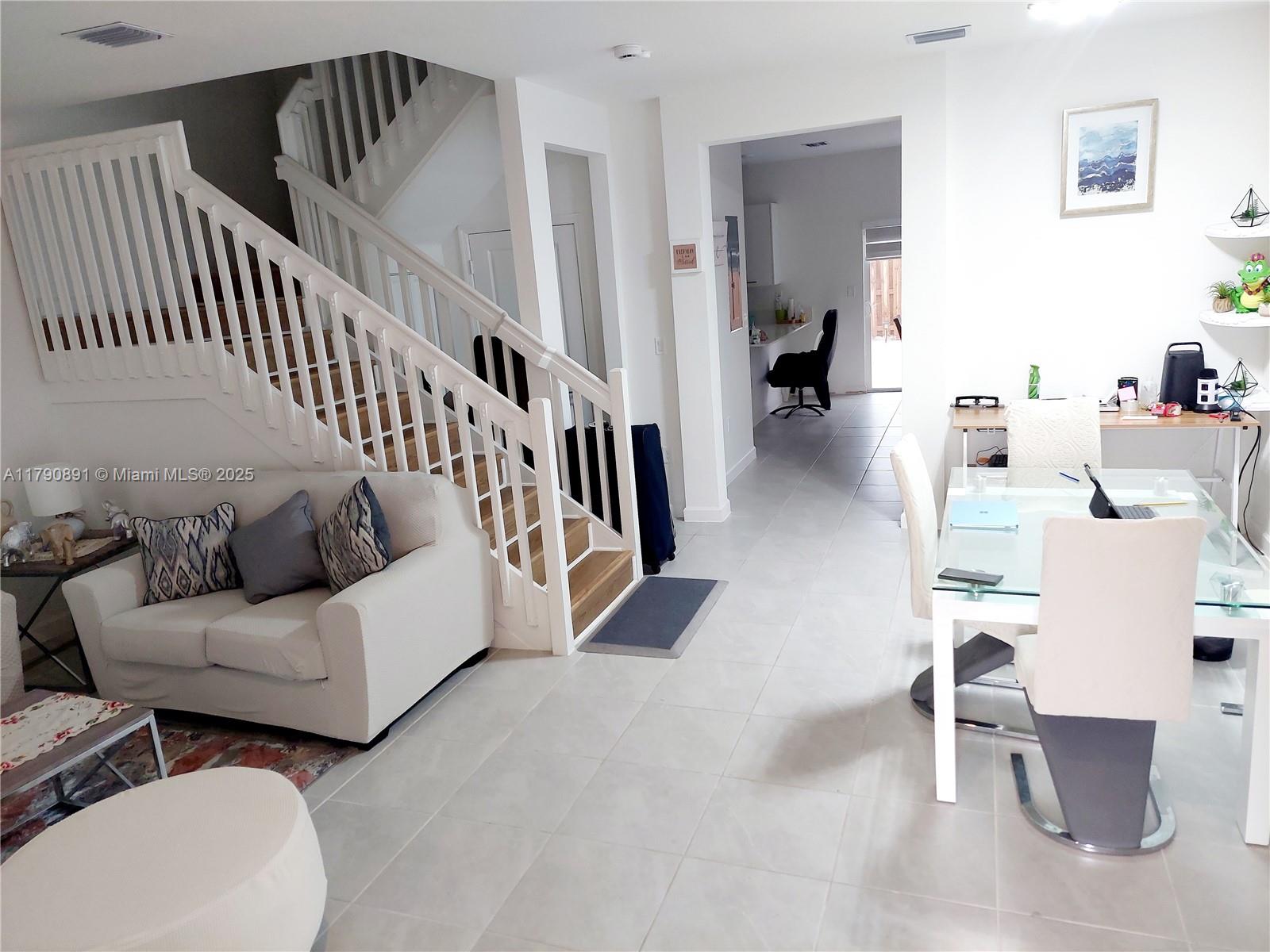 Spectacular Townhouse Located in a private and secure community. This townhouse has 3 bedrooms, 2.5 bathrooms with porcelain tile on the ground floor, Modern laminate flooring on the upper floor, washer and dryer in the apartment, It has a cozy independent living room, a modern open kitchen with a dining area overlooking the patio, kitchen and family area with all stainless steel appliances. Fully covered patio with tile. Only 2 cars allowed. Amenities include, clubhouse, swimming pool, gym, Jacuzzi, dog park, children's play park. Gated community with 24/7 security. Close to highways and shopping plazas, restaurants and more.A new construction for contemporary living.LOW HOA. Furniture and accessories are NOT included in the purchase price.