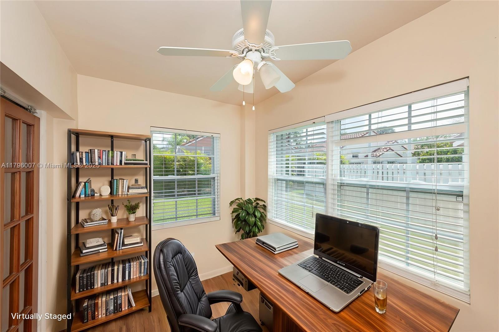 Now $715,000 Only $392/SF! Well-maintained 3BR/2.5BA + den/office in Bermuda Springs, Weston. This two-story layout offers over 1,825 SF under A/C on on a larger-than-average 5,686 SF lot. Primary bedroom with bathroom, den/officeand half bathroom on 1st floor, 2BRs and full bath upstairs. Screened patio, great layout, top-rated schools, near parks, community pool, and easy highway access. Upstairs big windows, corner windows, front/back doors & garage door are impact. Remaining windows have accordion shutters. Low HOA. Vacant & easy to show!