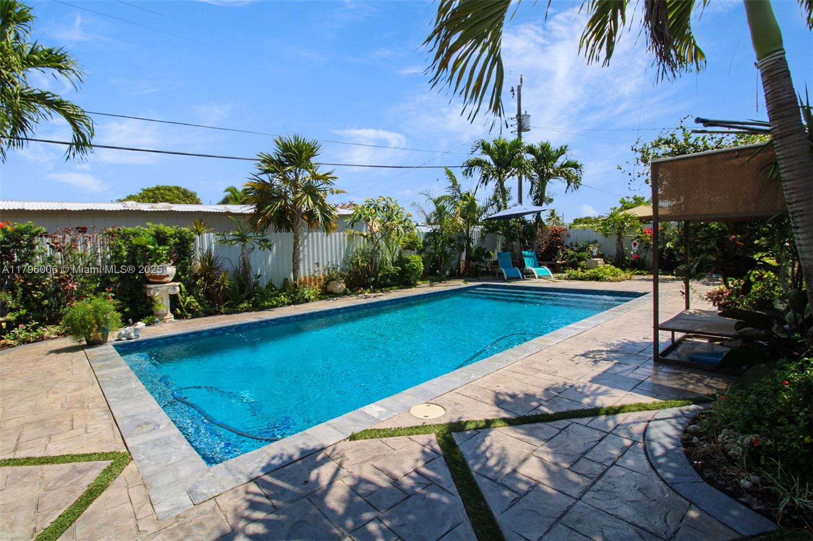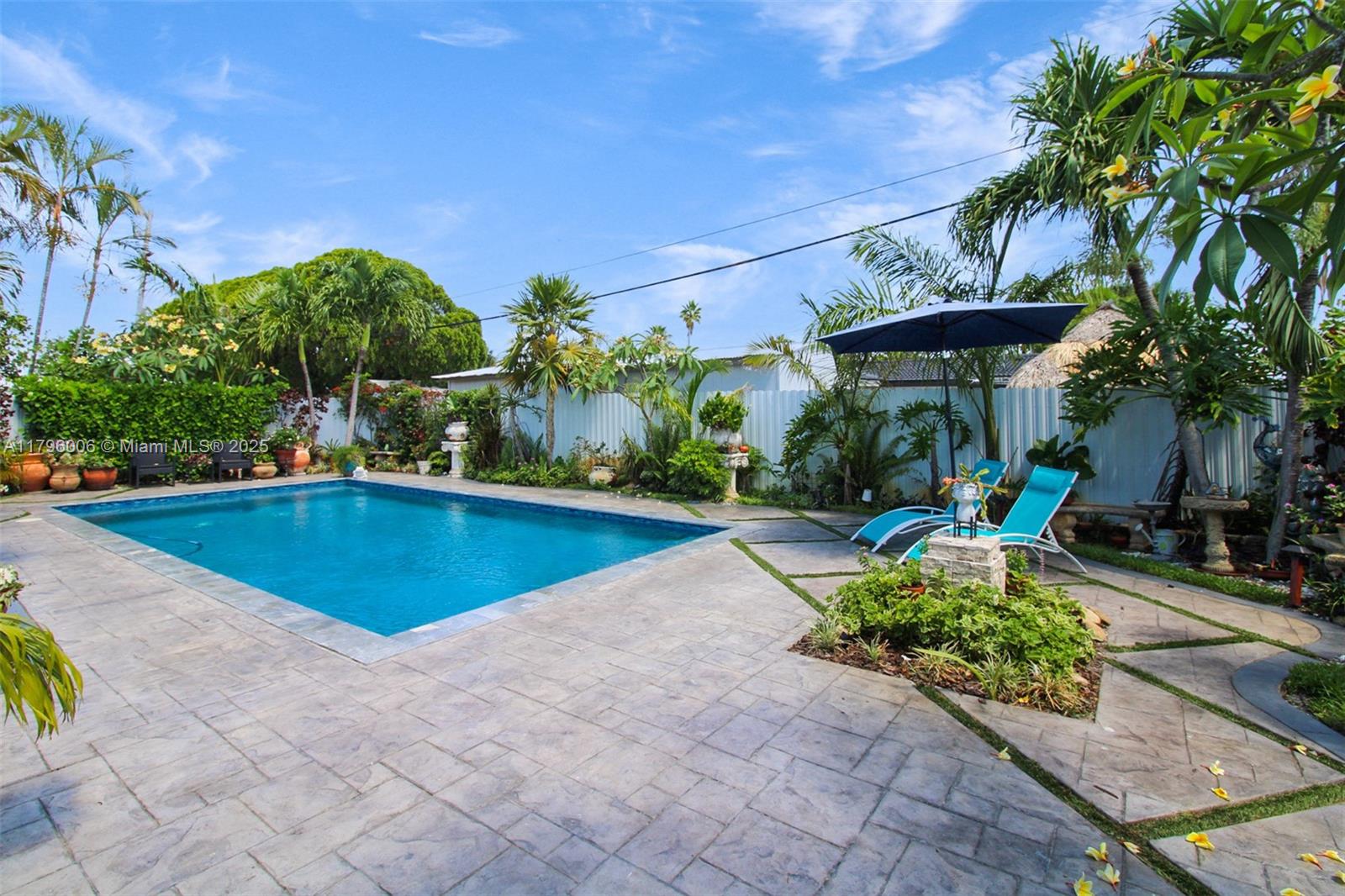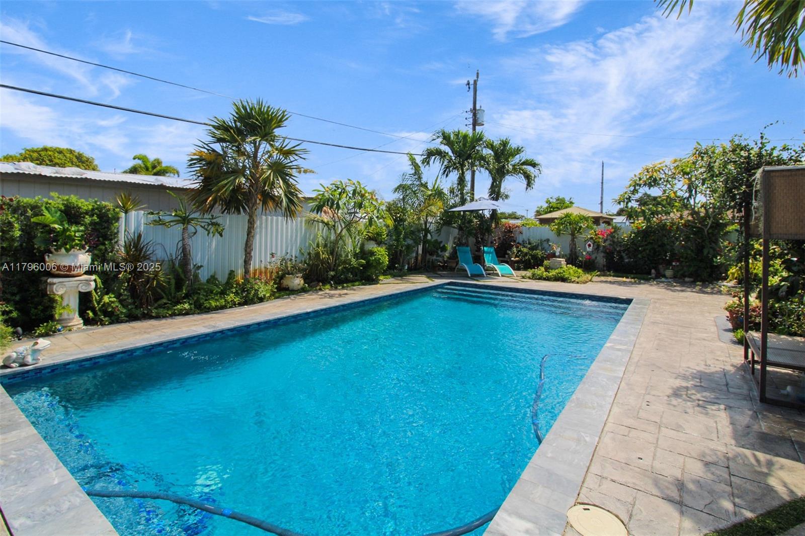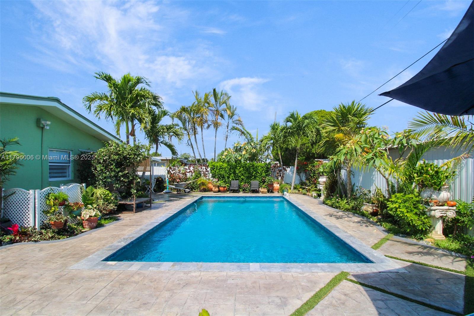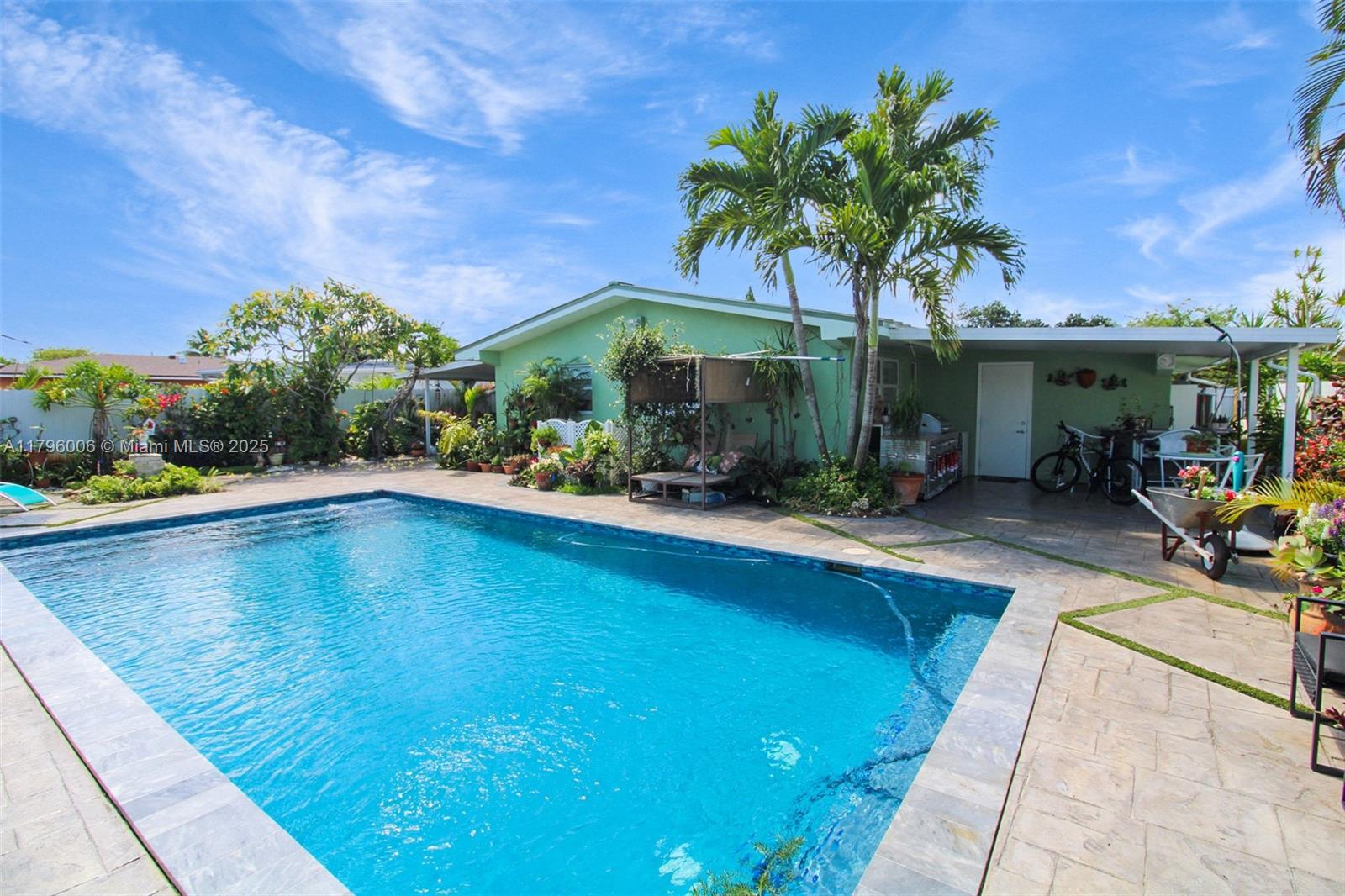 Situated in a tranquil neighborhood,this delightful residence features three bedrooms, two bathrooms,& a refreshing saltwater pool surrounded by lush greenery.Inside,you'll find an interior that has been tastefully updated,where contemporary comforts harmonize with classic elegance.The living spaces are filled with natural light,offering a cozy yet spacious ambiance, ideal for both unwinding & hosting guests.At the center of the home is the well-equipped kitchen,boasting modern appliances and abundant counter space for your cooking endeavors.Outside,the beautifully landscaped garden envelops the home,providing a stunning oasis perfect for outdoor relaxation & dining under the open sky.New Roof, new AC, bathrooms & Pool.Hurricane panels. Circular driveway & 1 car garage.Open House 5/10