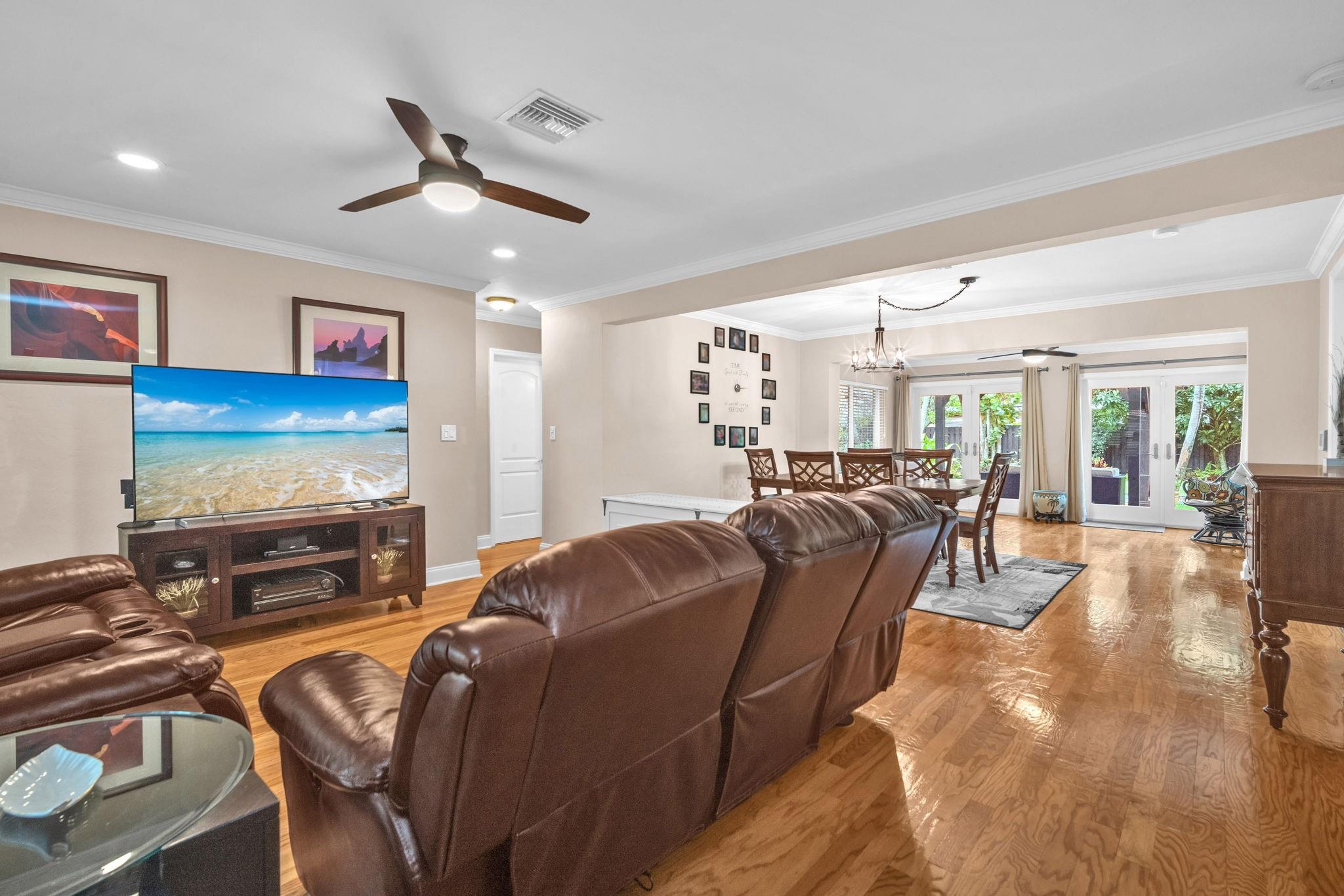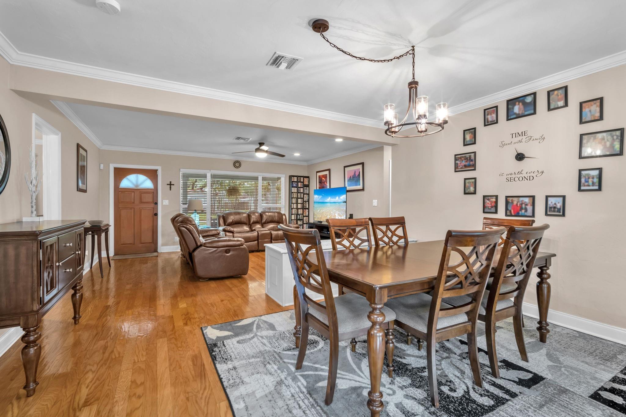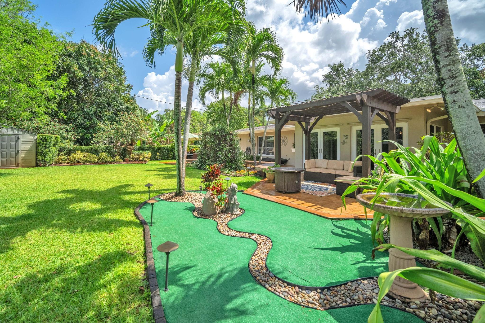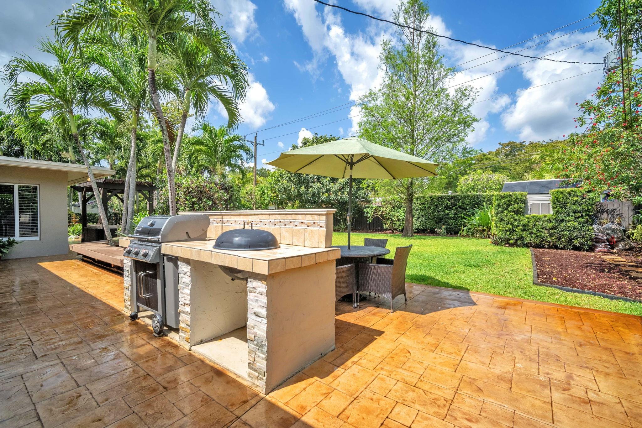 Welcome Home! This charming 3/2 home impeccably maintained with extensive updates is sure to please. Move-in ready including Impact windows and doors, all plumbing lines & electric panel etc. have been completed w/permits. Wood & laminate flooring, crown molding 5" baseboards custom closets and high-hat lighting are a few of the special touches that make this home outstanding. The updated kitchen W/quartz & SS overlooks the beautiful lighted tropical backyard oasis. Enjoy and relax under the tiki hut while dinners being prepared at the grilling station. Details include Roof 2018-AC 2015-remodels 2020-anchored storage shed-concrete walks and driveway w/built-in drainage-refinished garage floor-gas HWT-large interior laundry room w/wash basin & pantry closet. This home is a MUST SEE.