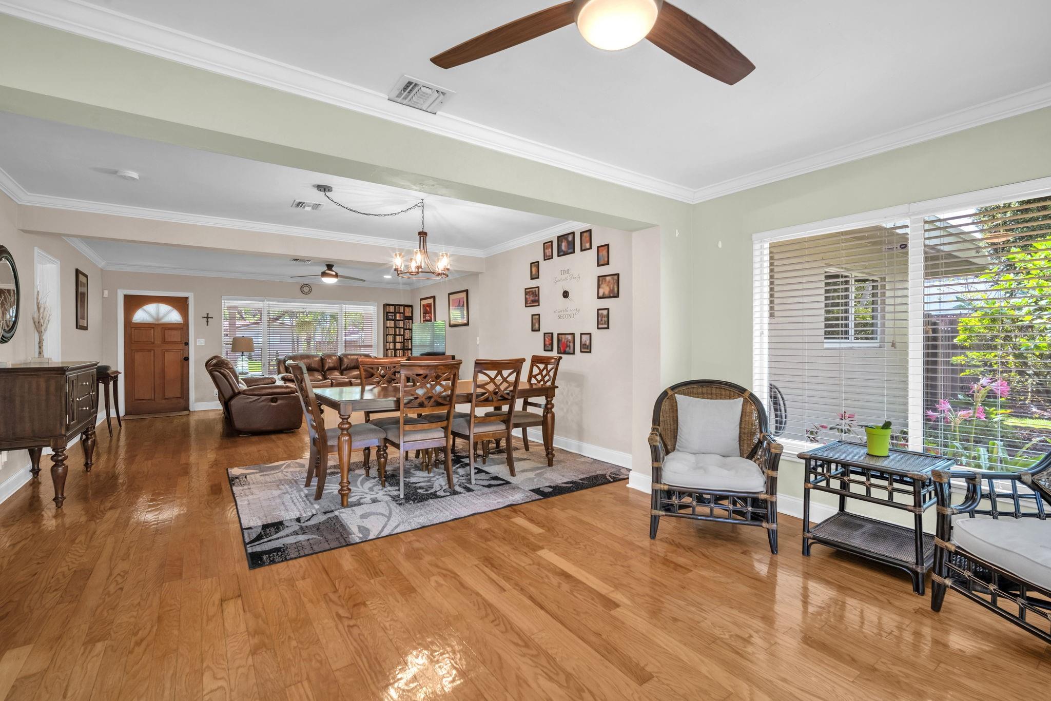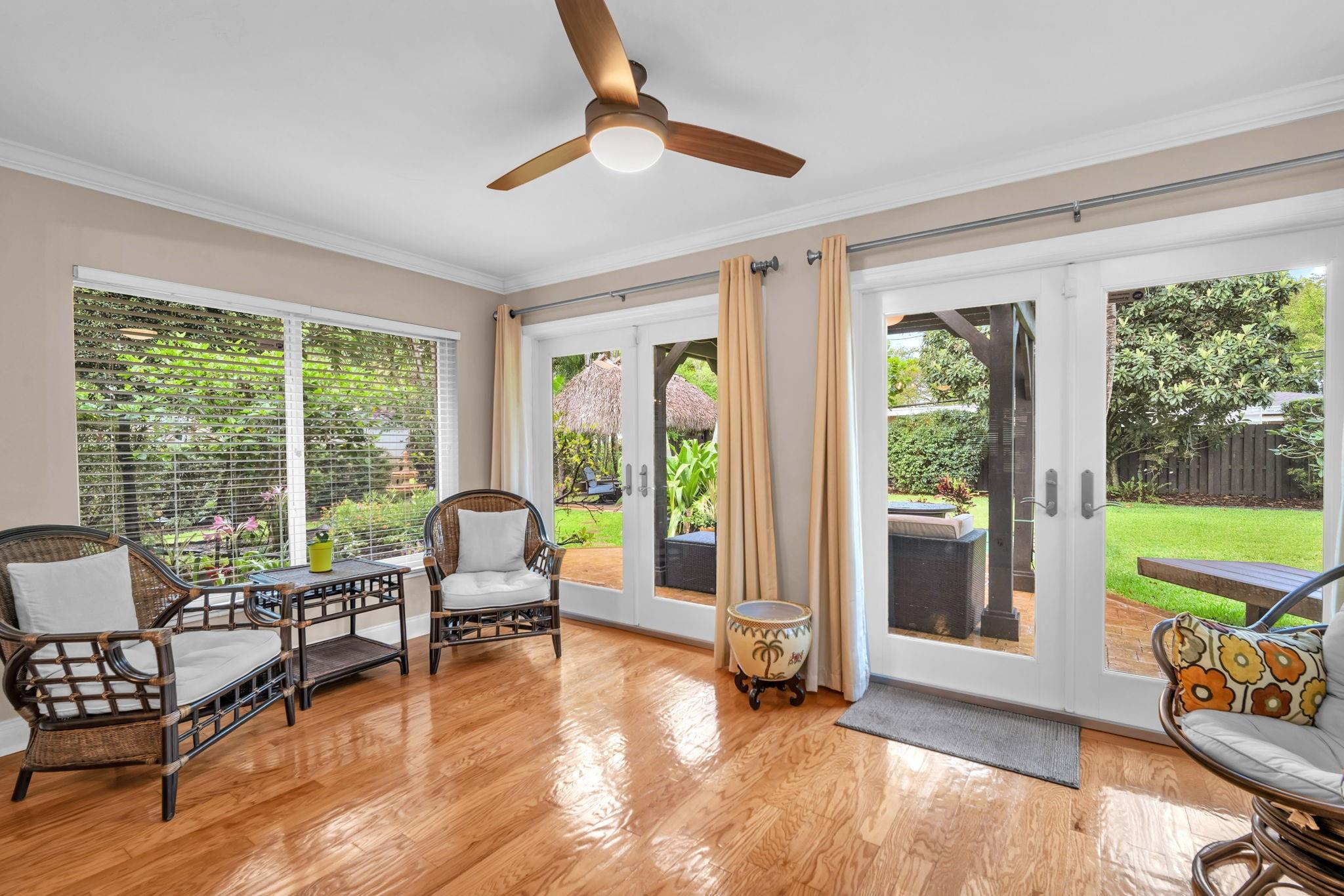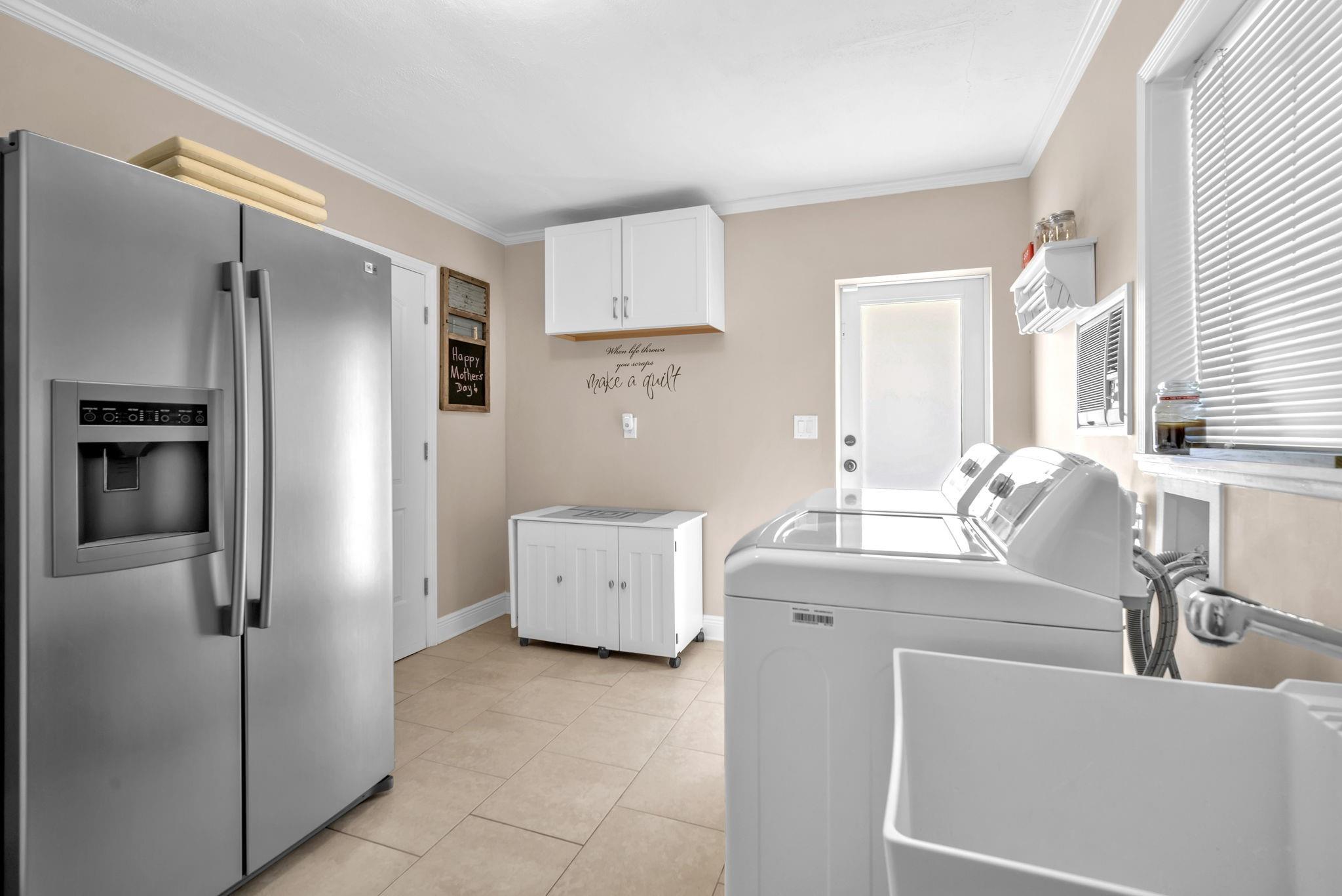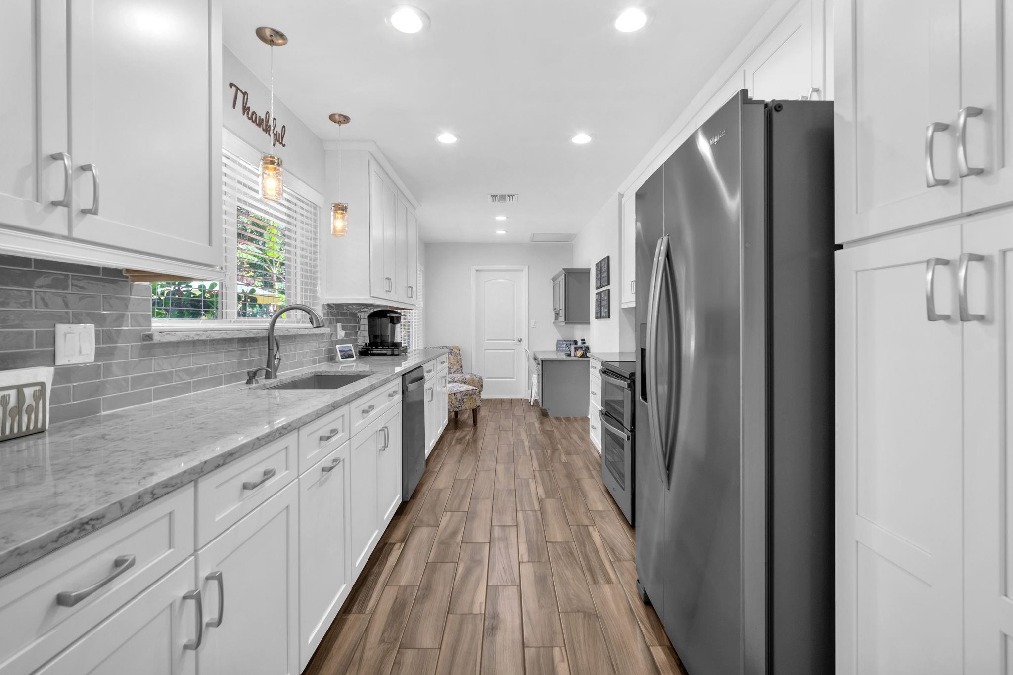 Welcome Home! This charming 3/2 home impeccably maintained with extensive updates is sure to please. Move-in ready including Impact windows and doors, all plumbing lines & electric panel etc. have been completed w/permits. Wood & laminate flooring, crown molding 5" baseboards custom closets and high-hat lighting are a few of the special touches that make this home outstanding. The updated kitchen W/quartz & SS overlooks the beautiful lighted tropical backyard oasis. Enjoy and relax under the tiki hut while dinners being prepared at the grilling station. Details include Roof 2018-AC 2015-remodels 2020-anchored storage shed-concrete walks and driveway w/built-in drainage-refinished garage floor-gas HWT-large interior laundry room w/wash basin & pantry closet. This home is a MUST SEE.