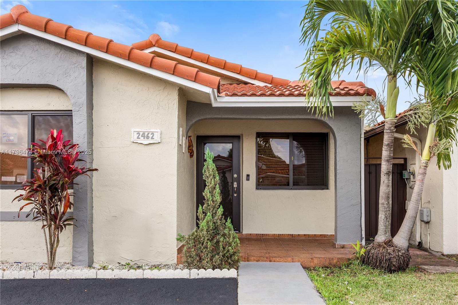 Welcome Home! This spacious 3/2 home offers high-impact windows throughout for added safety and energy efficiency. Enjoy even MORE savings with recently installed solar panels sitting on a 10yr old roof and a tankless water heater! This property has one of the largest floor-plans in the community, which provides great space for a comfortable living. Located in a gated community and 24 hour security, this property is situated on a quiet street in a well-maintained neighborhood, residents also have access to the community pool and parks—perfect for relaxing or entertaining. So, please step inside and make this your home!