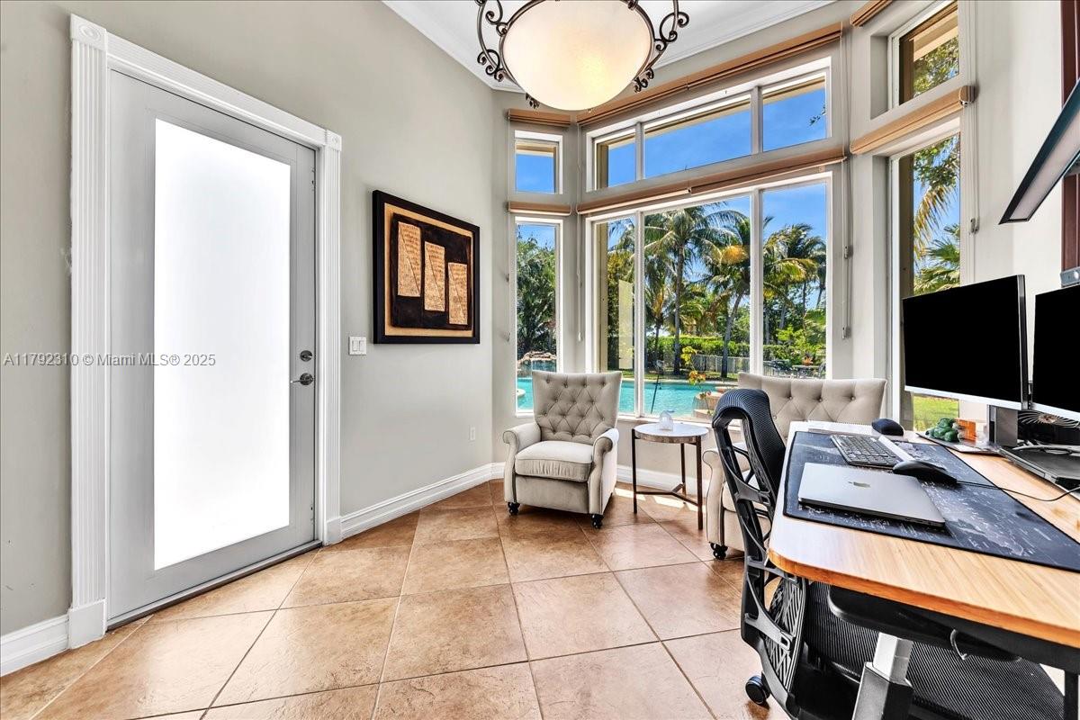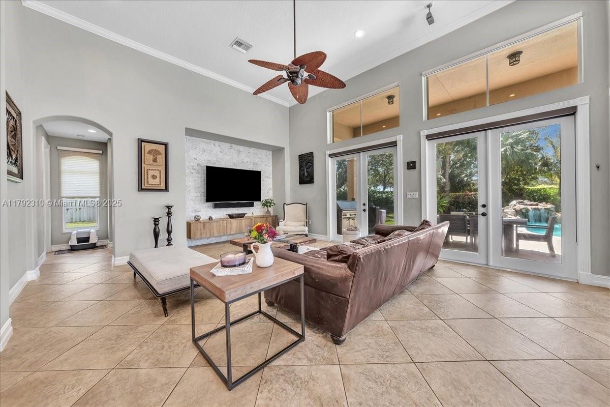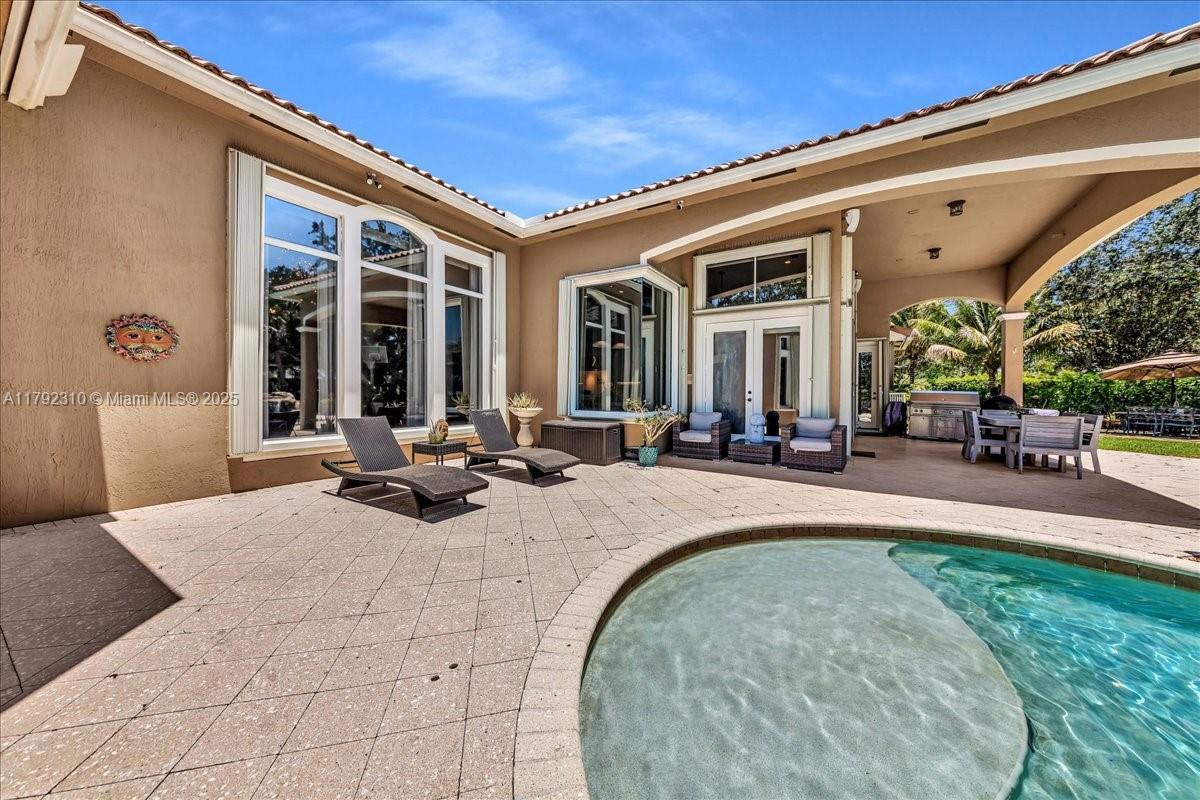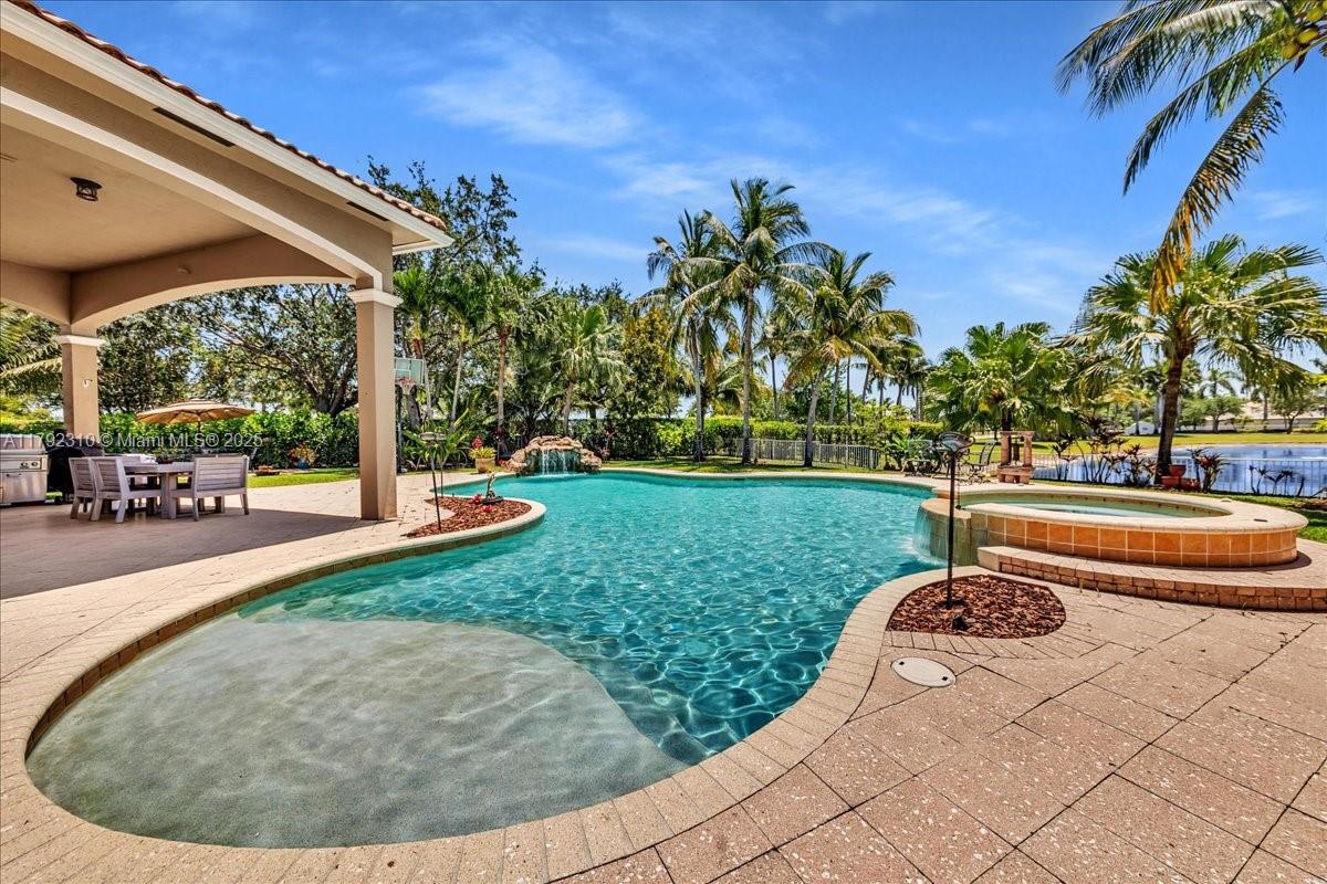 Welcome to an exclusive home in Sanctuary at Pembroke Falls on a rare and private 1/2 an acre lot crafted for luxury and comfort. This 4-bedroom + office, 3.5 bath home & 3 car garage features high volume ceilings and a seamless open layout ideal for entertaining and daily living. Lots of natural lighting which brings up the quality of an amazing updated modern kitchen, a chef’s dream with a 48" gas range, 6 burners, double ovens, built-in refrigerator, wine cooler, large island, drawer microwave, and custom cabinets. The spacious primary suite includes a sitting area, dual vanities, Jacuzzi tub, and double shower. Enjoy a private and one of the biggest back yard for community with a saltwater pool, a spa, natural gas grill ready, and fully fenced yard, accordion shutters and so much more.